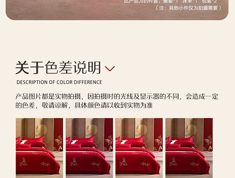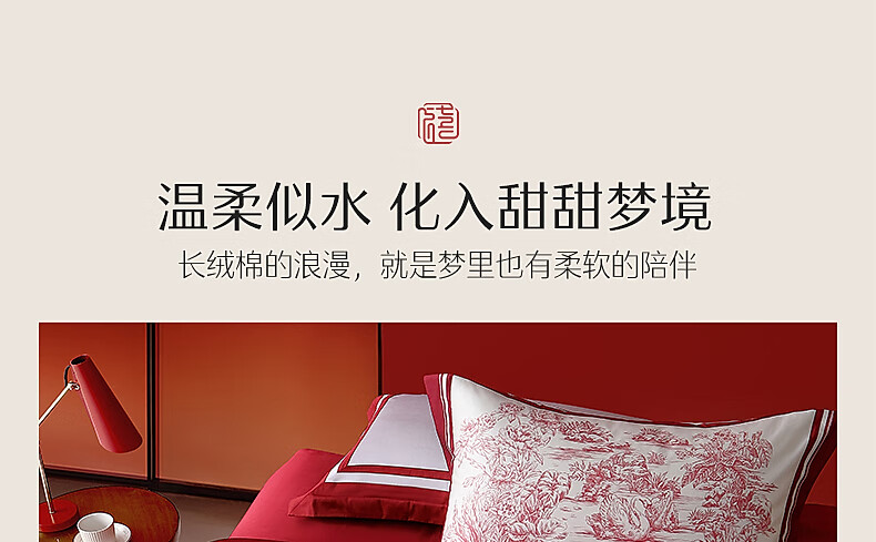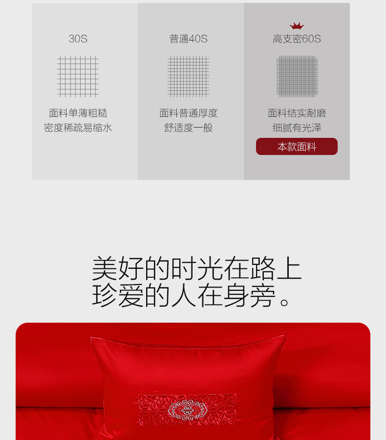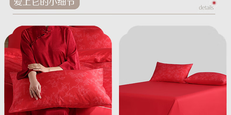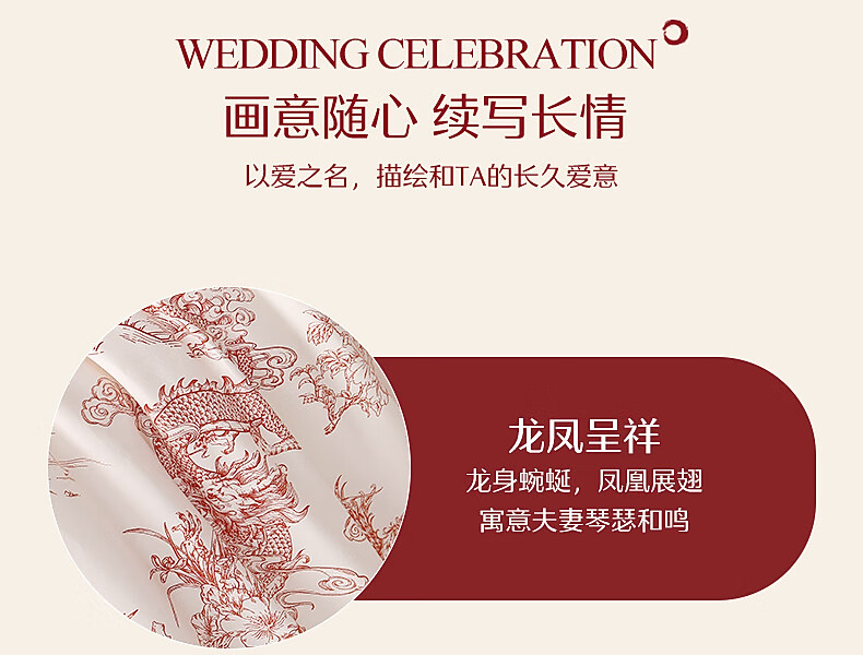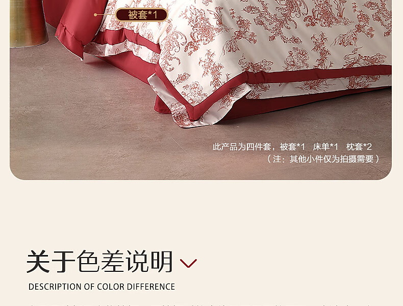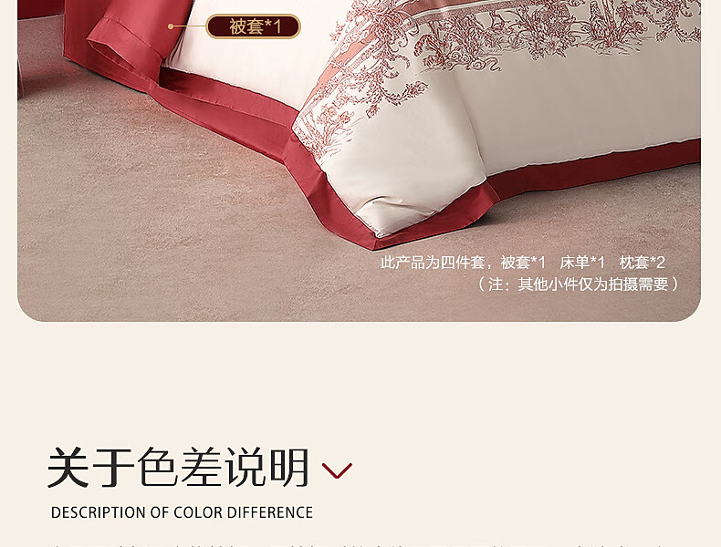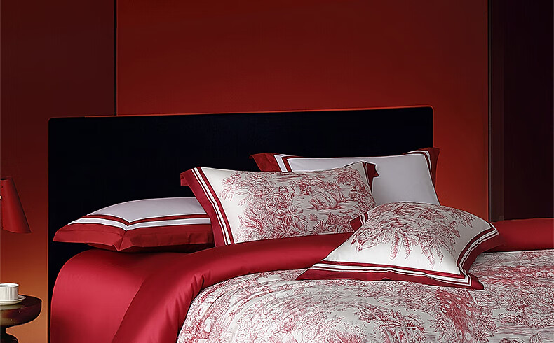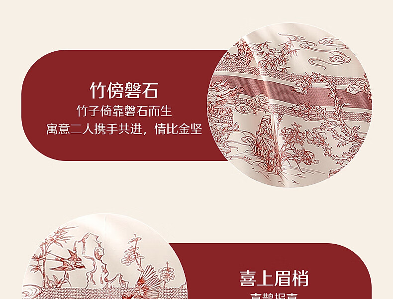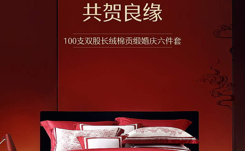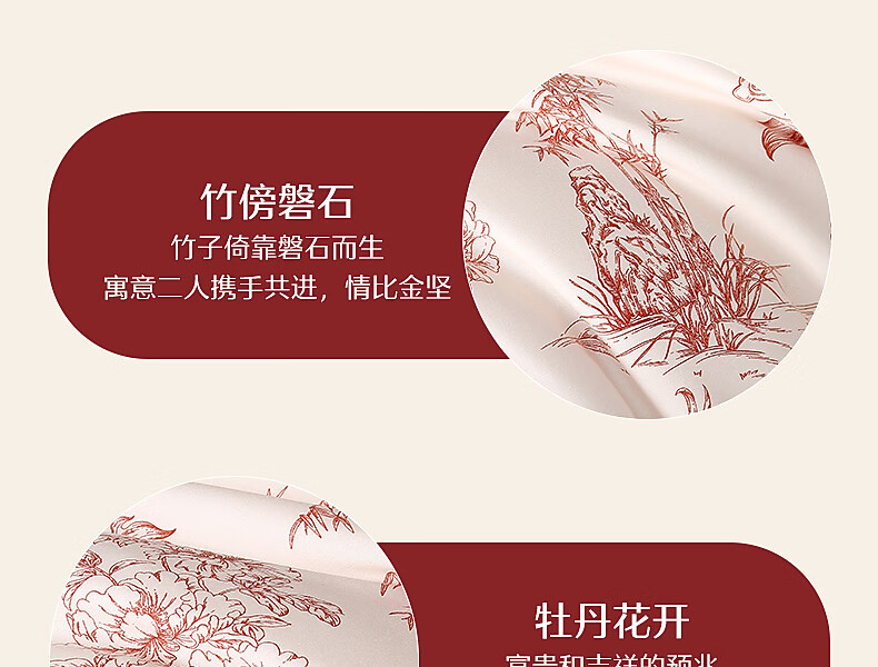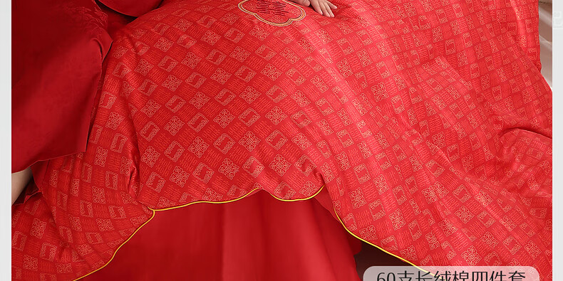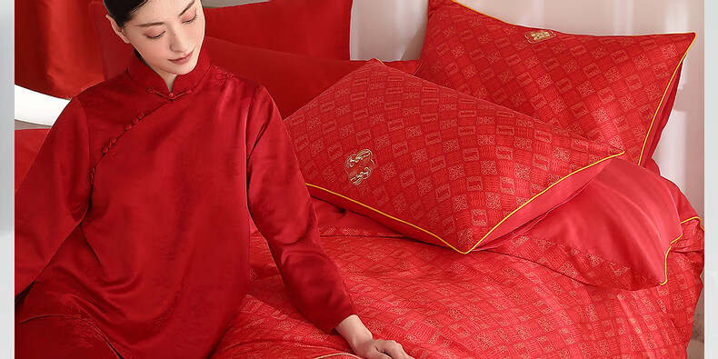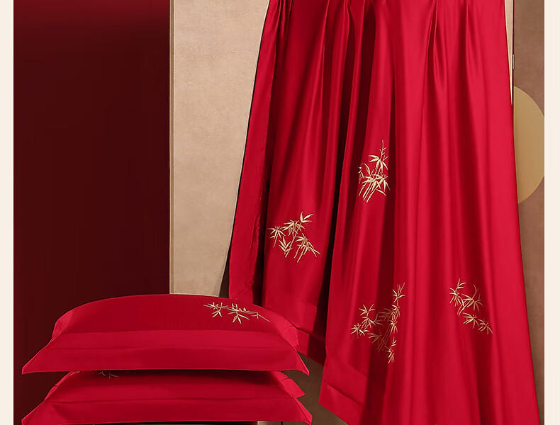 水星家纺 结婚床上四件套/多件套 长绒棉婚庆套件 大红结婚被套床单枕套 [百鸟印花]四件套-百鸟来仪 1.5米床(200*230cm被套)