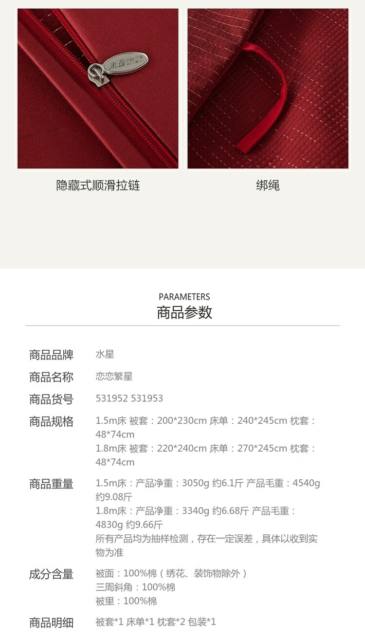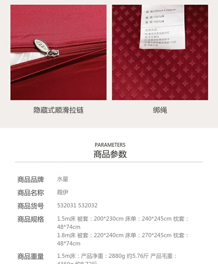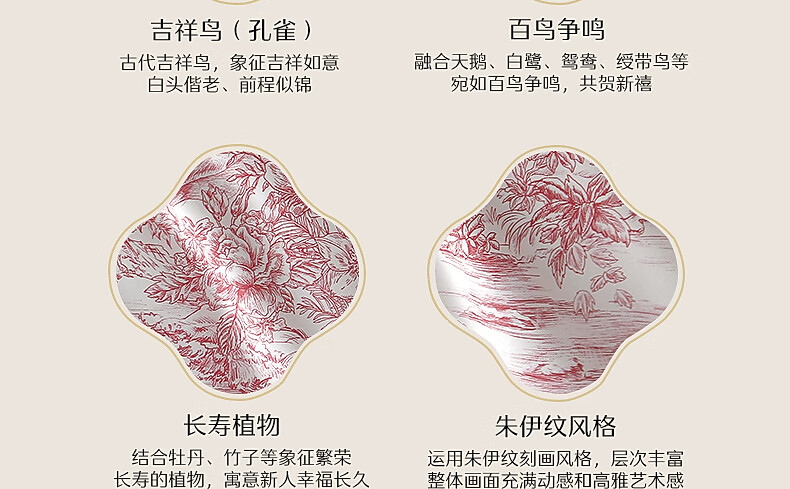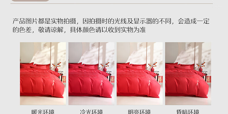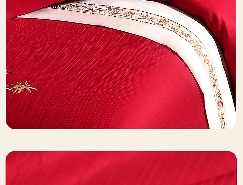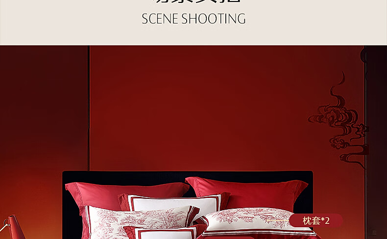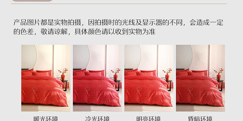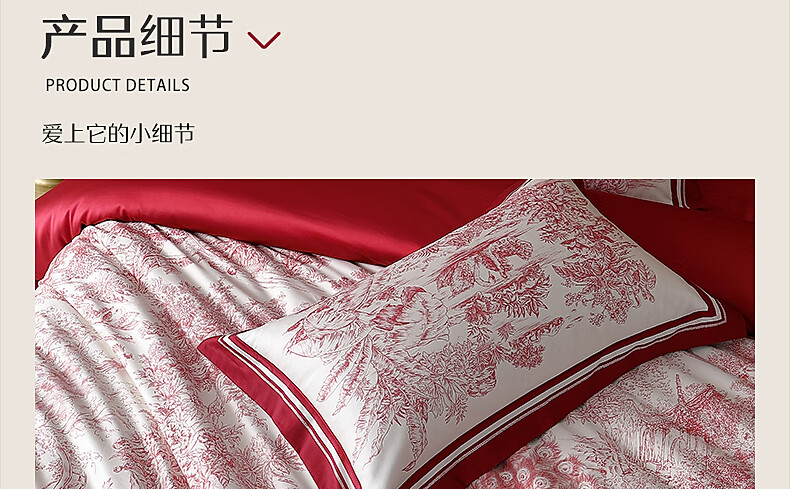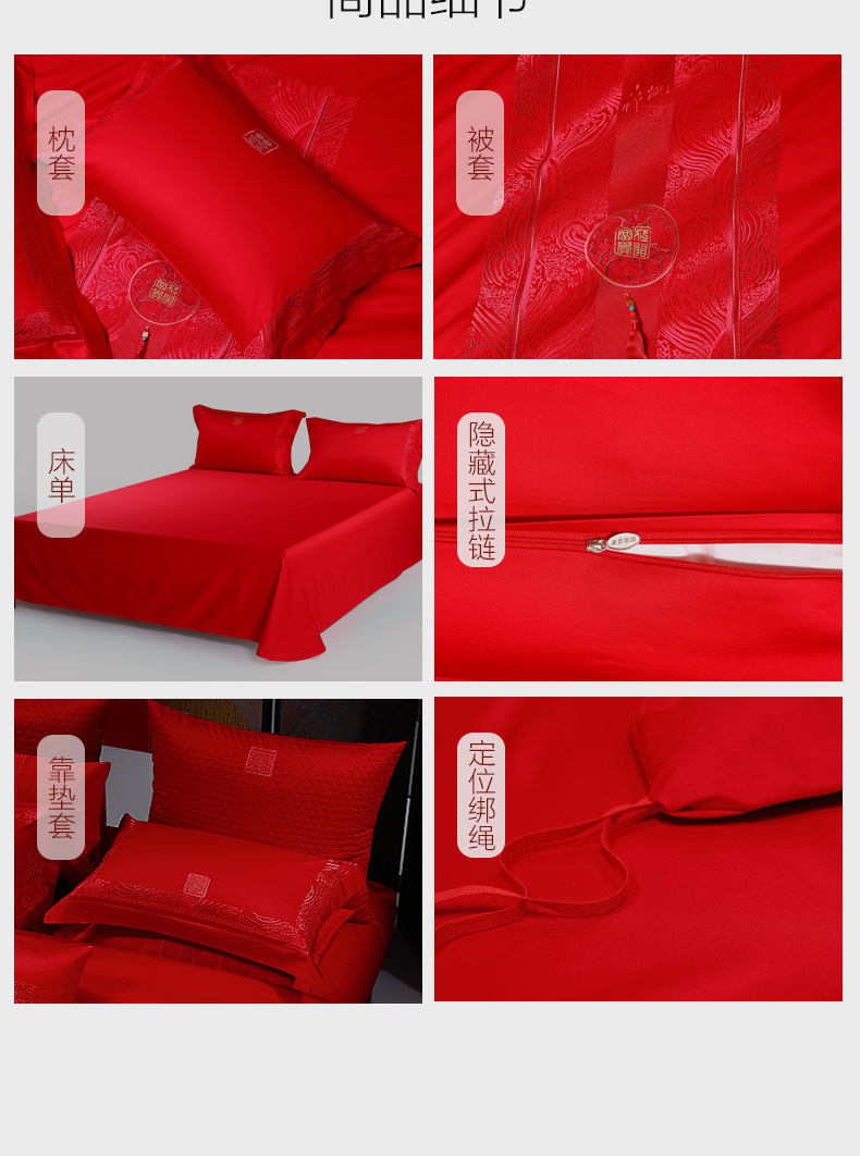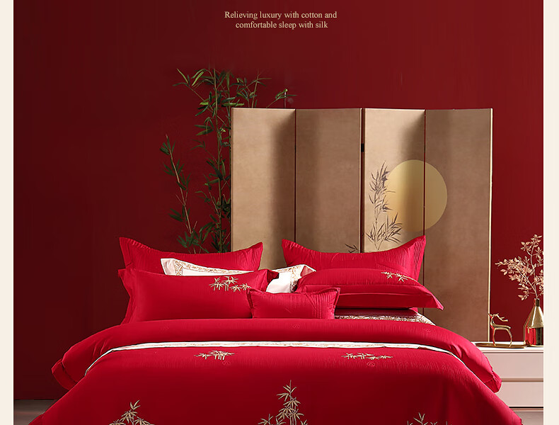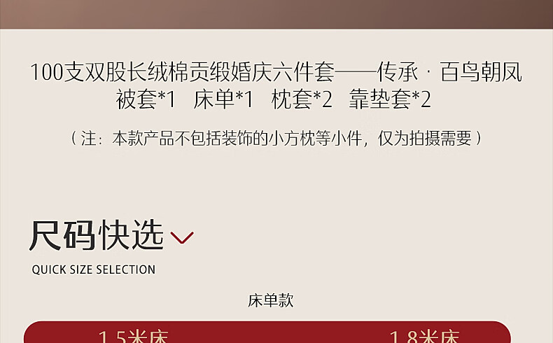 水星家纺 结婚床上四件套/多件套 长绒棉婚庆套件 大红结婚被套床单枕套 [百鸟印花]四件套-百鸟来仪 1.5米床(200*230cm被套)