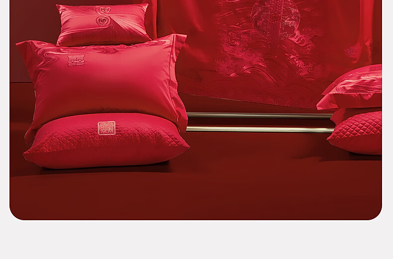 水星家纺结婚抱枕办公室午睡沙发床头卡通靠垫 大红婚庆刺绣靠垫【专享】 婚庆抱枕-刺绣新娘单只45×45cm