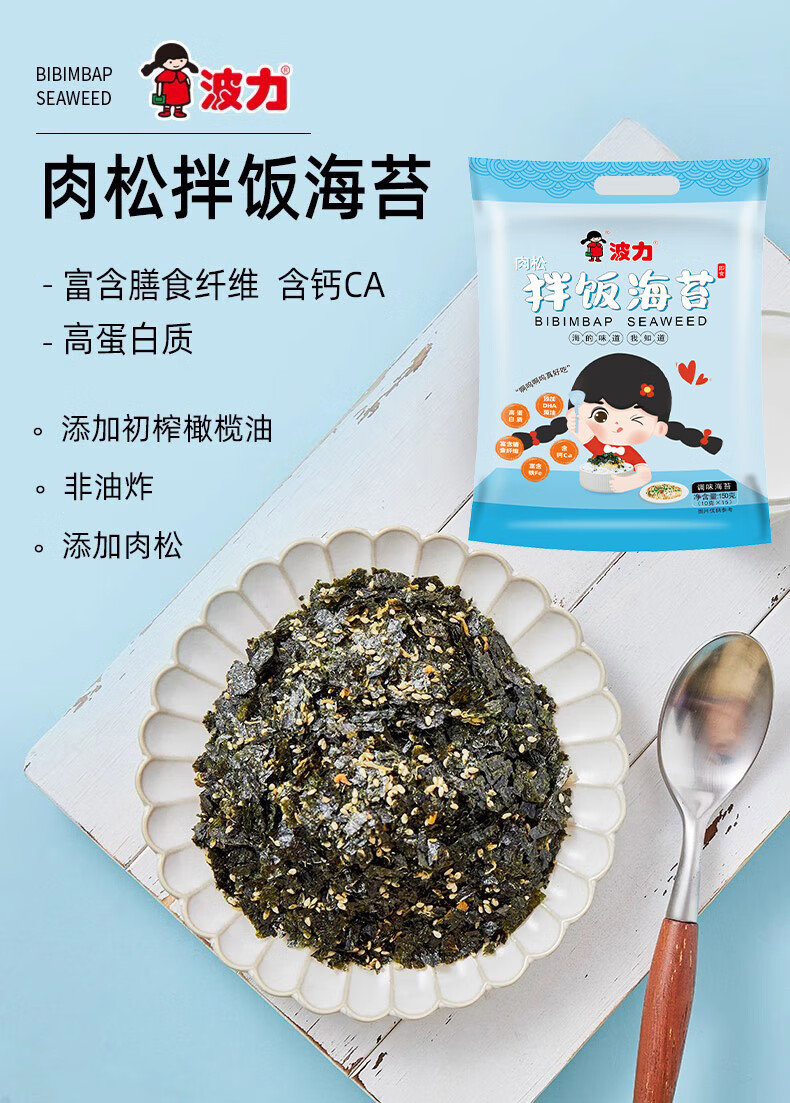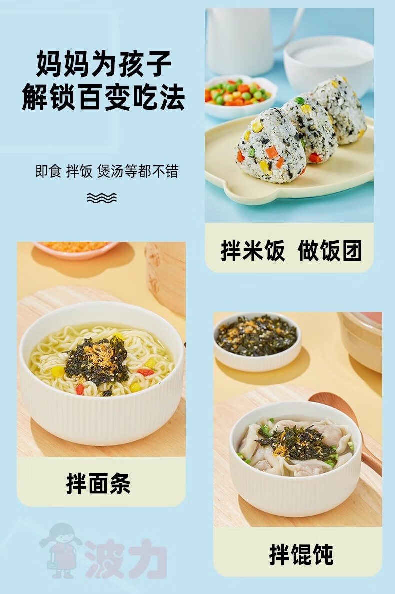 波力儿童拌饭海苔脆碎150g(10g*15)肉松芝麻饭团零食礼包即食紫菜碎