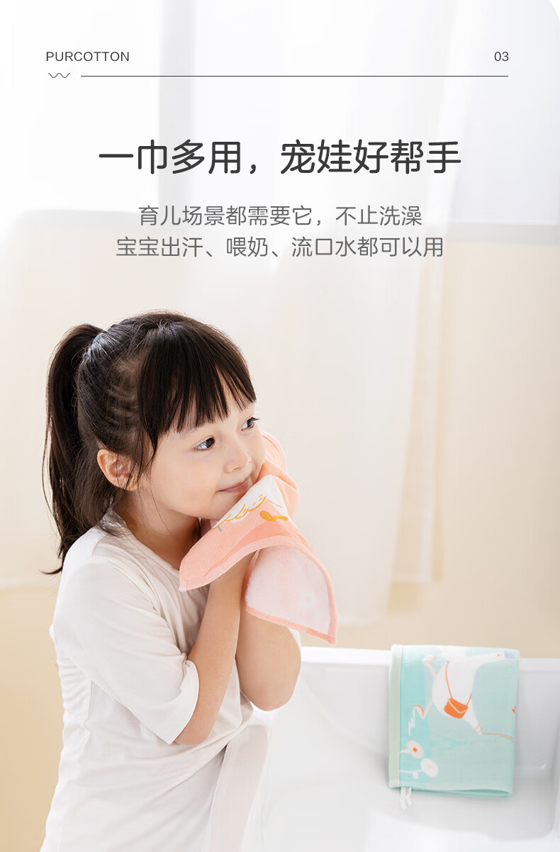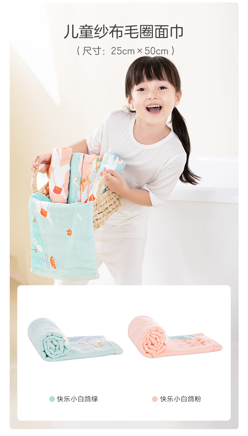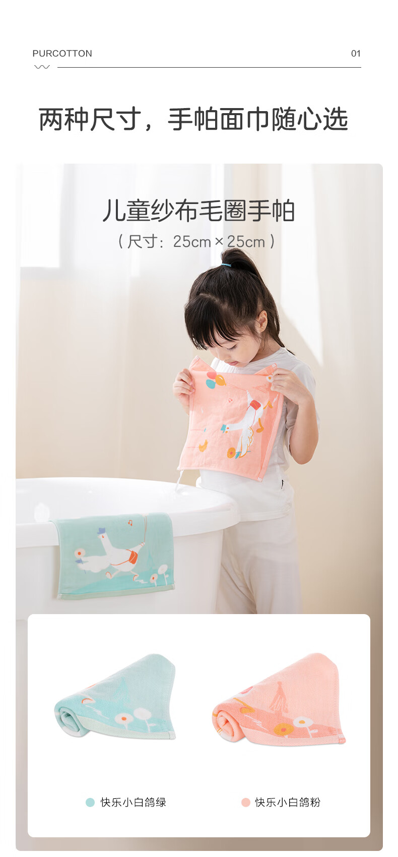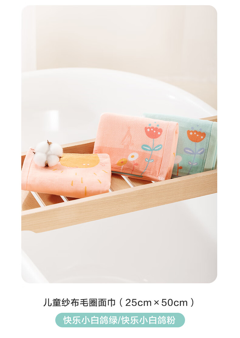 全棉时代婴儿毛巾 儿童纱布毛圈洗脸面巾纯棉透气口水巾方巾手帕25cm×50cm