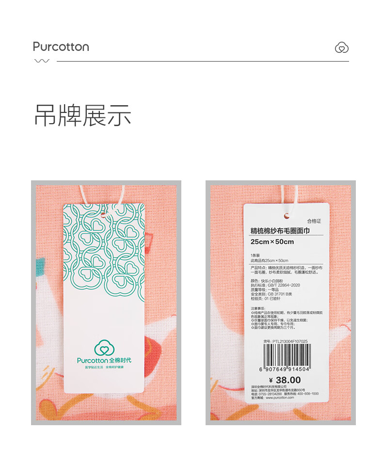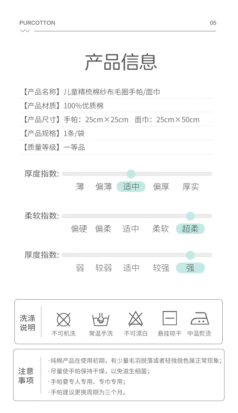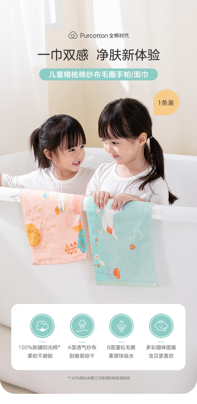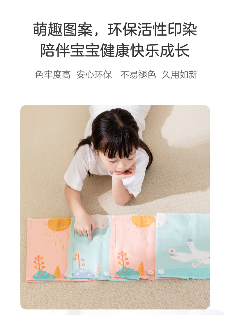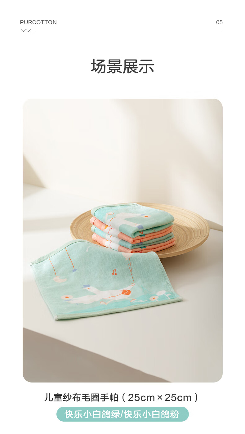 全棉时代婴儿毛巾 儿童纱布毛圈洗脸面巾纯棉透气口水巾方巾手帕25cm×50cm