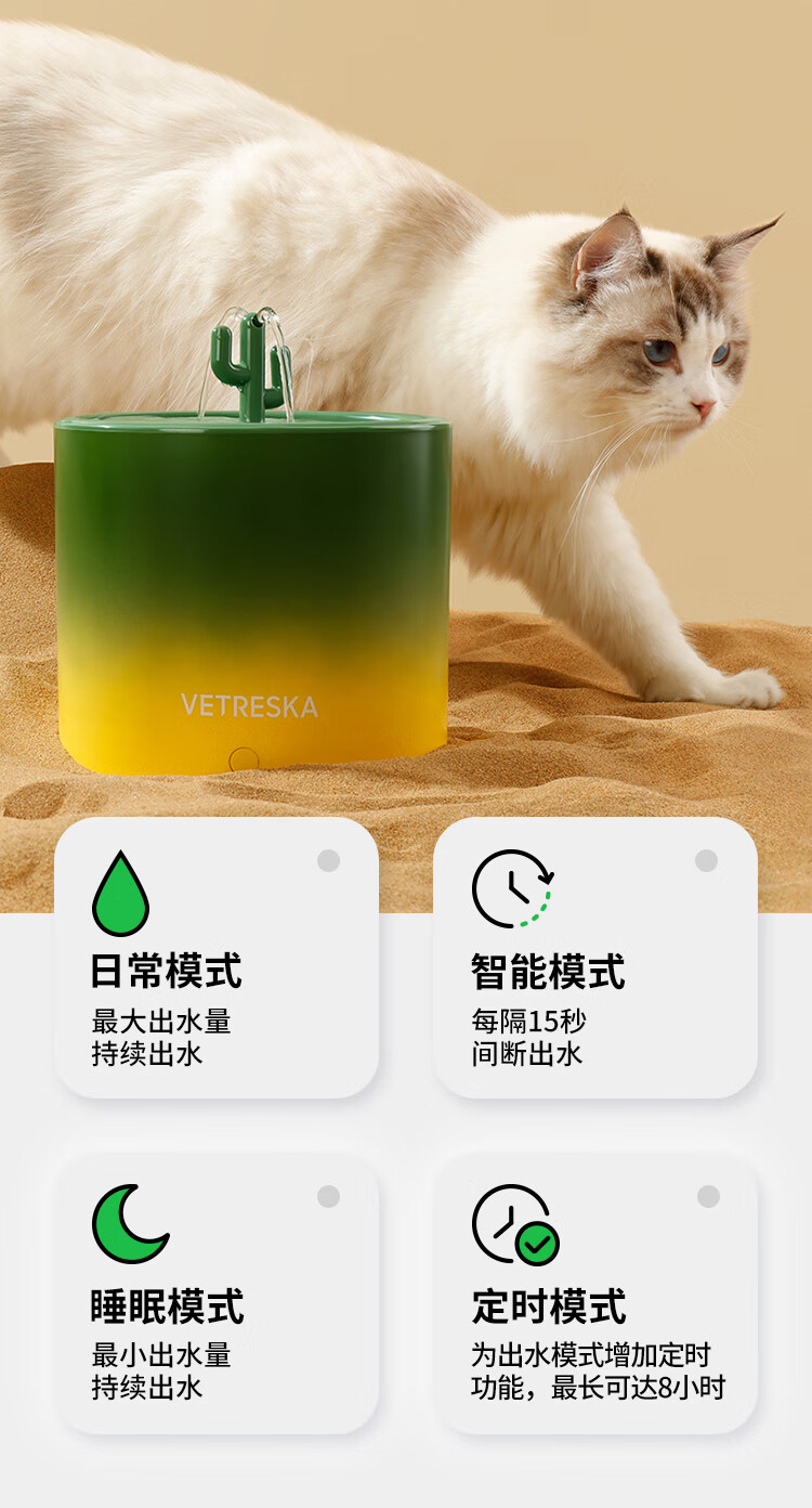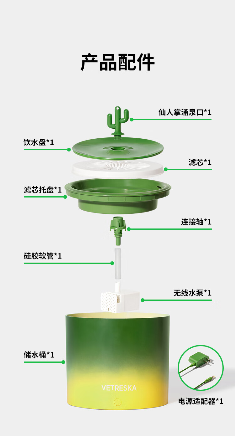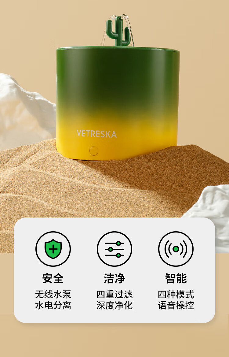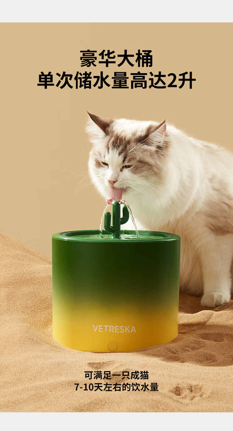 未卡仙人掌语音智能宠物饮水机无线水泵款猫咪自动喝水用品喂水器 仙人掌语音智能宠物饮水机