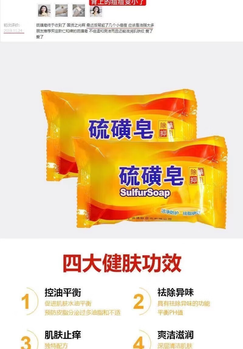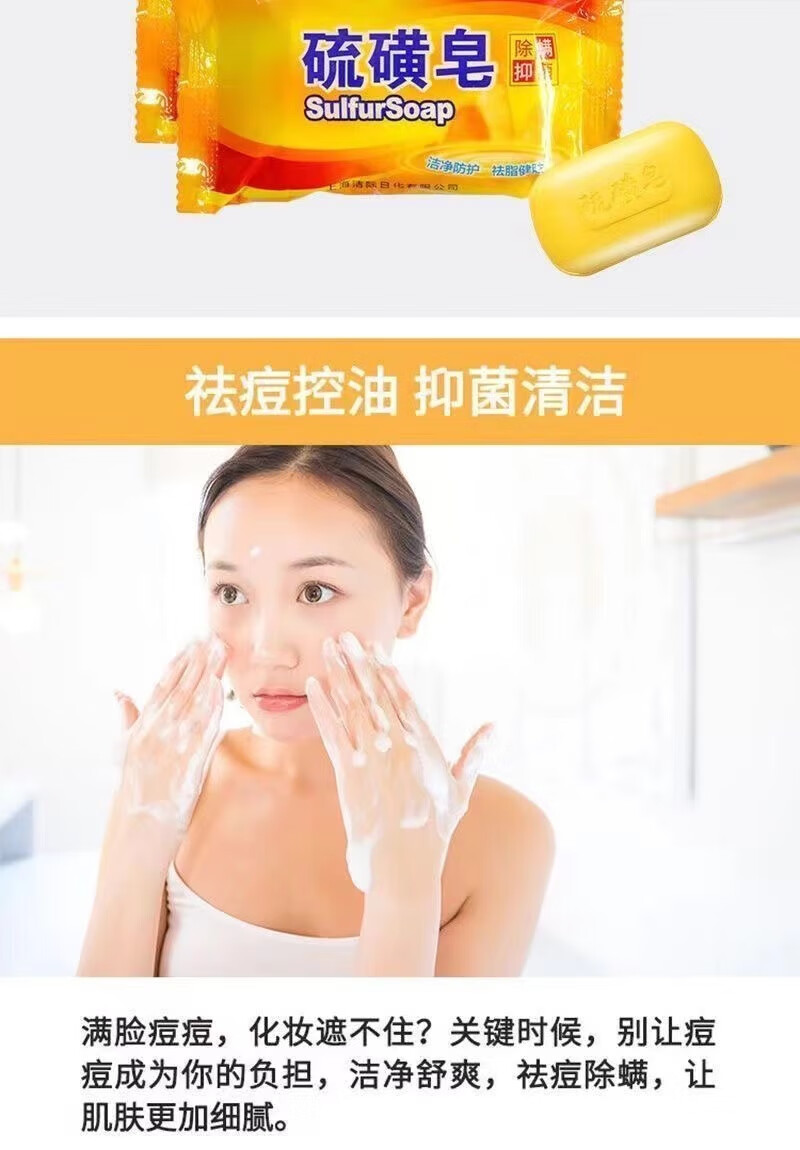 硫磺香皂止痒杀菌除螨虫老牌子洗脸洗头洗澡学生控油祛痘肥皂 硫磺皂【3块】新老包装随机发货