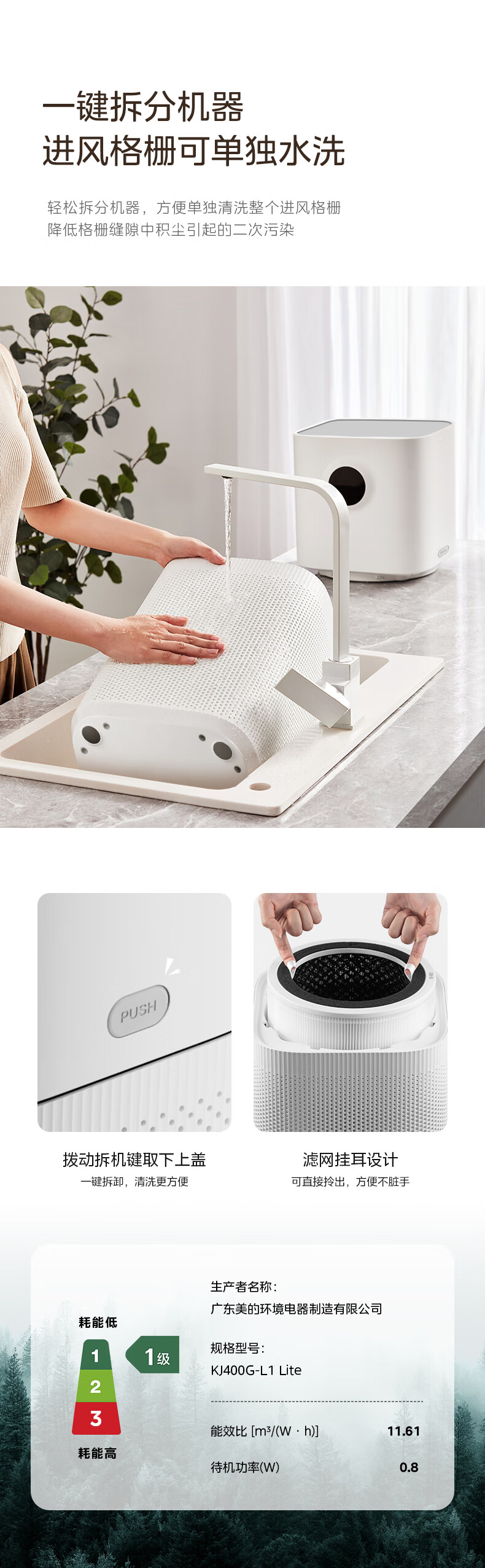 美的(Midea)【母婴级】空气净化器鼻炎家用除甲醛除烟味异味过敏原空气净化机森林家L1 Lite