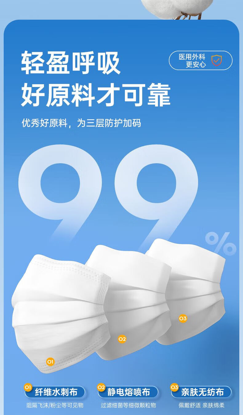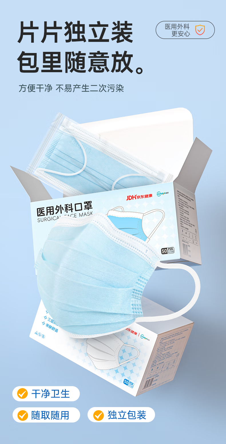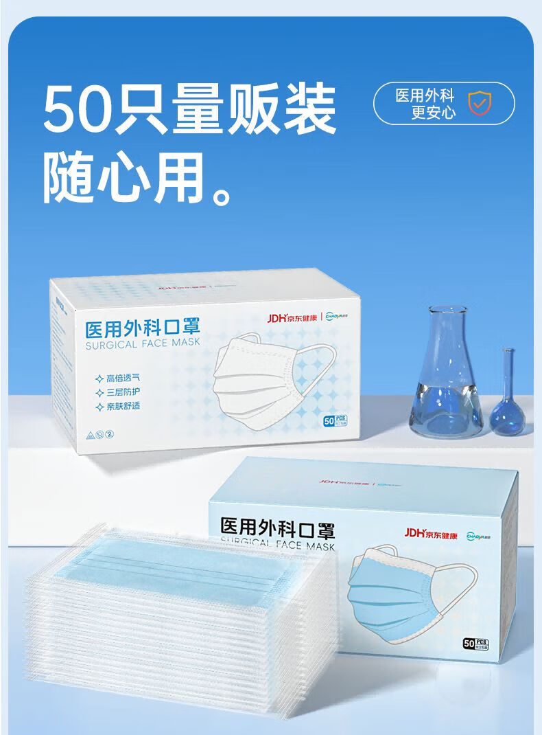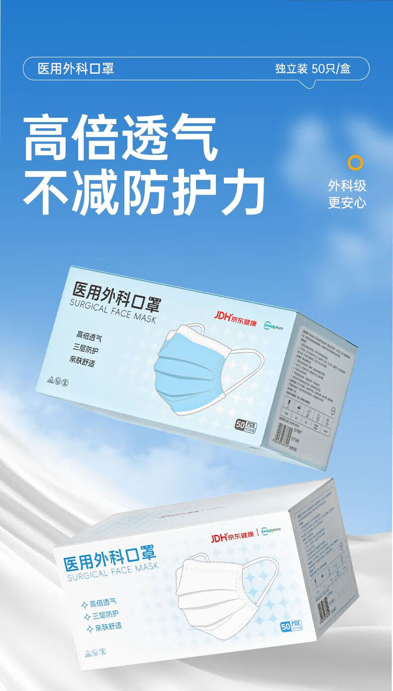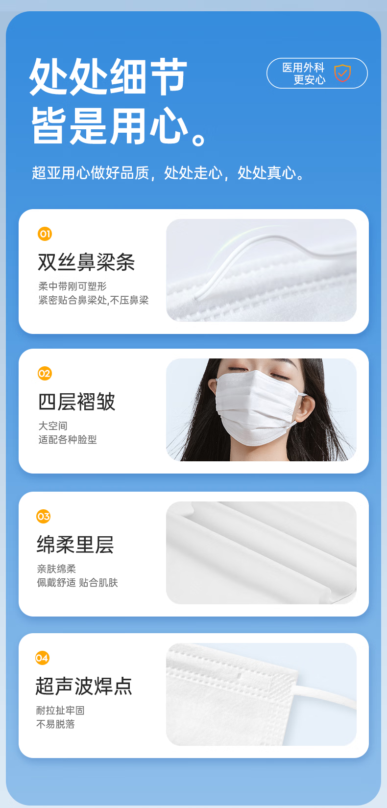 超亚医用外科口罩一次性医用三层防护过滤成人儿童适用防尘花粉过敏 【成人医用灭菌级】蓝色100只袋装