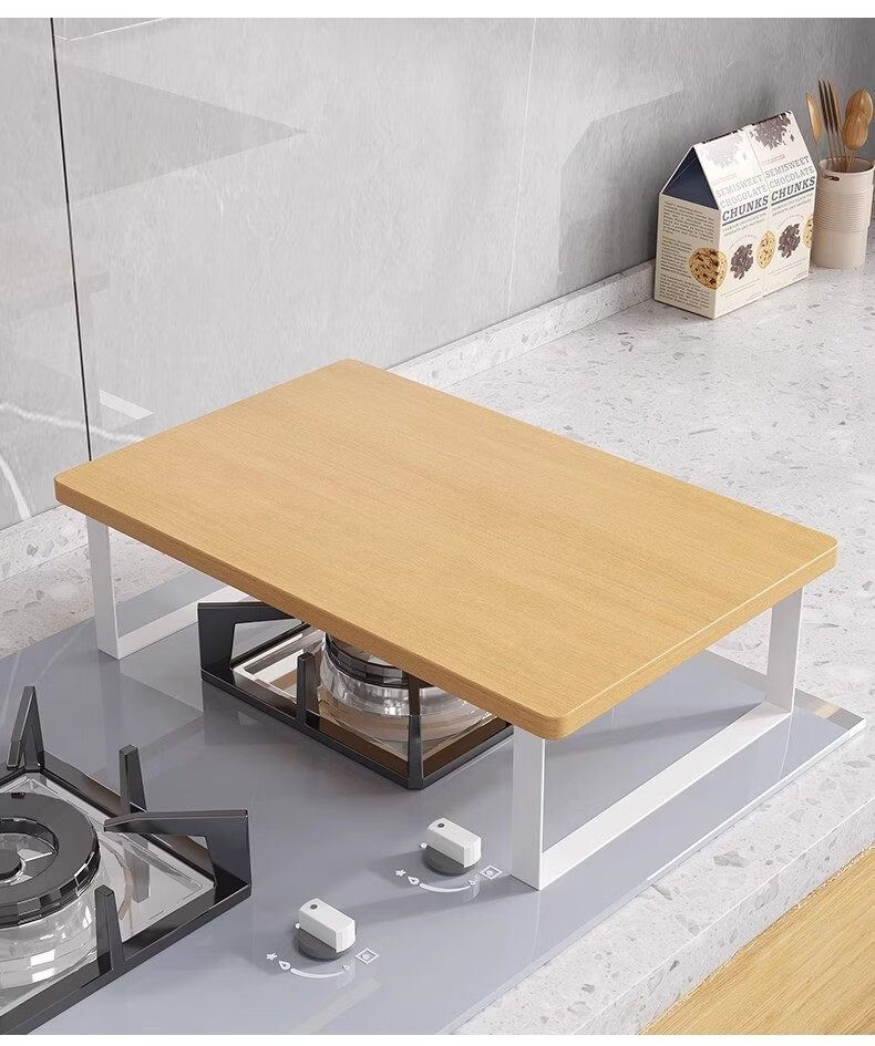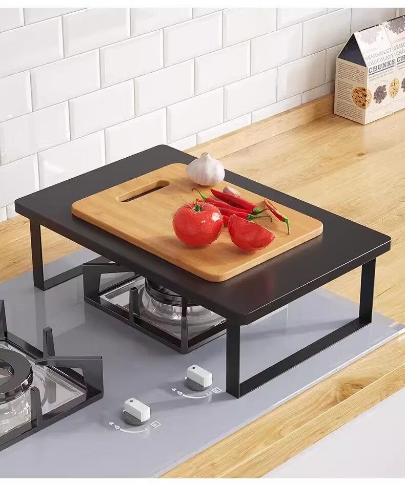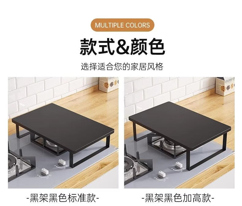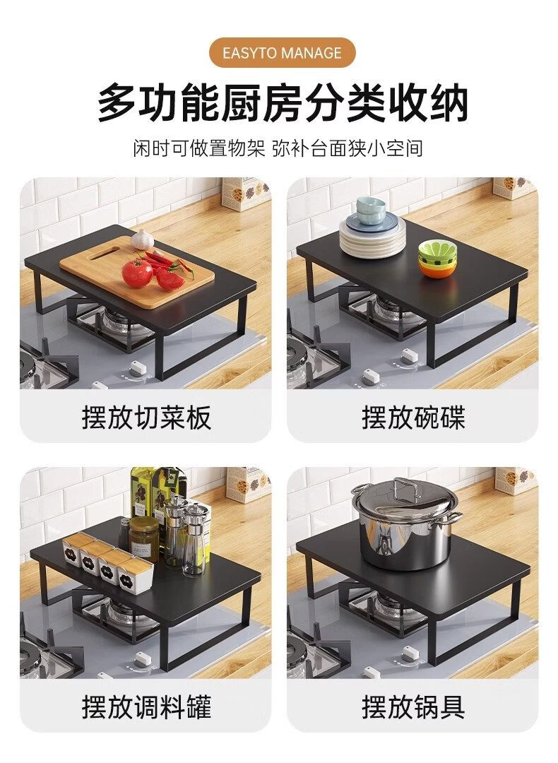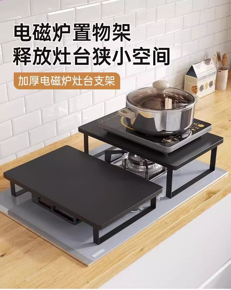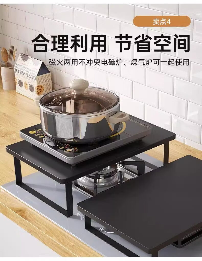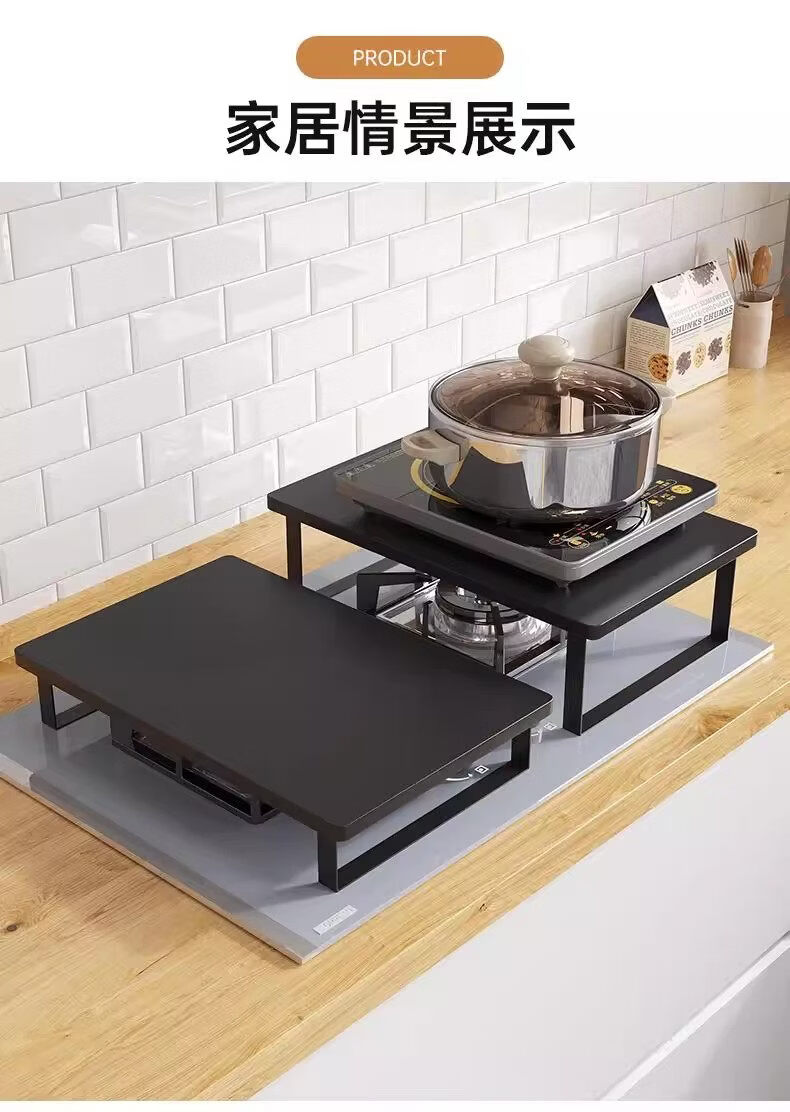馨婺家电磁炉上支架燃气灶盖板罩厨房灶台置物架灶具架托煤气灶隔板架子 原木色+黑架30*40cm【标准款】