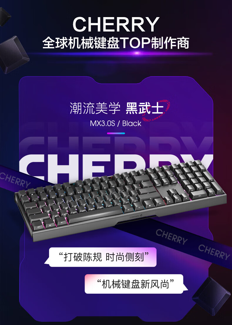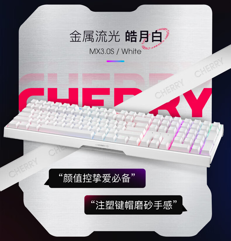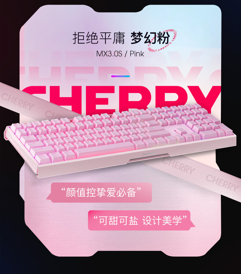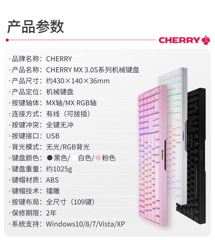 CHERRY樱桃MX3.0S机械键盘 游戏键盘 电竞键盘 有线办公电脑键盘108键 侧刻键帽 合金外壳 适配三角洲 宝可梦皮卡丘联名款-无光-红轴