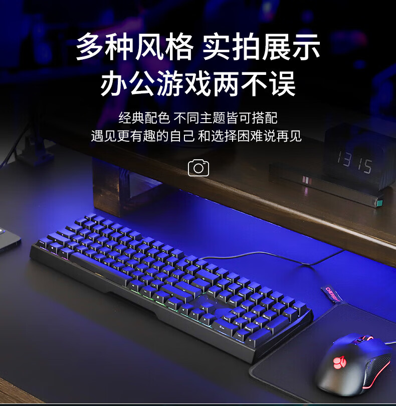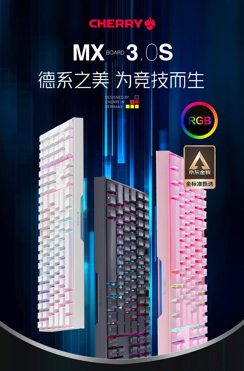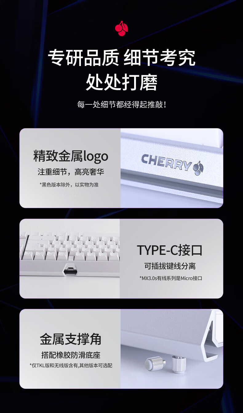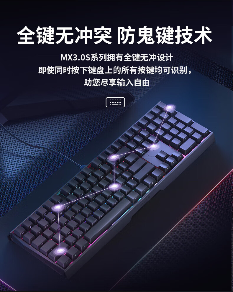 CHERRY樱桃MX3.0S机械键盘 游戏键盘 电竞键盘 有线办公电脑键盘108键 侧刻键帽 合金外壳 适配三角洲 宝可梦皮卡丘联名款-无光-红轴