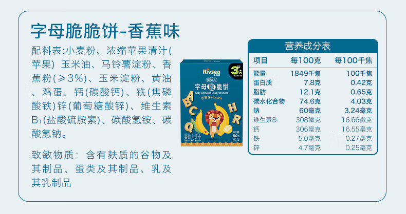 禾泱泱婴幼儿字母脆脆饼香蕉味80g宝宝磨牙饼干零食强化钙铁锌6月+