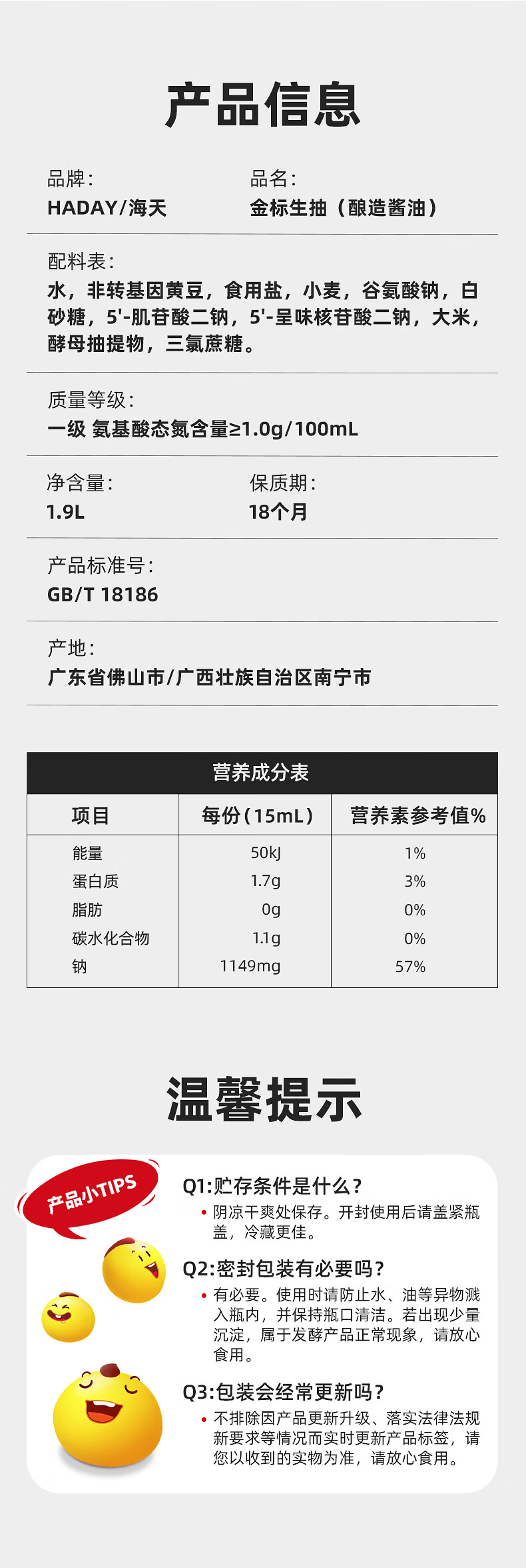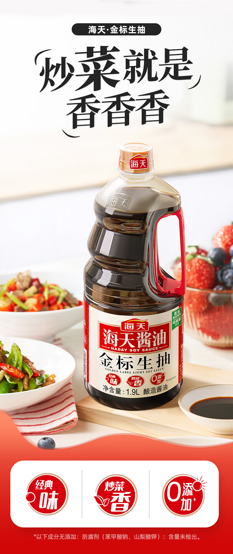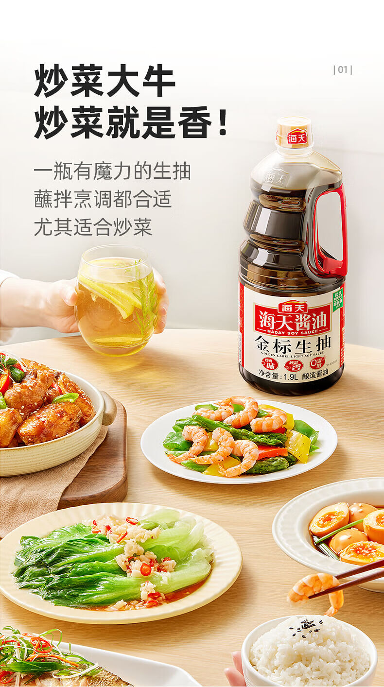 海天 生抽酱油1.9L 【金标 一级酱油】金标系列