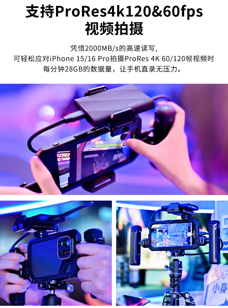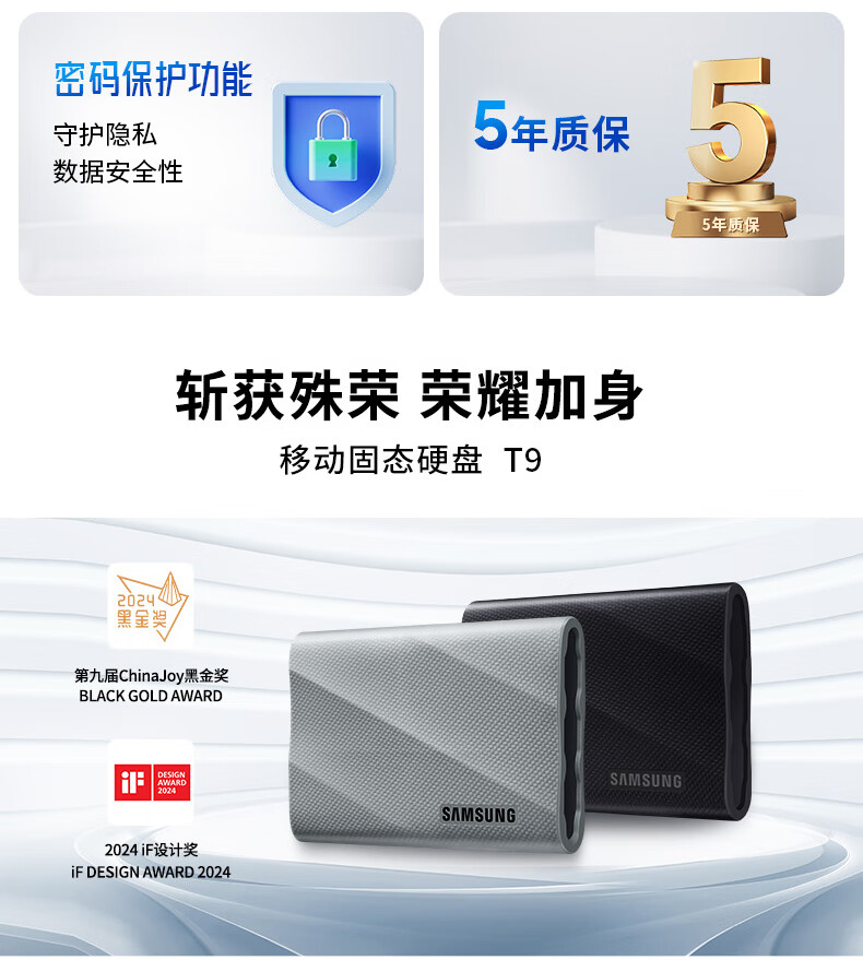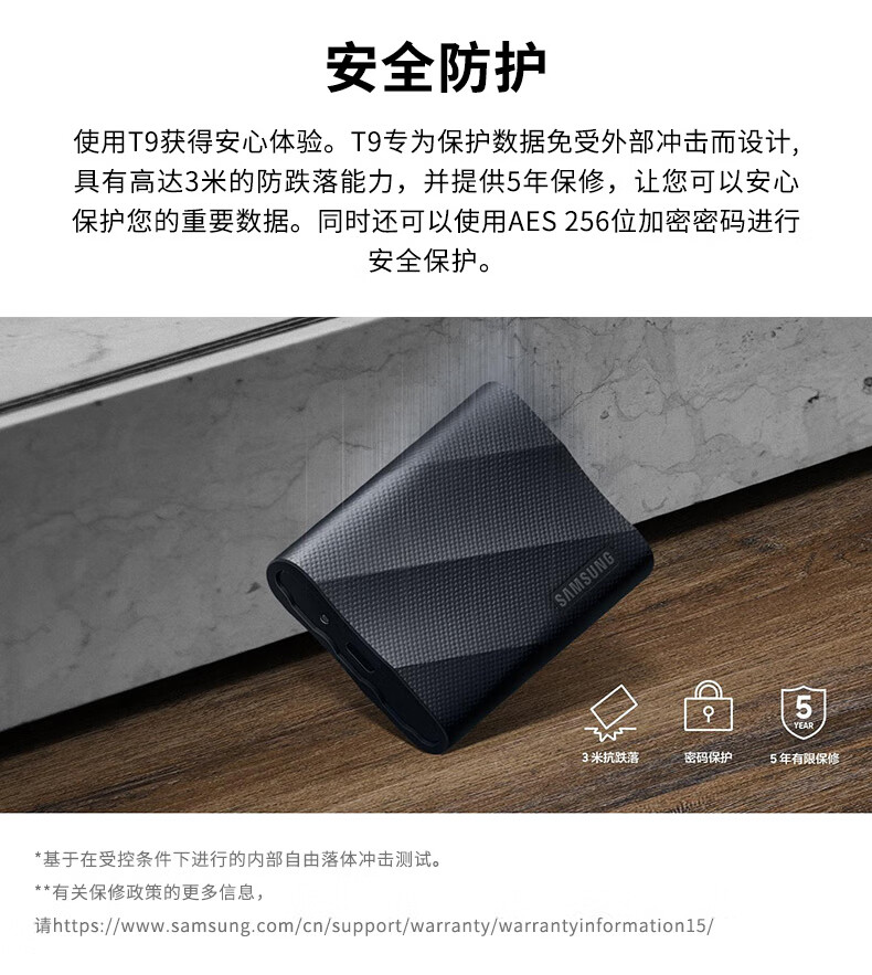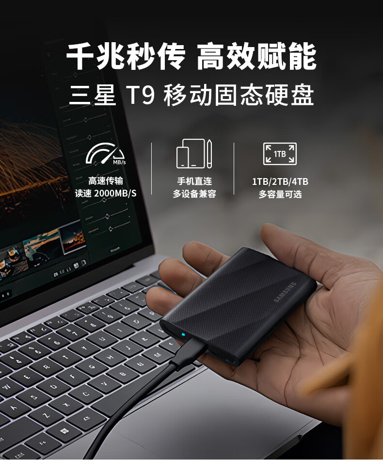 三星(SAMSUNG)1TB Type-c USB 3.2移动固态硬盘(PSSD)T9玄影黑 NVMe读速2000MB/s 手机直连笔记本Mac mini外接