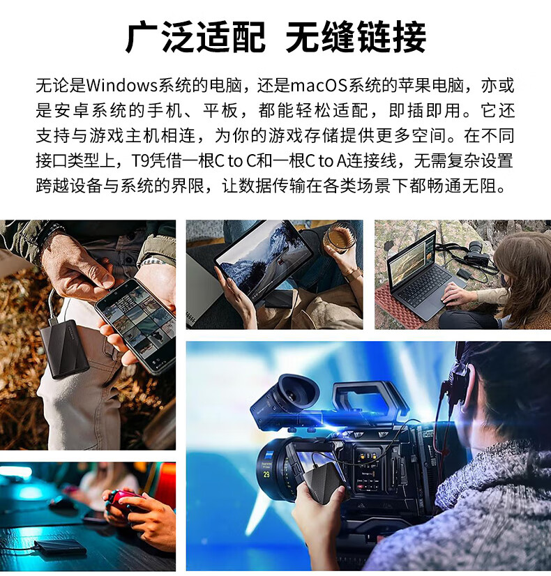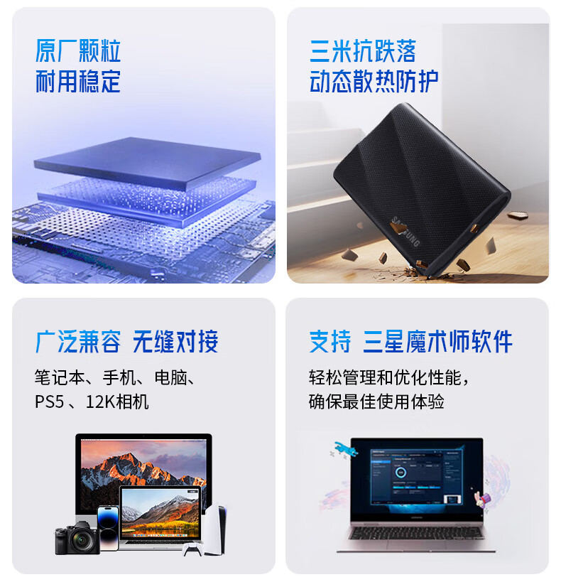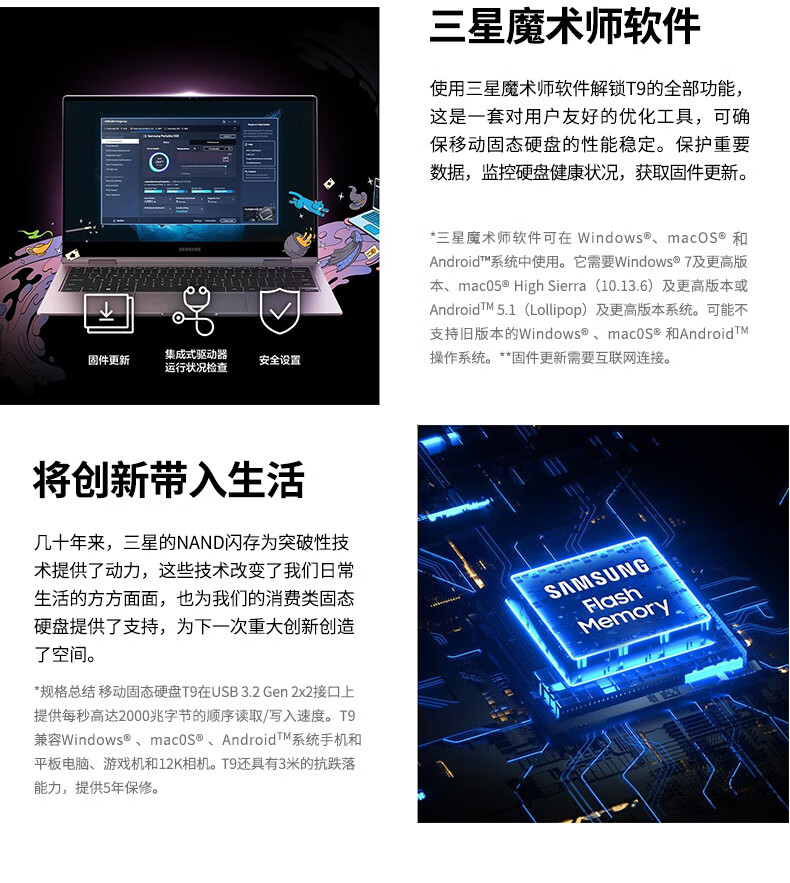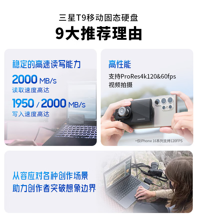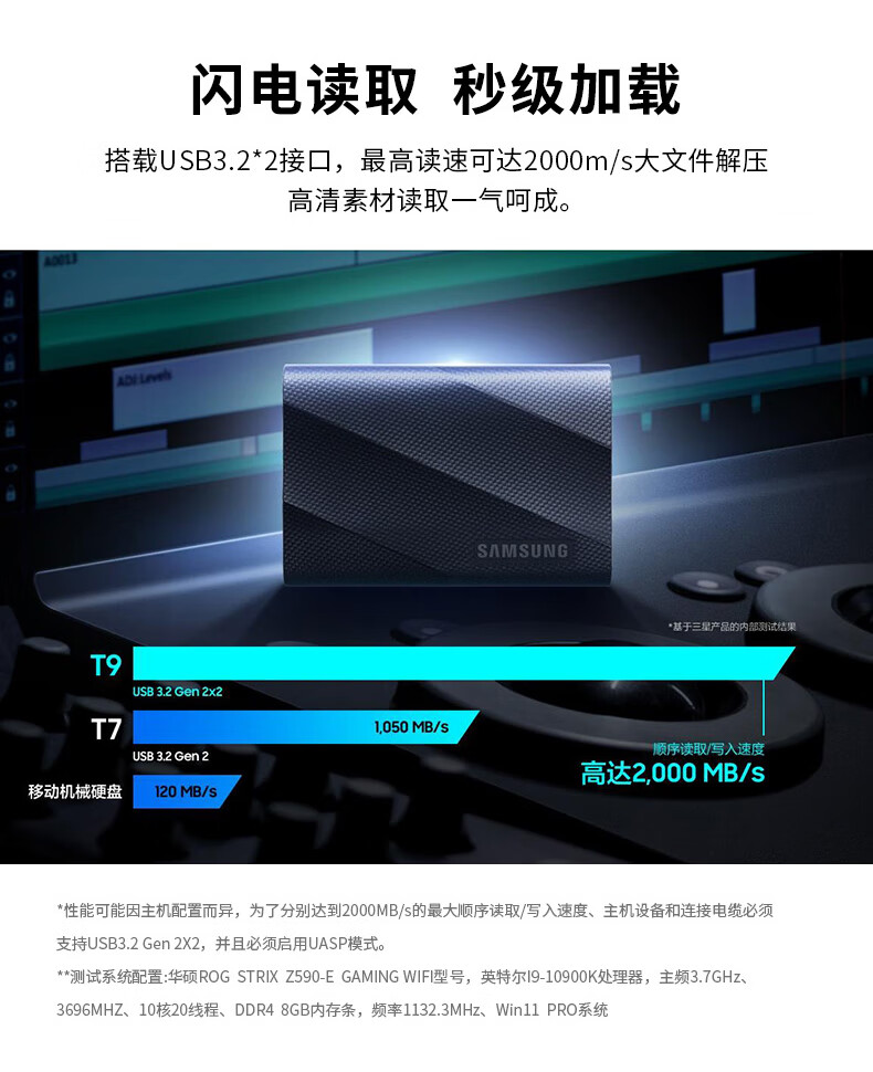 三星(SAMSUNG)1TB Type-c USB 3.2移动固态硬盘(PSSD)T9玄影黑 NVMe读速2000MB/s 手机直连笔记本Mac mini外接