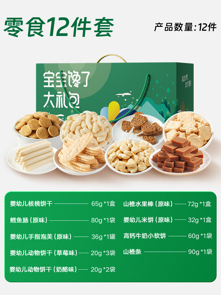 宝宝馋了宝宝零食大礼包12件套山楂棒饼干奶片泡芙米饼儿童节日礼盒