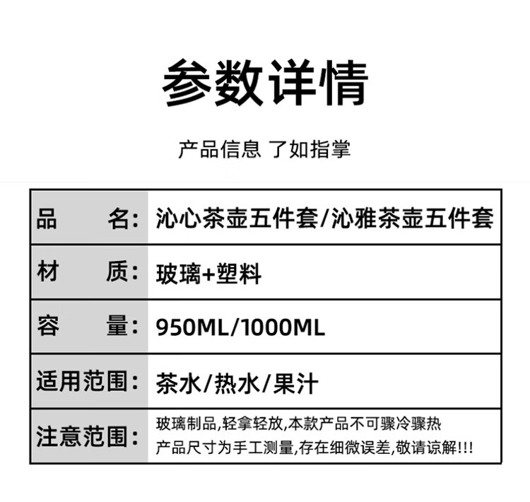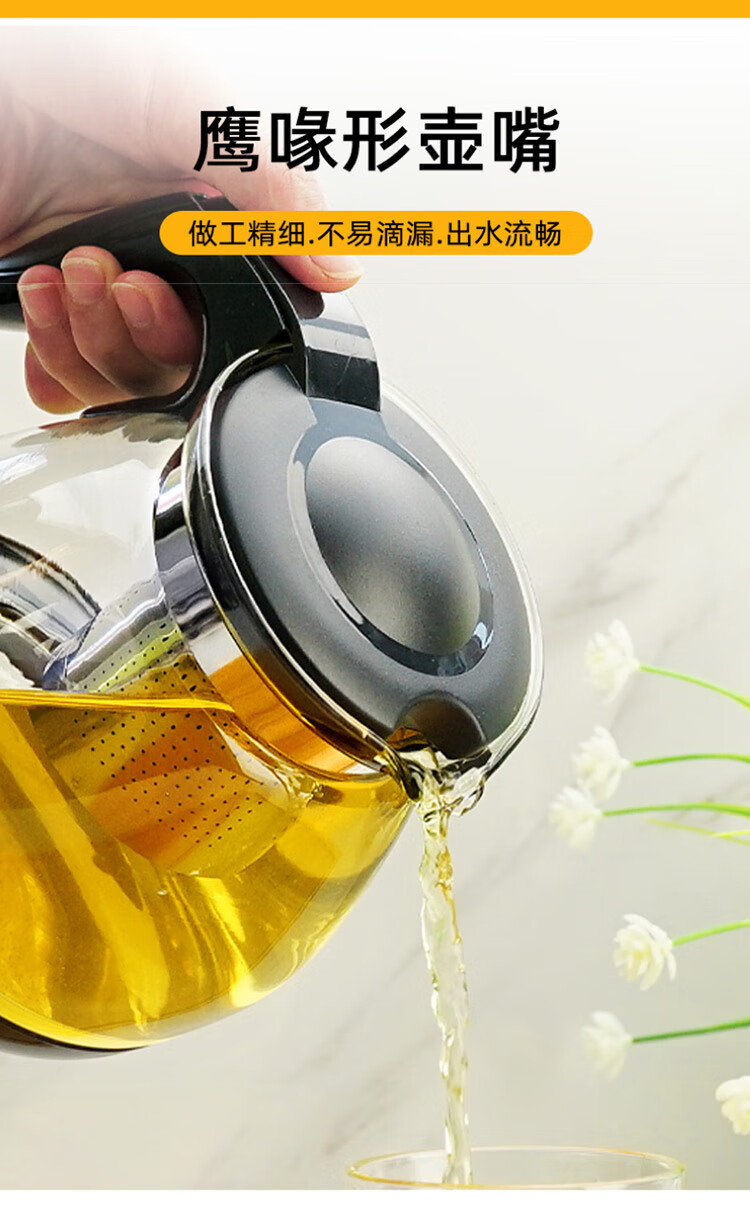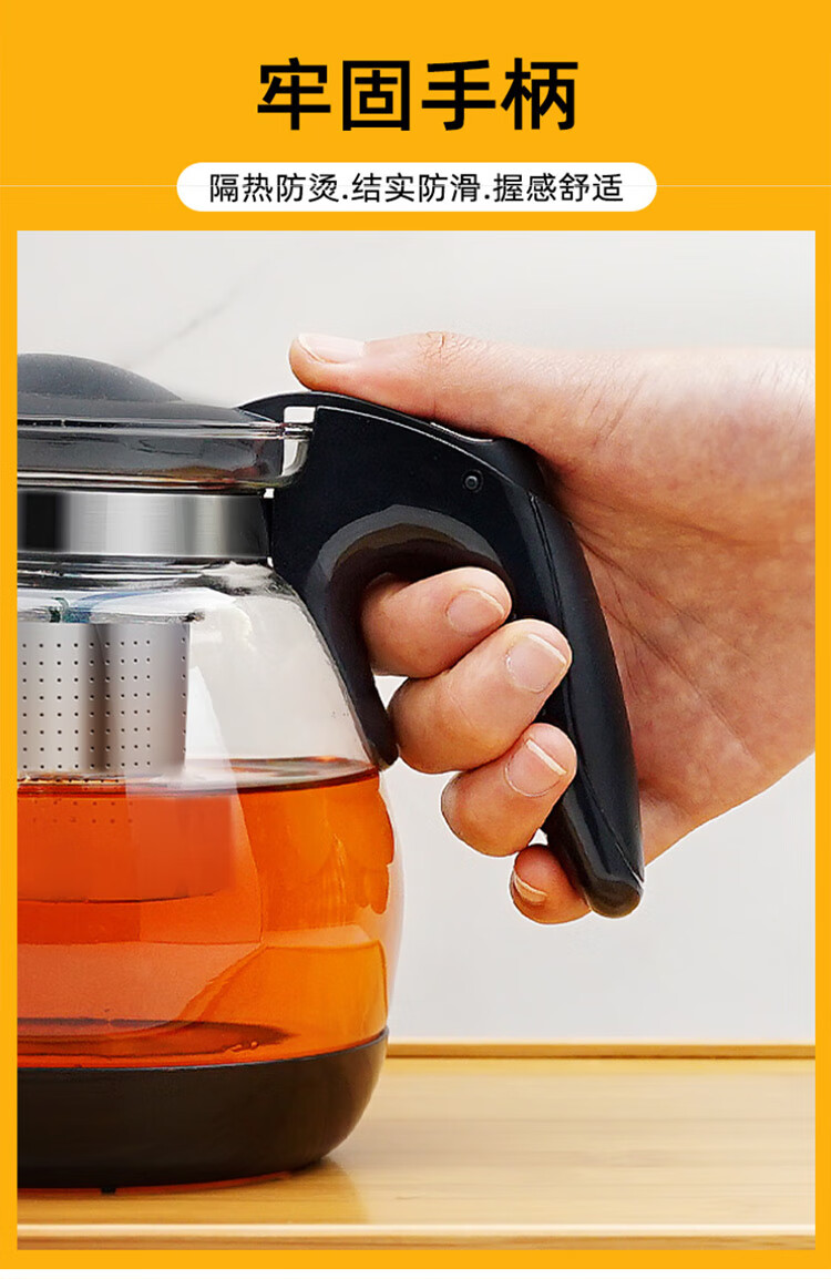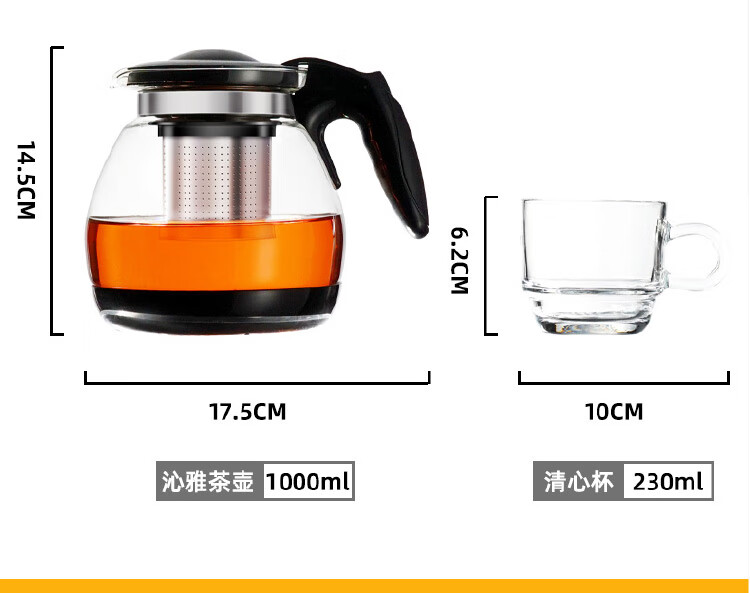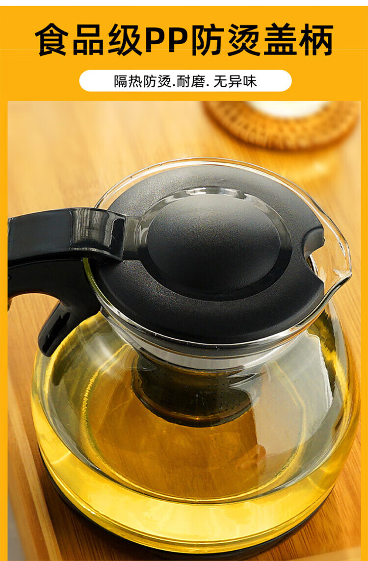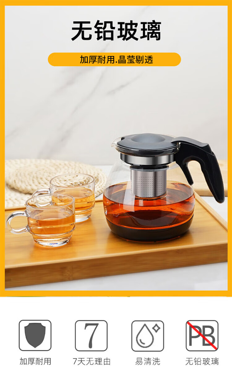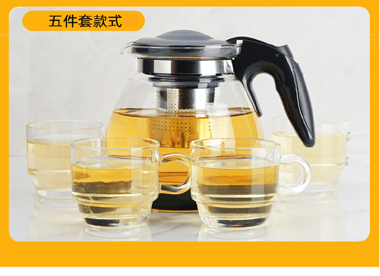 乐唯诗 茶壶玻璃泡茶壶耐高温加厚花果茶壶茶具不锈钢过滤网茶水壶杯子 沁雅茶具5件套【黑色】