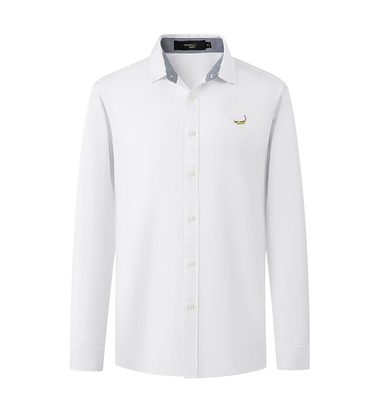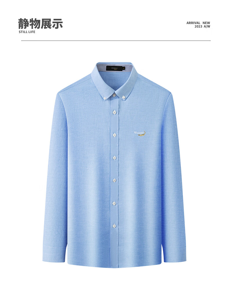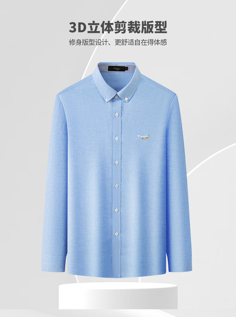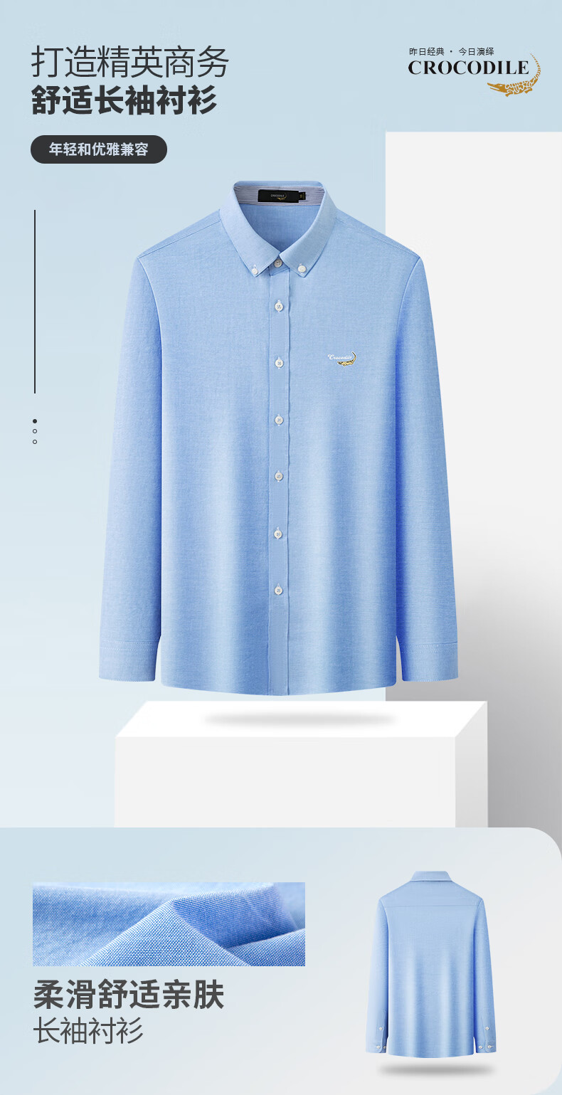 鳄鱼恤长袖衬衫男士常规款商务休闲纯色简约翻领正装衬衣 浅蓝色 4XL(58)195/108A
