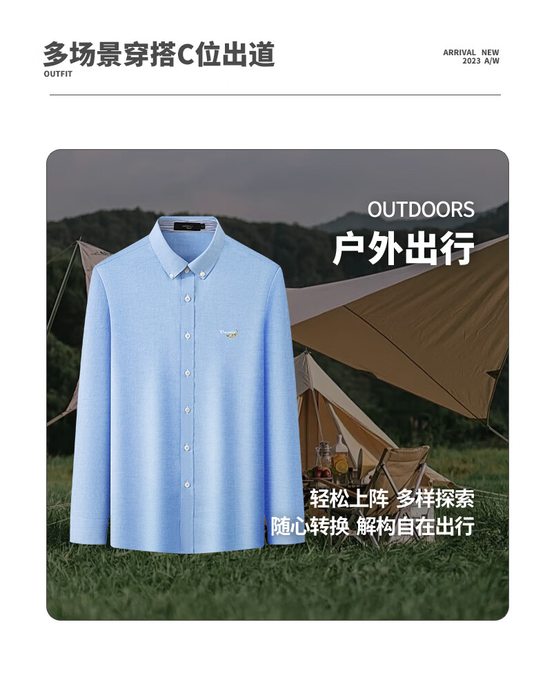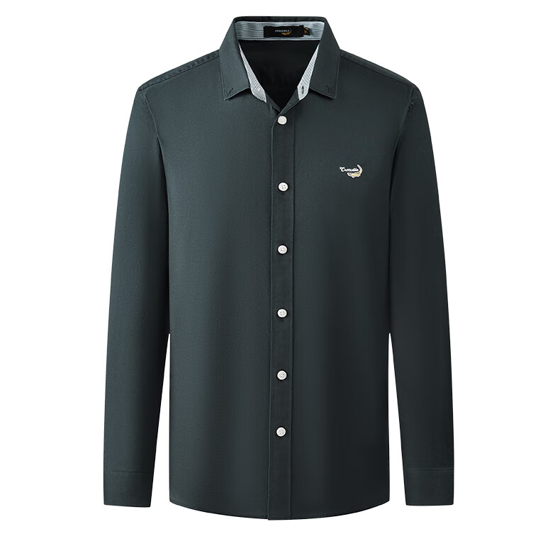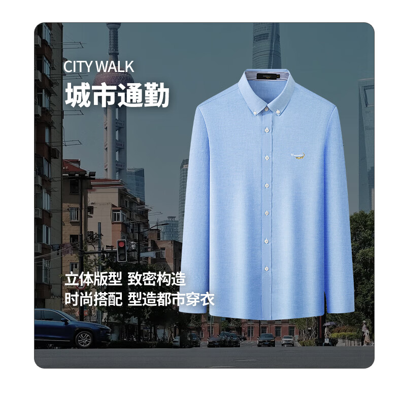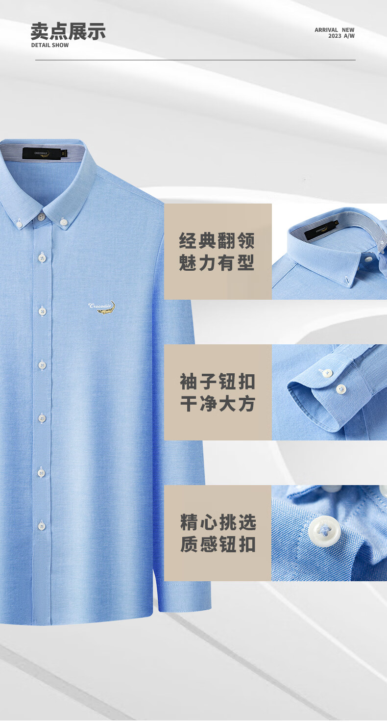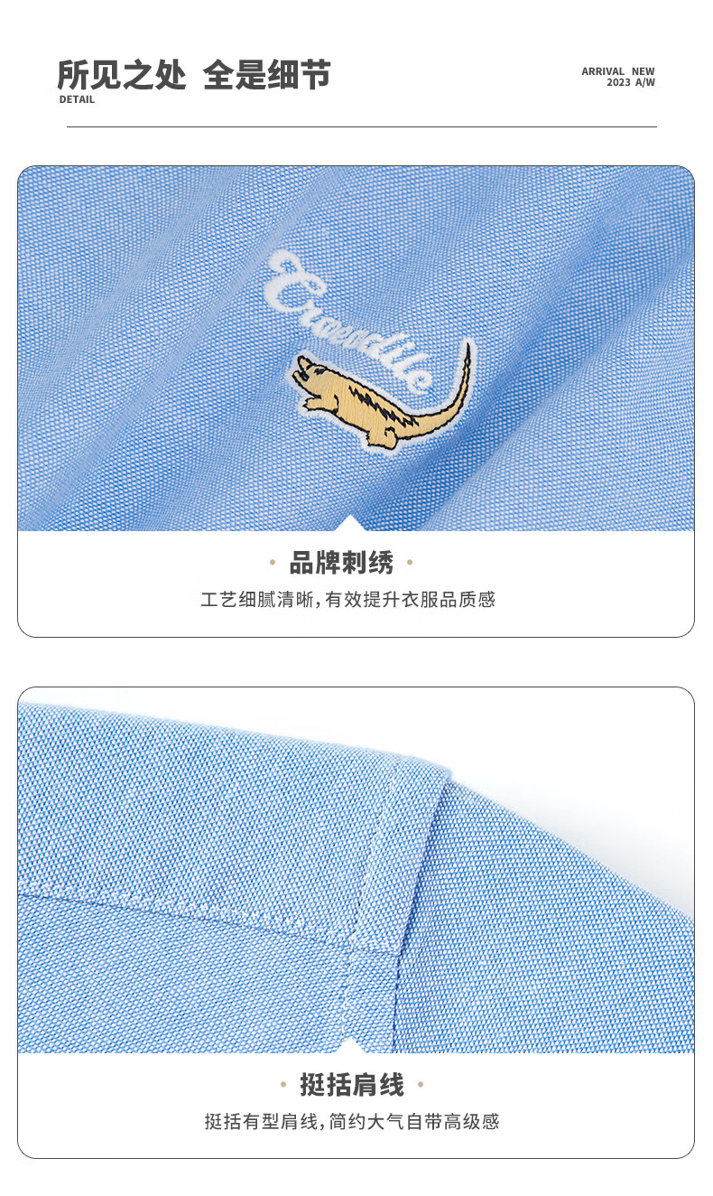 鳄鱼恤长袖衬衫男士常规款商务休闲纯色简约翻领正装衬衣 浅蓝色 4XL(58)195/108A