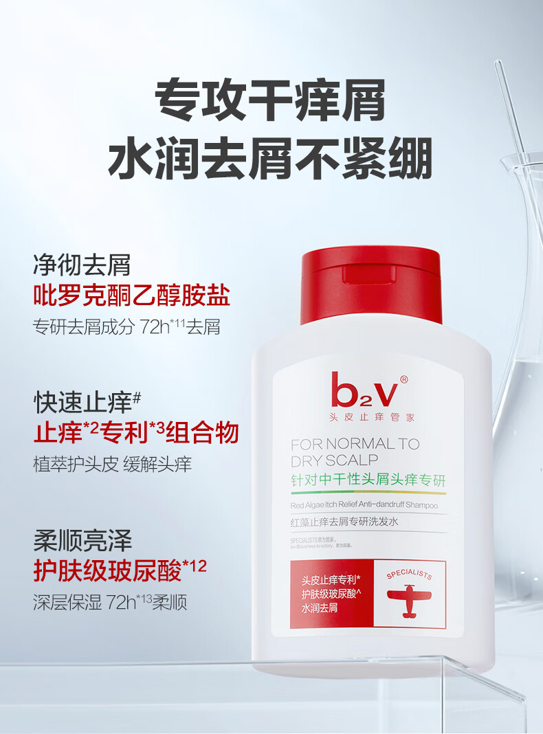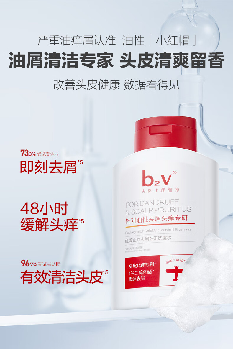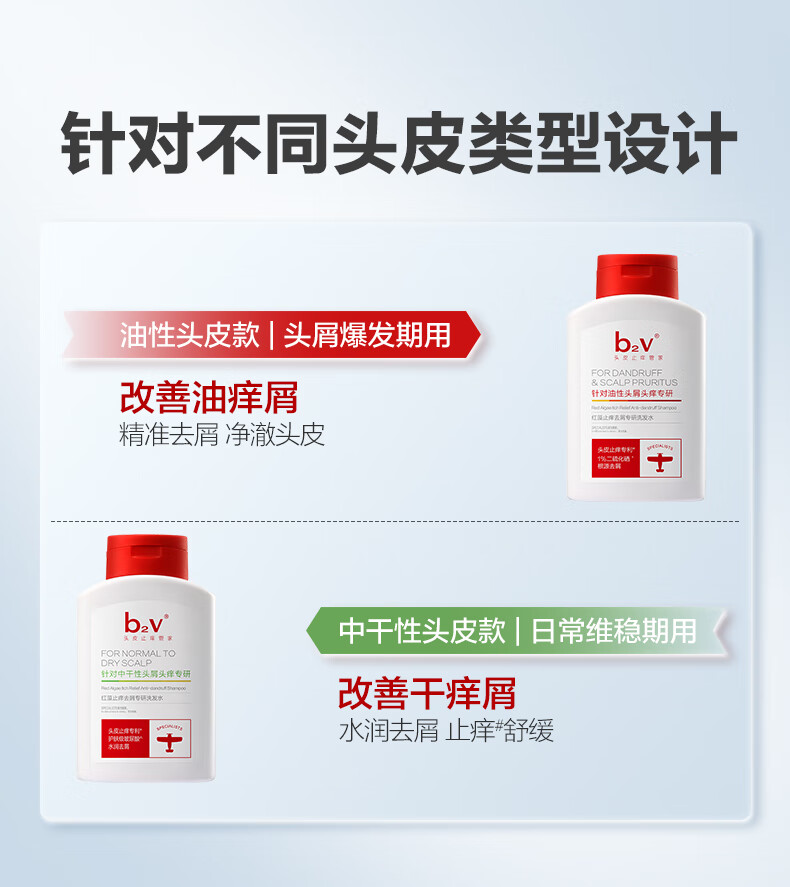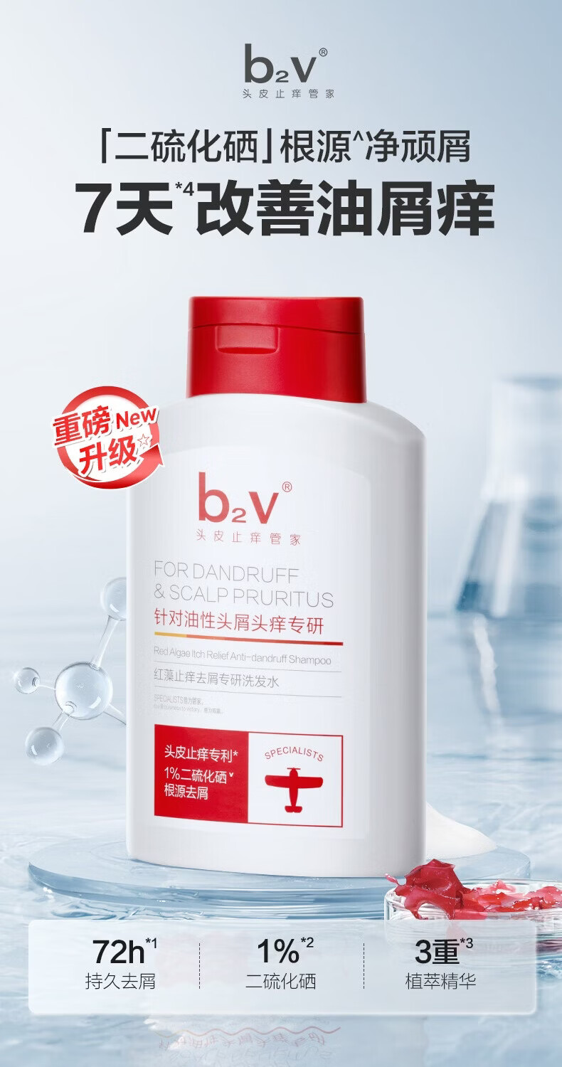b2v红藻海藻洗护 止痒去屑舒缓控油洗发乳滋润护发素去油柔顺洗发水 祛屑专研洗发水220ml*2
