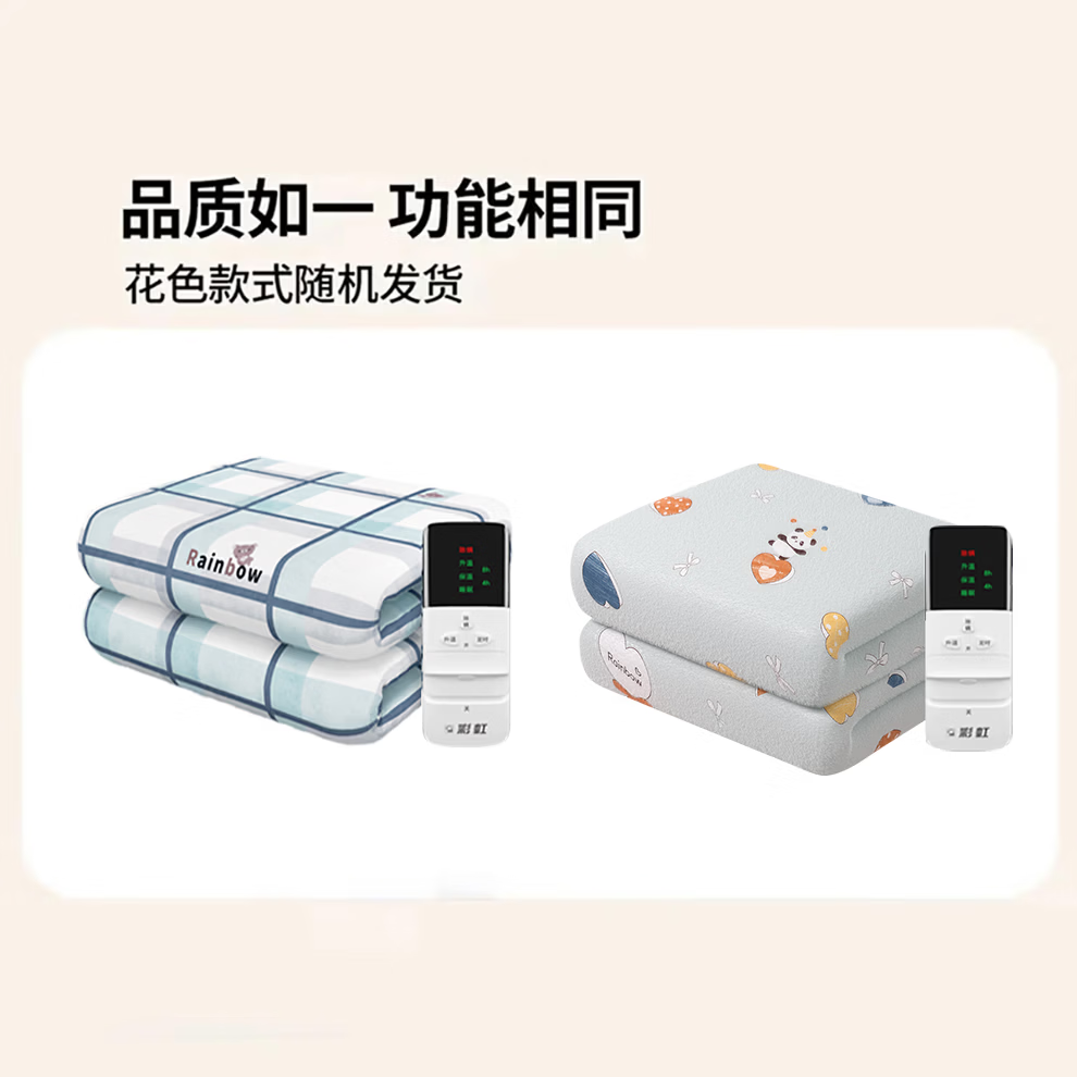 彩虹电热毯双人双控2*1.8米定时9档NTC调温可水洗加厚电褥子家用毯子 可水洗 NTC控温9档调温除菌除螨 15小时定时 2.0*1.8米