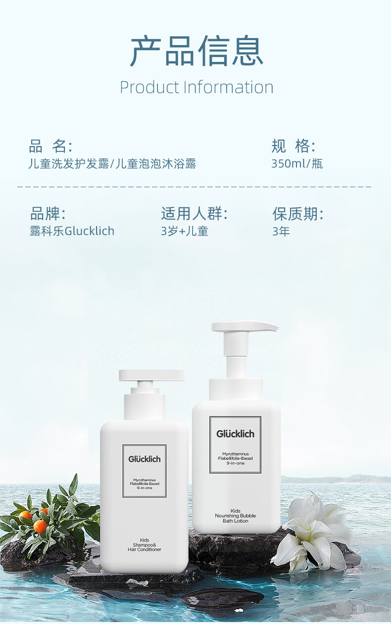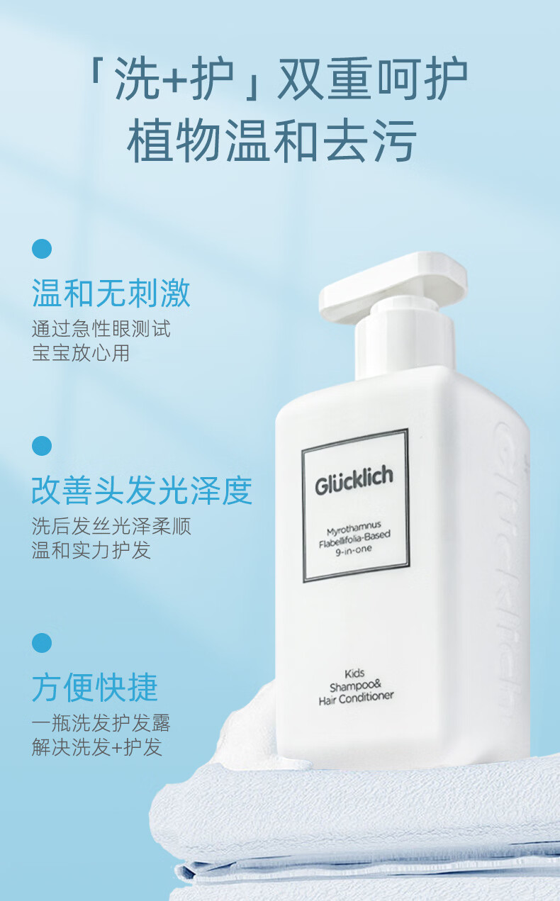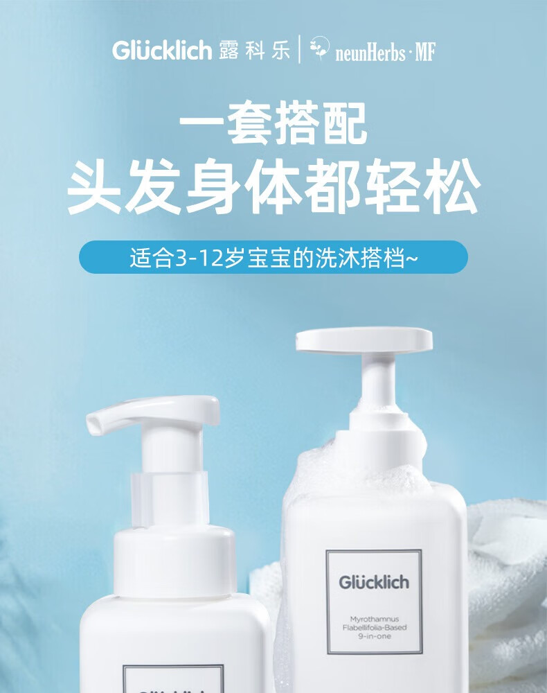 露科乐(Glucklich)儿童洗发护发 沐浴露 3-12岁儿童专用洗发液无刺激 男女童适用 儿童洗发护发+儿童泡泡沐浴露