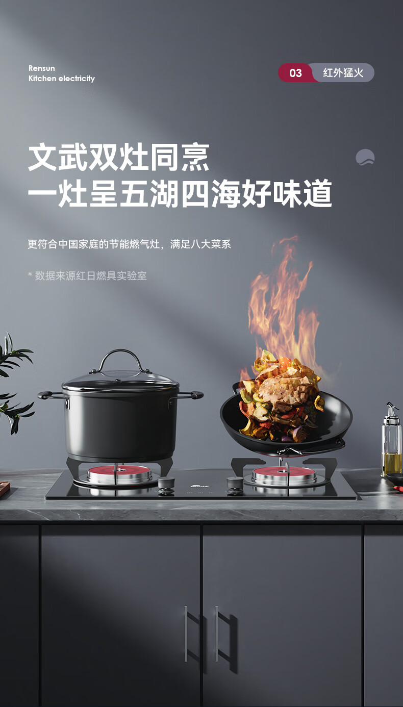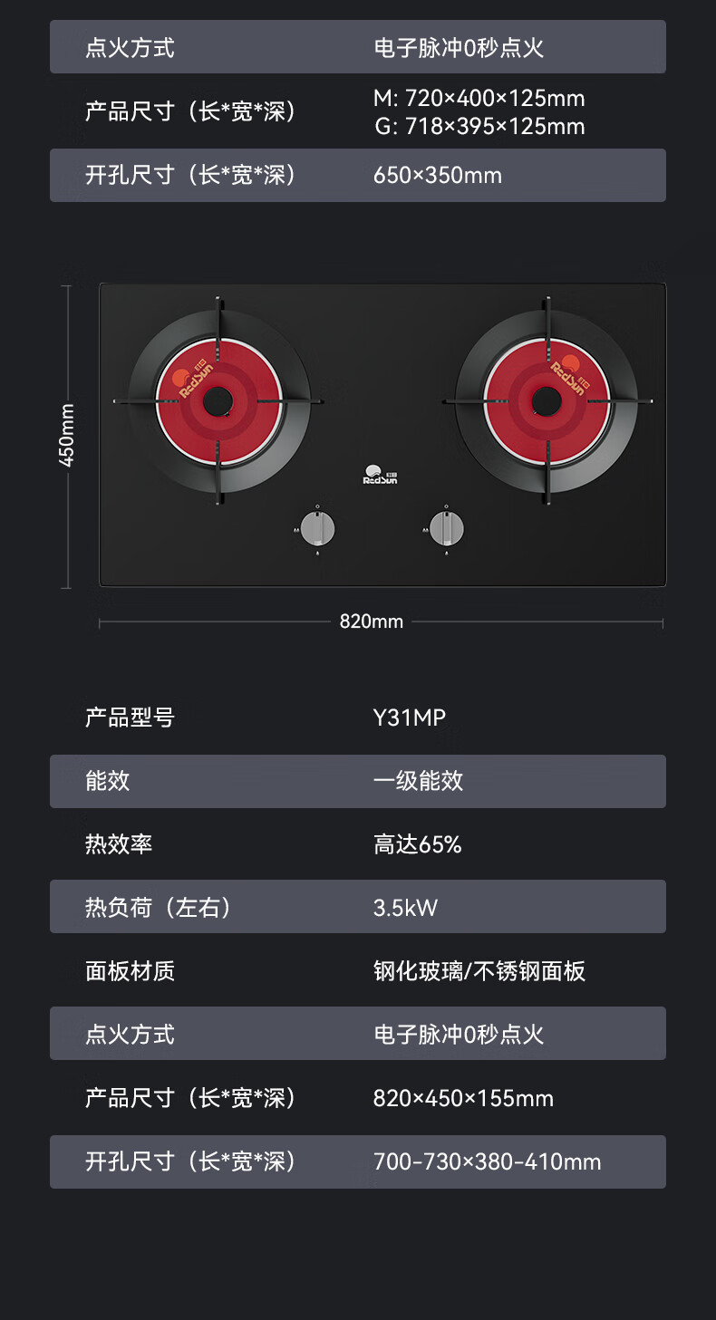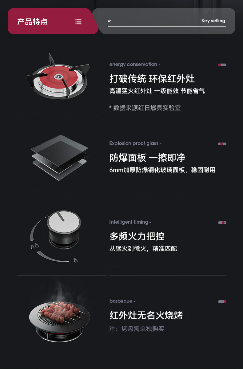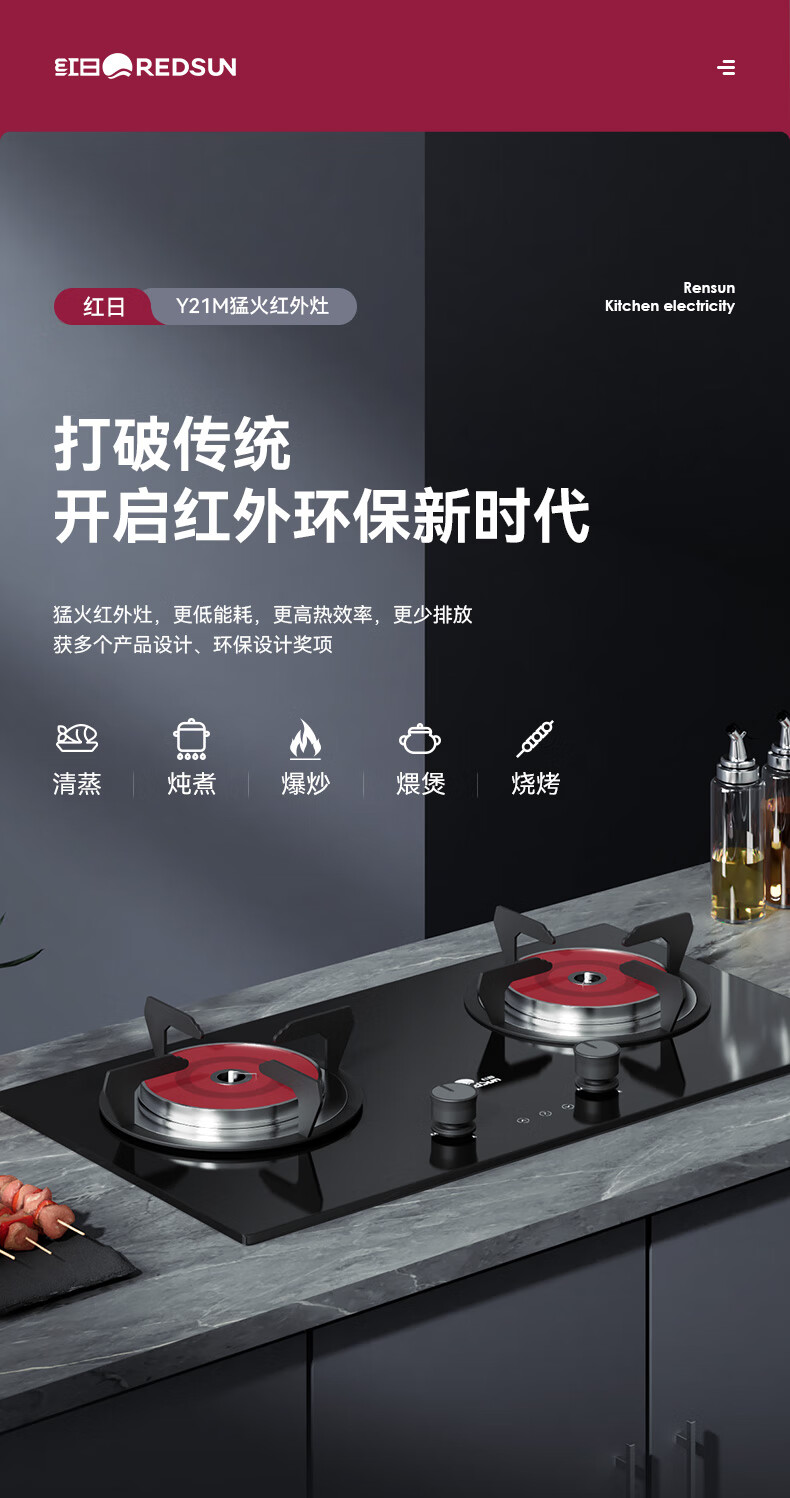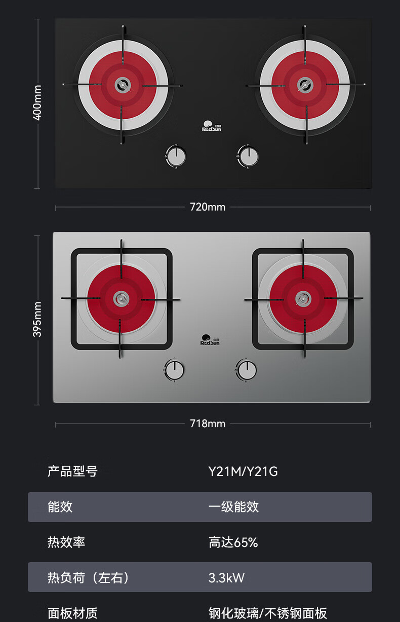 红日(RedSun)定时猛火聚能红外线燃气灶具高热效率家用一级能效节能省气 65%热效率红外灶Y21G【不锈钢】 液化气
