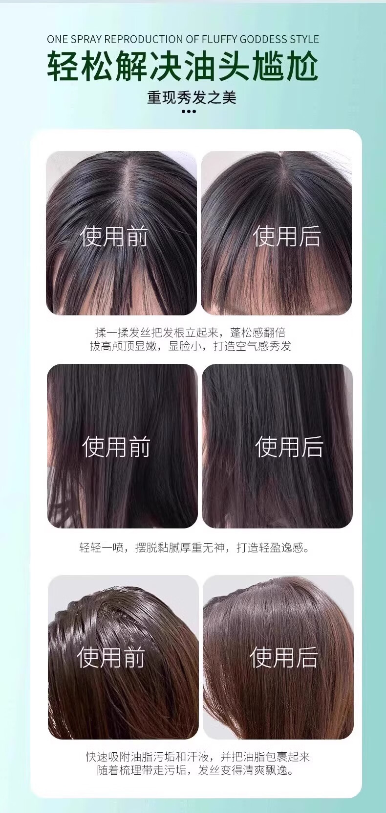 ZYUO日本干发喷雾控油蓬松免洗头发喷雾定型神器懒人油头塌头发蓬松粉 5瓶装【囤货钜惠装】高能蓬松 速干无痕