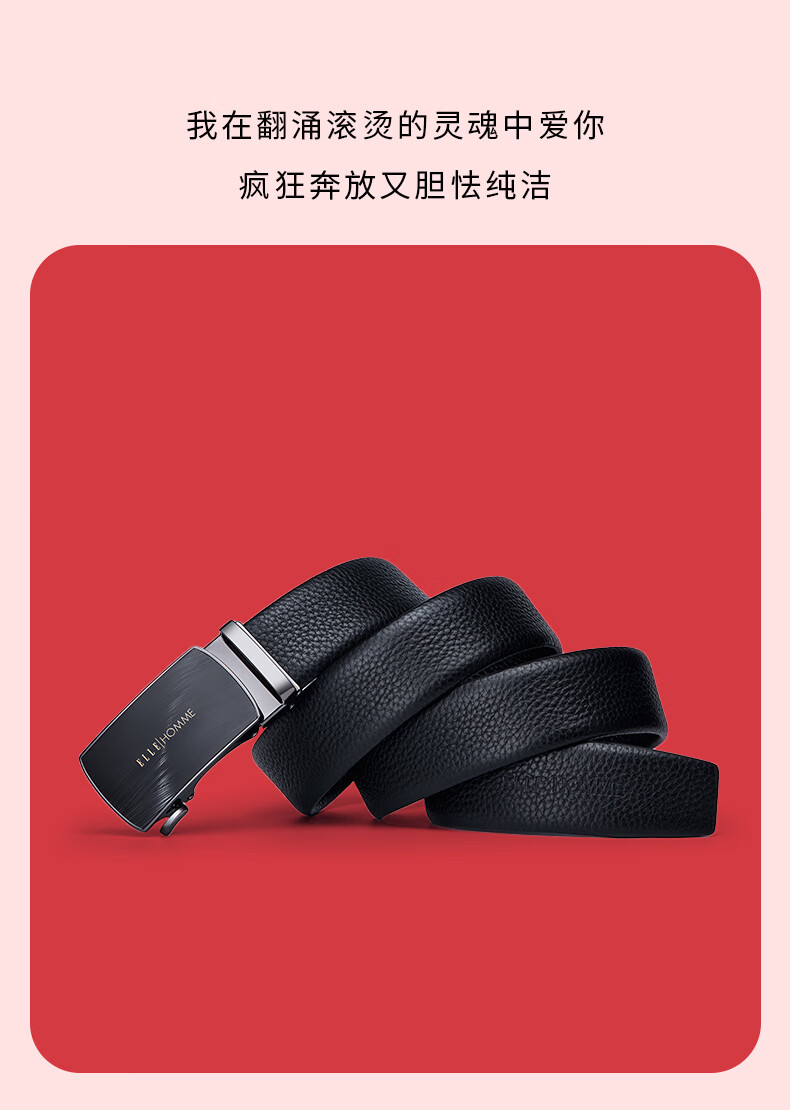 七匹狼男士皮带真牛皮商务自动扣裤腰带实用生日情人节礼物送男友老公 敞开心扉爱意礼 110cm -120cm可备注