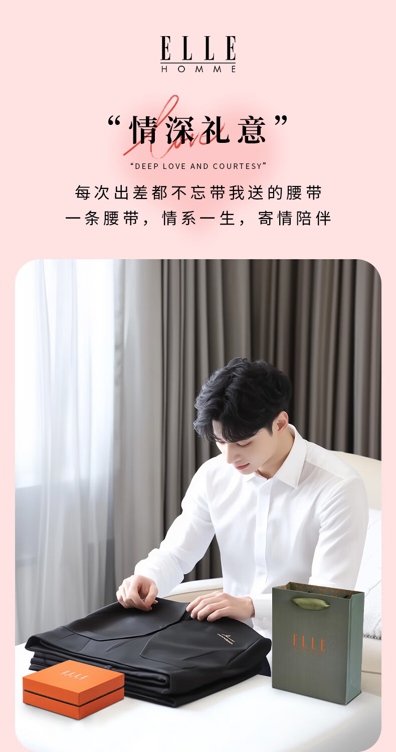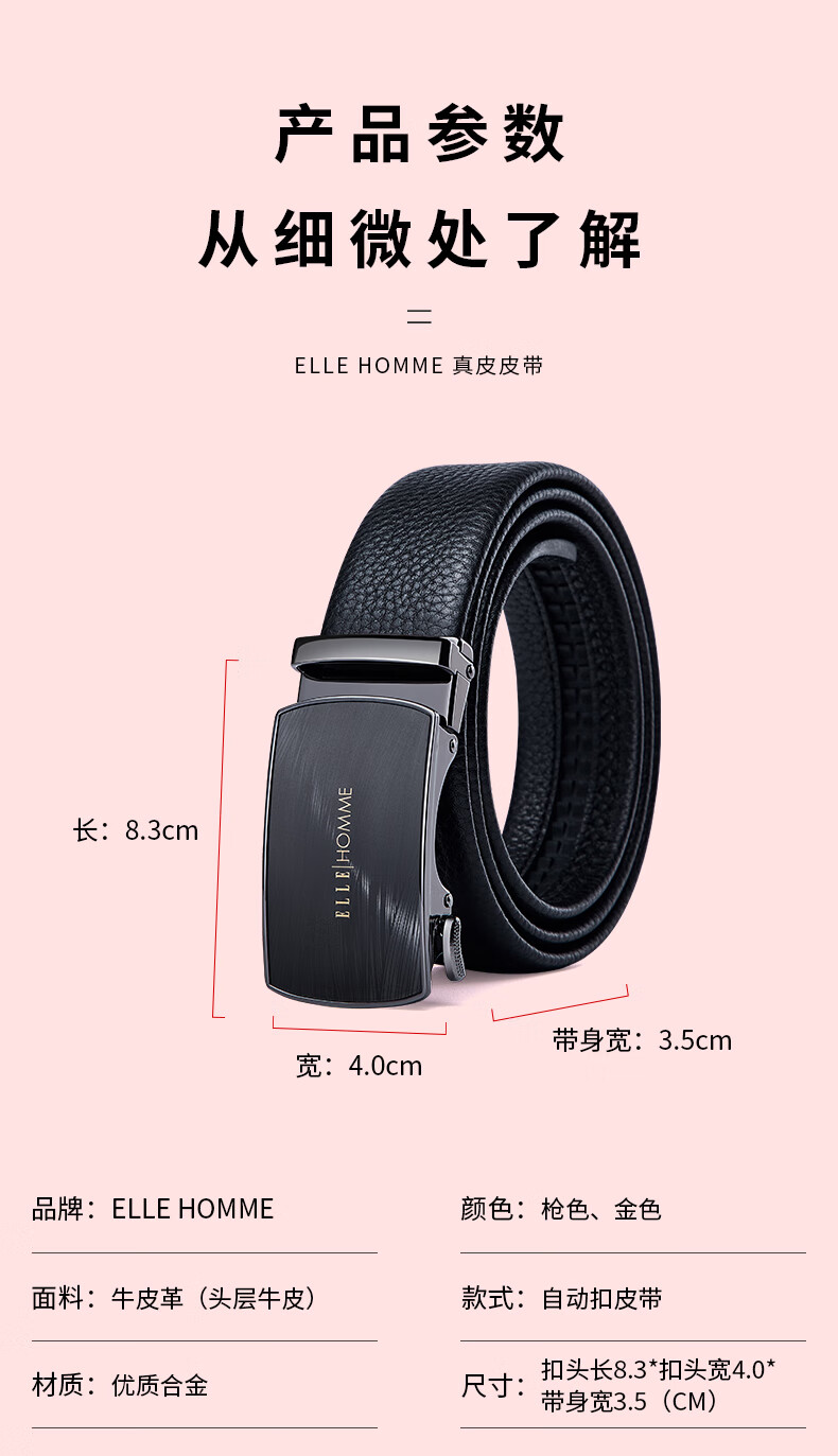 ELLE HOMME法国品牌男士皮带男自动扣真皮腰带牛皮裤带情人节礼物送男友老公 【橙色礼盒】902045时尚金色 115cm -130cm随机发(可修剪)