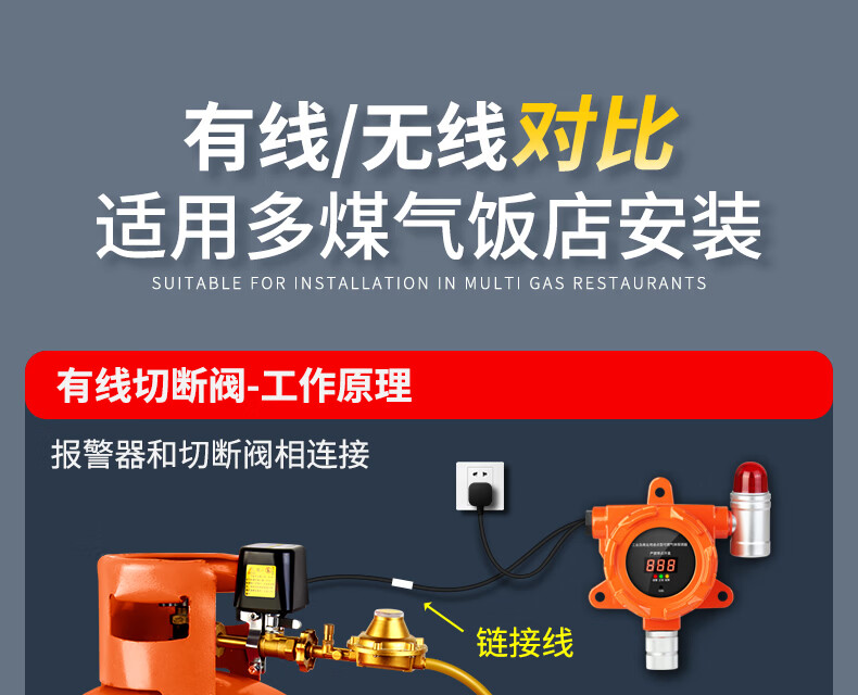 立可安商用燃气报警器自动切断阀餐饮煤气天然气液化气可燃气体报警器 小型餐饮专用防爆声光报警器