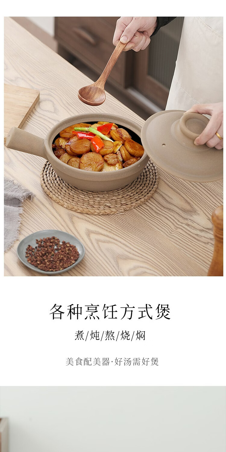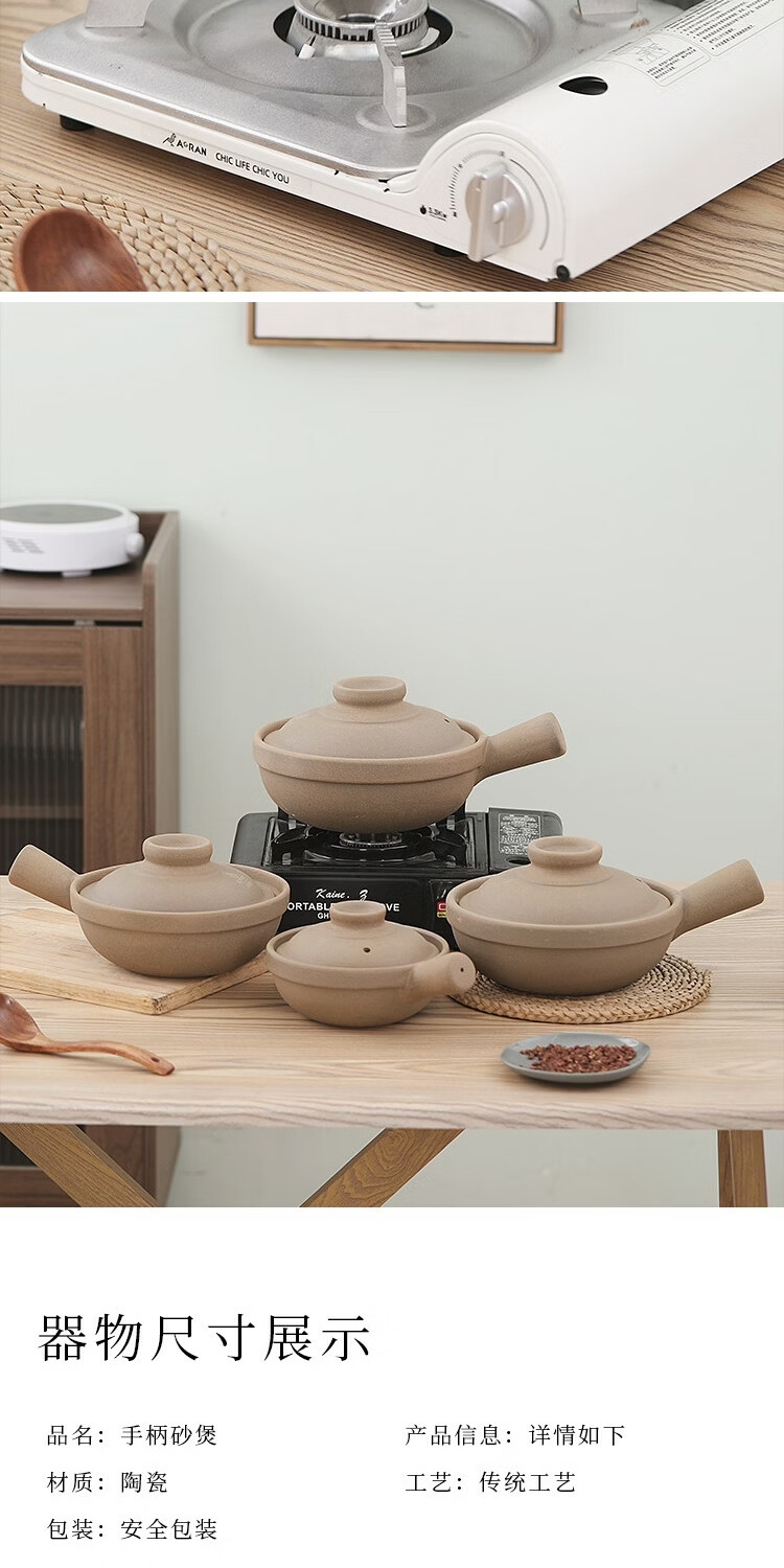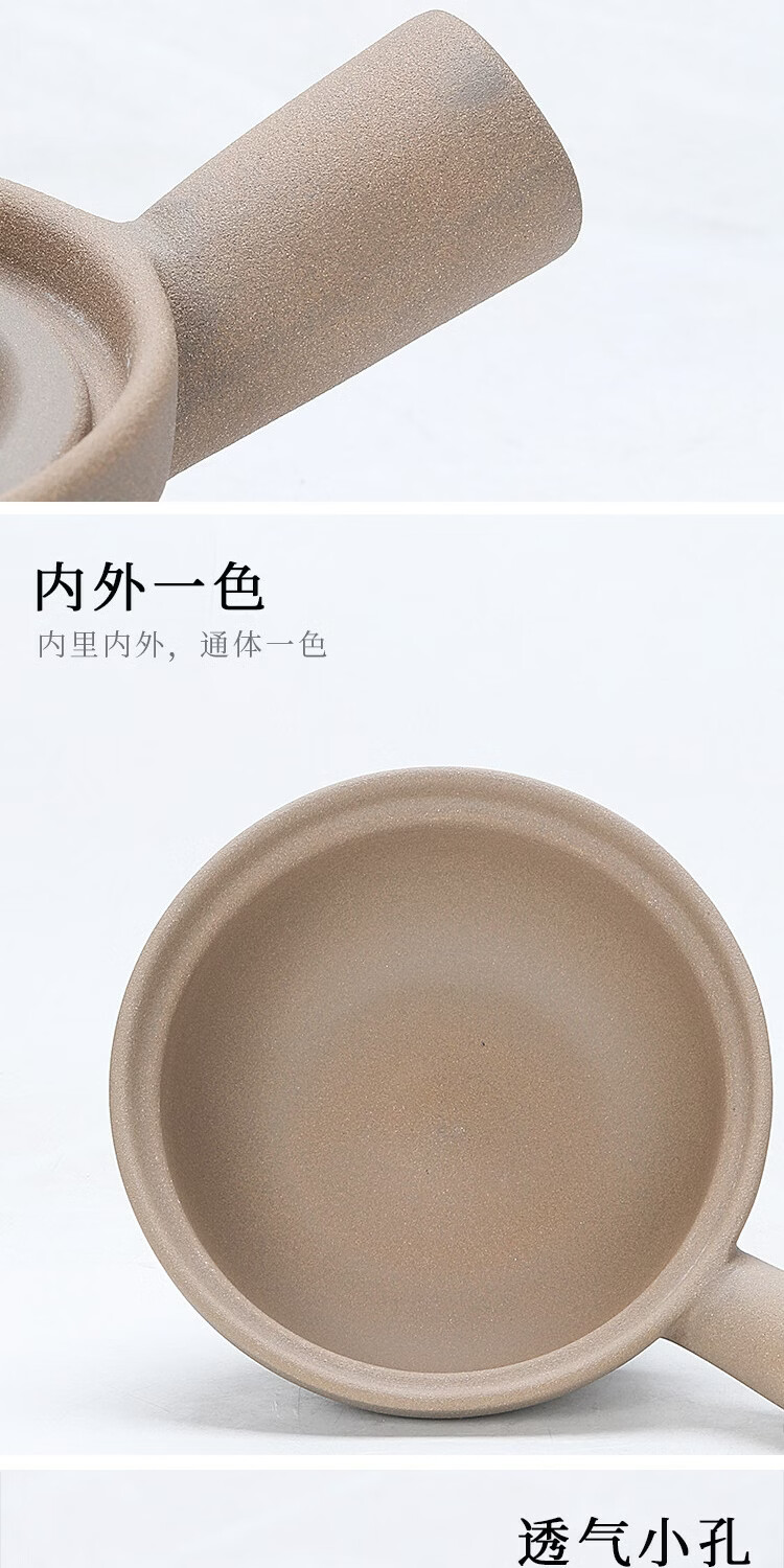 炎礼陶瓷老式煲仔饭单柄土砂锅家用传统粗陶带手柄无釉燃气灶干烧 原陶单柄砂锅-(2000ml)2000ml 2000ml