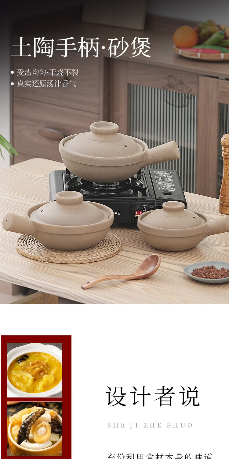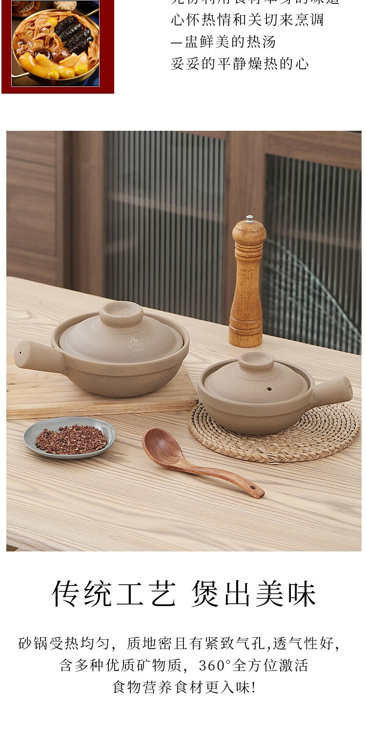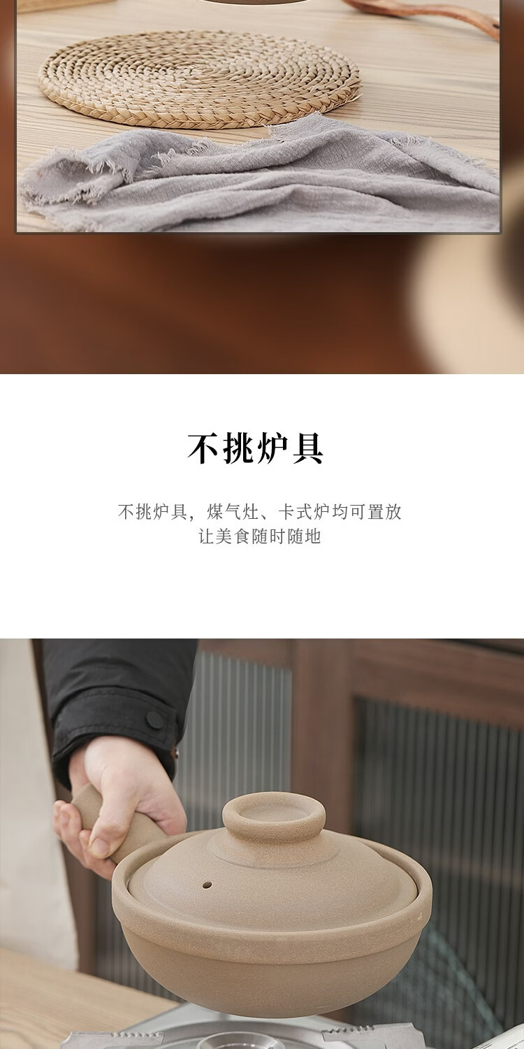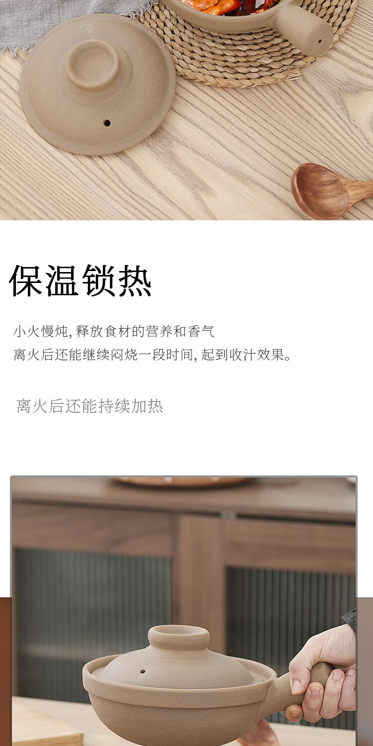 炎礼陶瓷老式煲仔饭单柄土砂锅家用传统粗陶带手柄无釉燃气灶干烧 原陶单柄砂锅-(2000ml)2000ml 2000ml