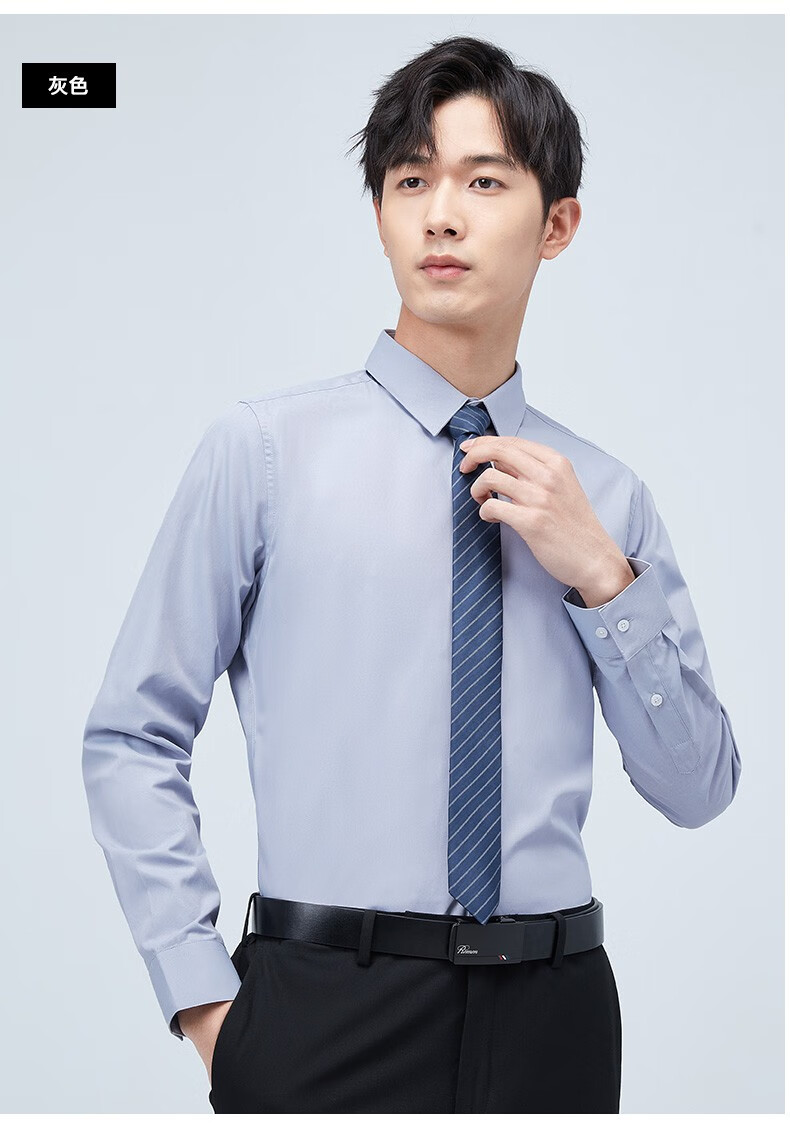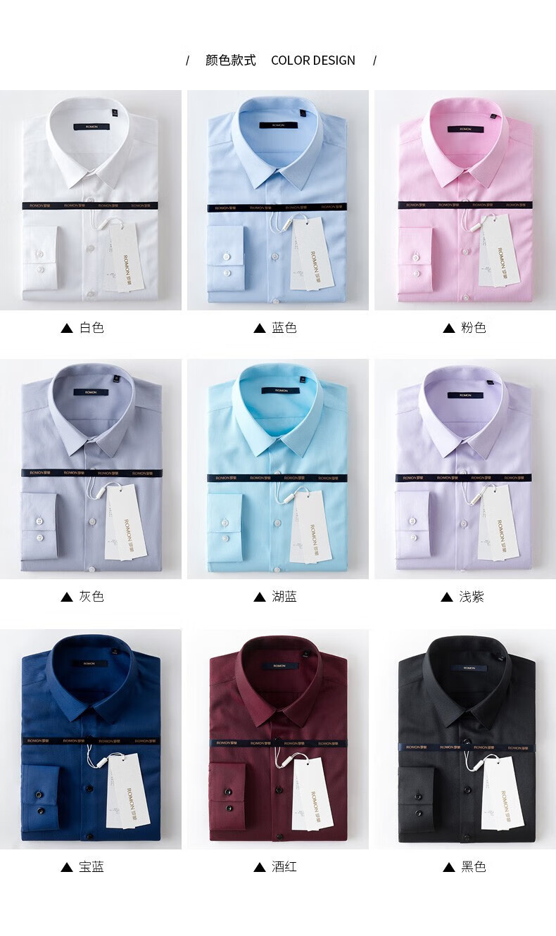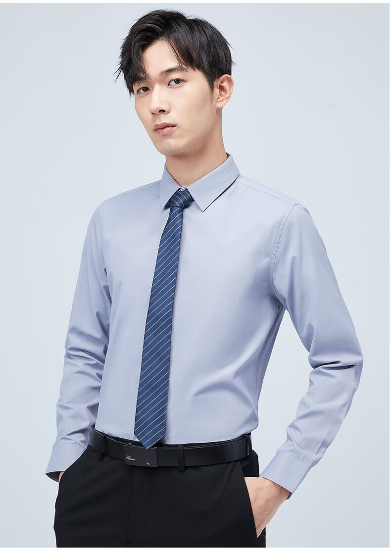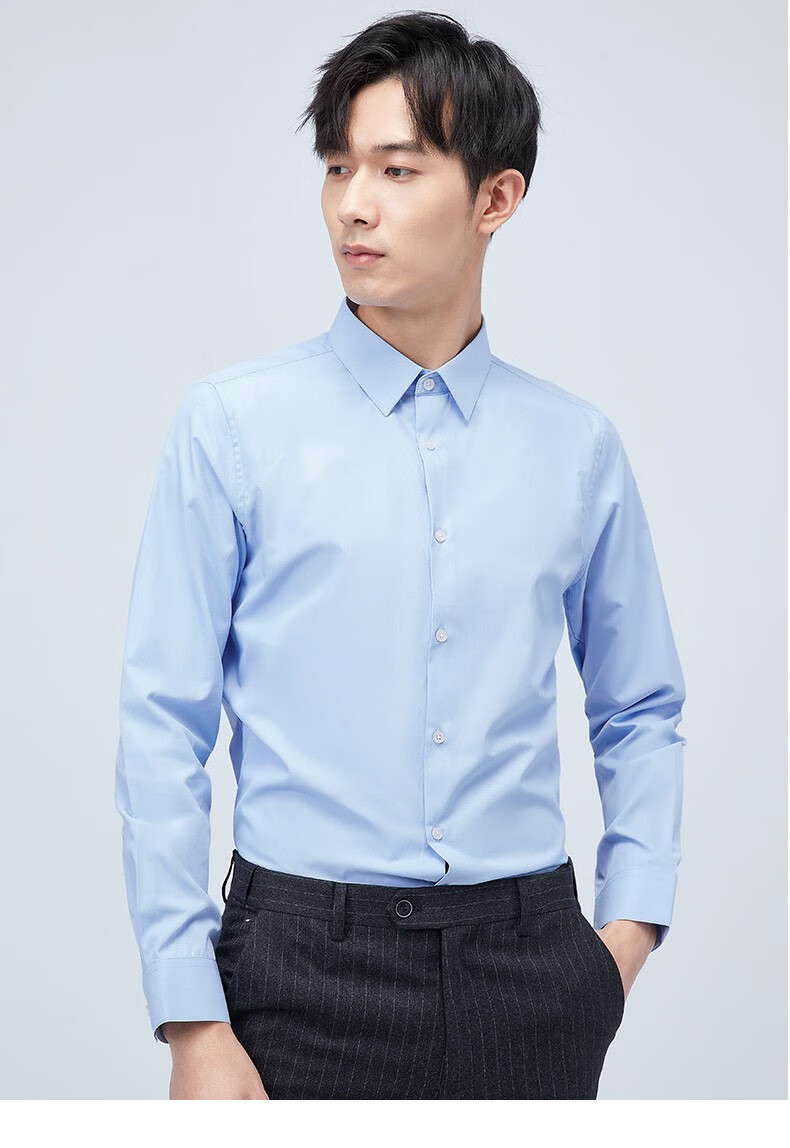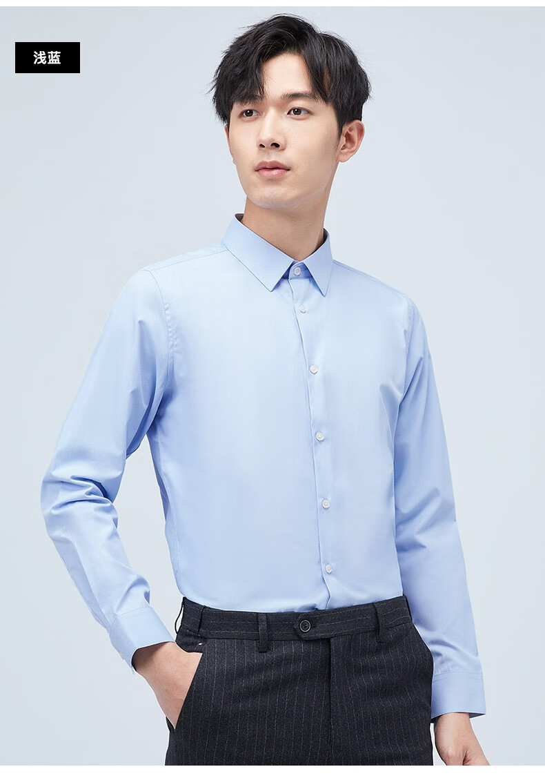 罗蒙(ROMON)长袖衬衫男秋季中青年男士斜纹职业工装衬衣商务休闲翻领上衣 浅蓝 38