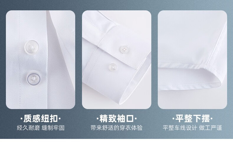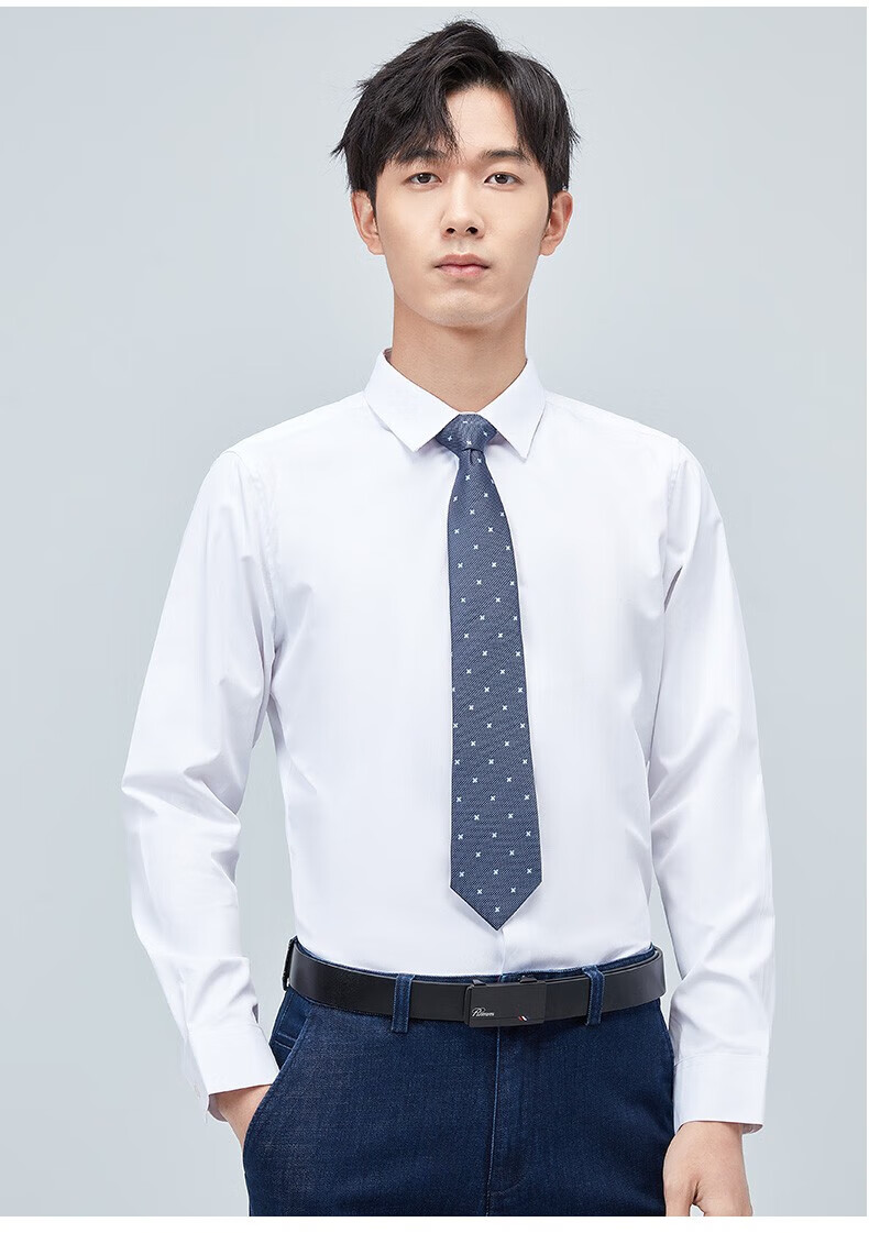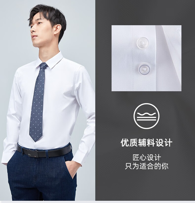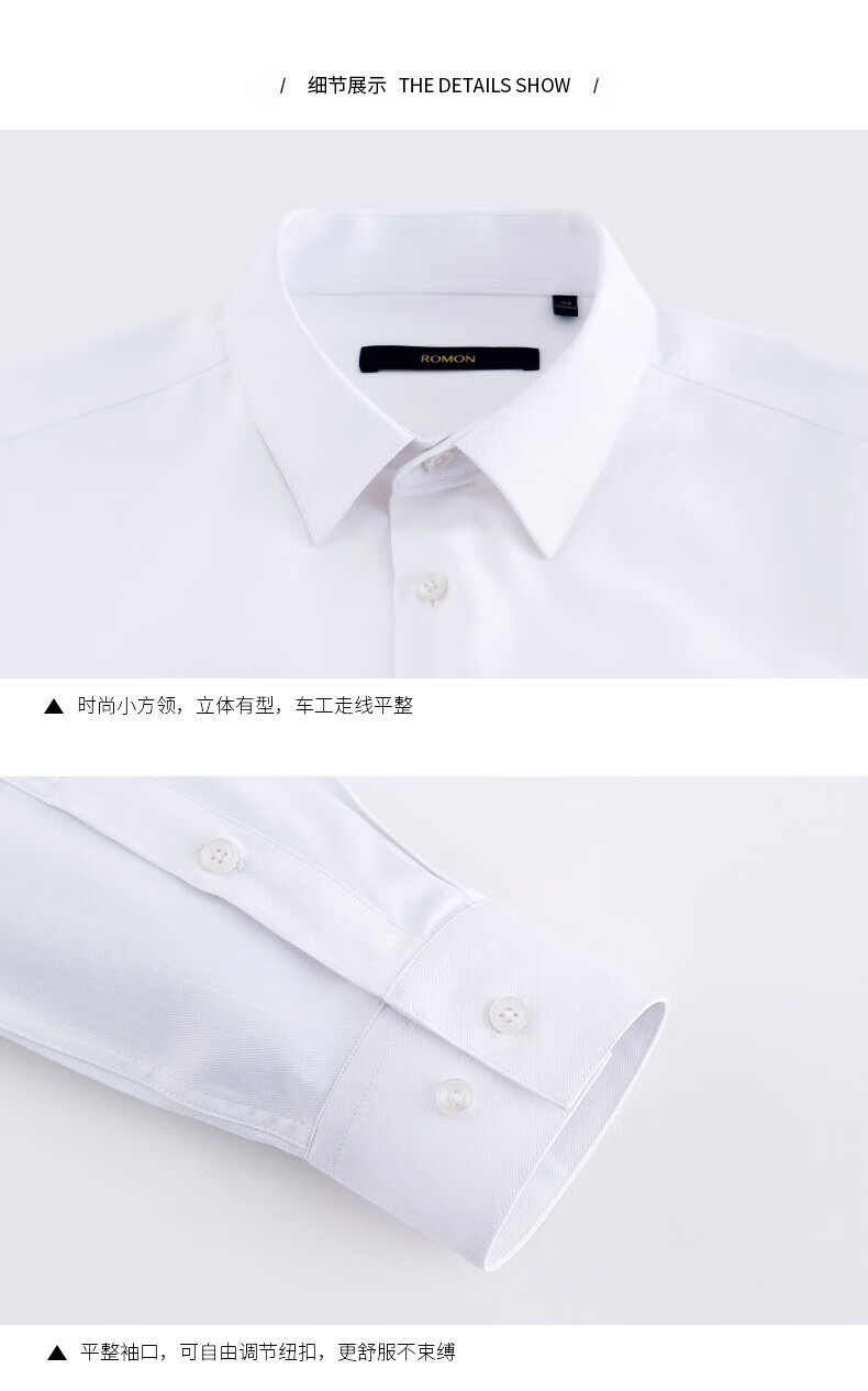 罗蒙(ROMON)长袖衬衫男秋季新款中青年商务休闲衬衣纯色工装衬衫 白色 43