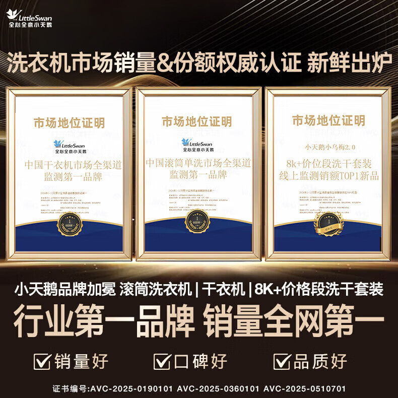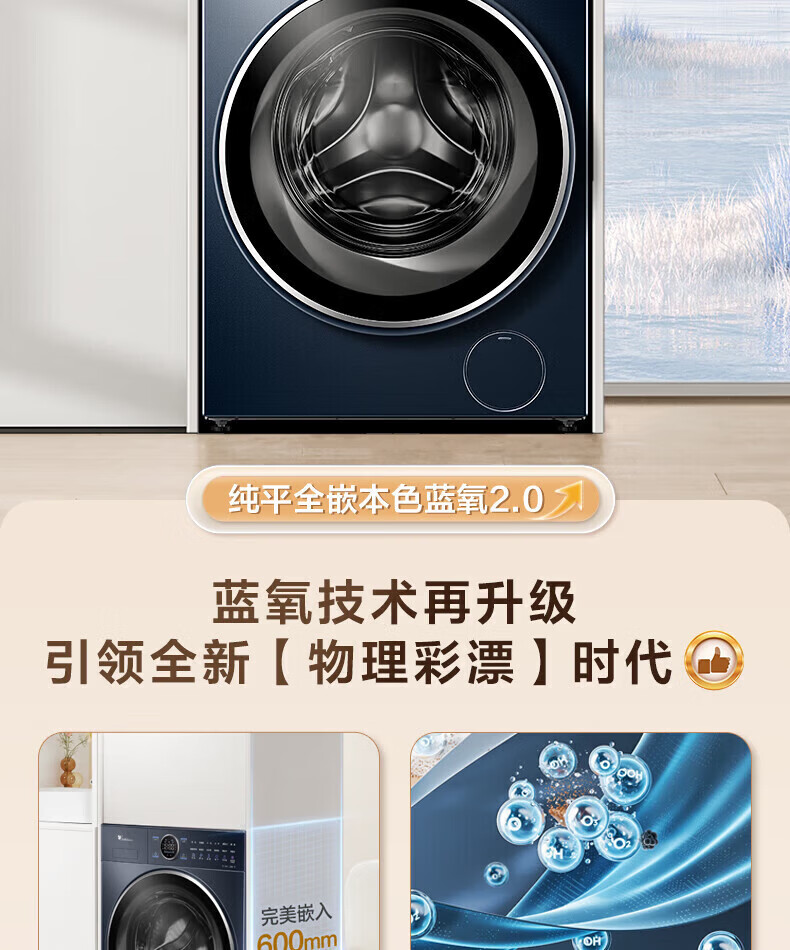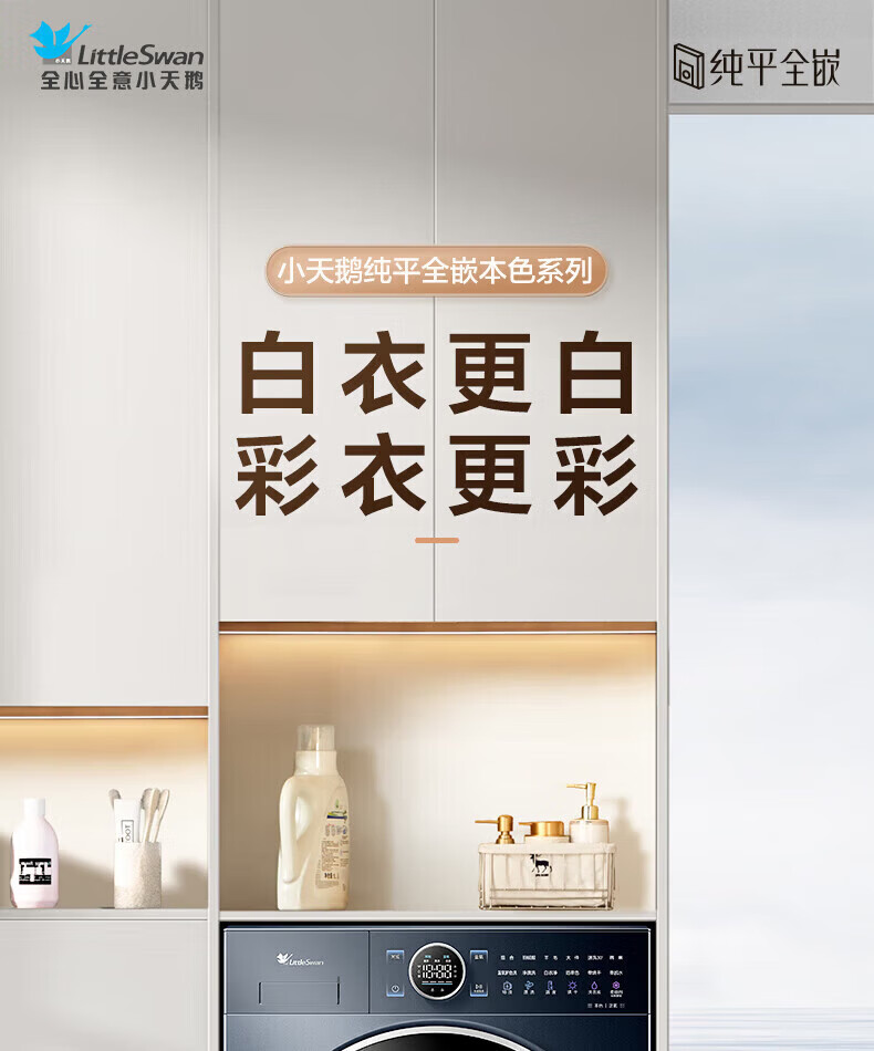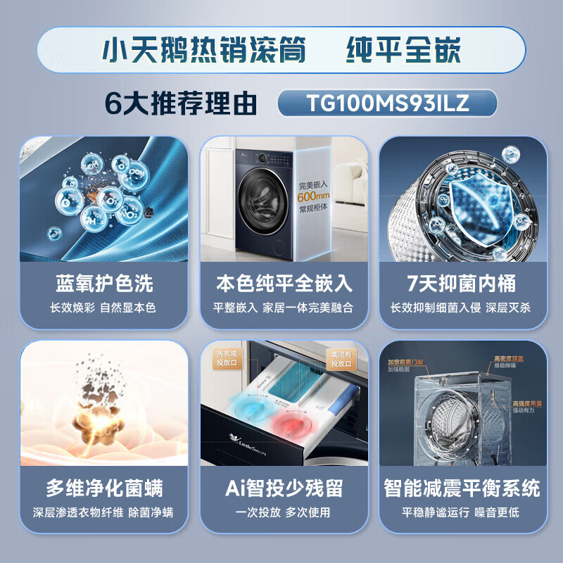 小天鹅(LittleSwan)滚筒洗衣机纯平全嵌 【本色蓝氧2.0高奢】10公斤全自动家用 蓝氧护色洗 智能投放 以旧换新 93带烘干混洗防串色+漩瀑去渍 滚筒