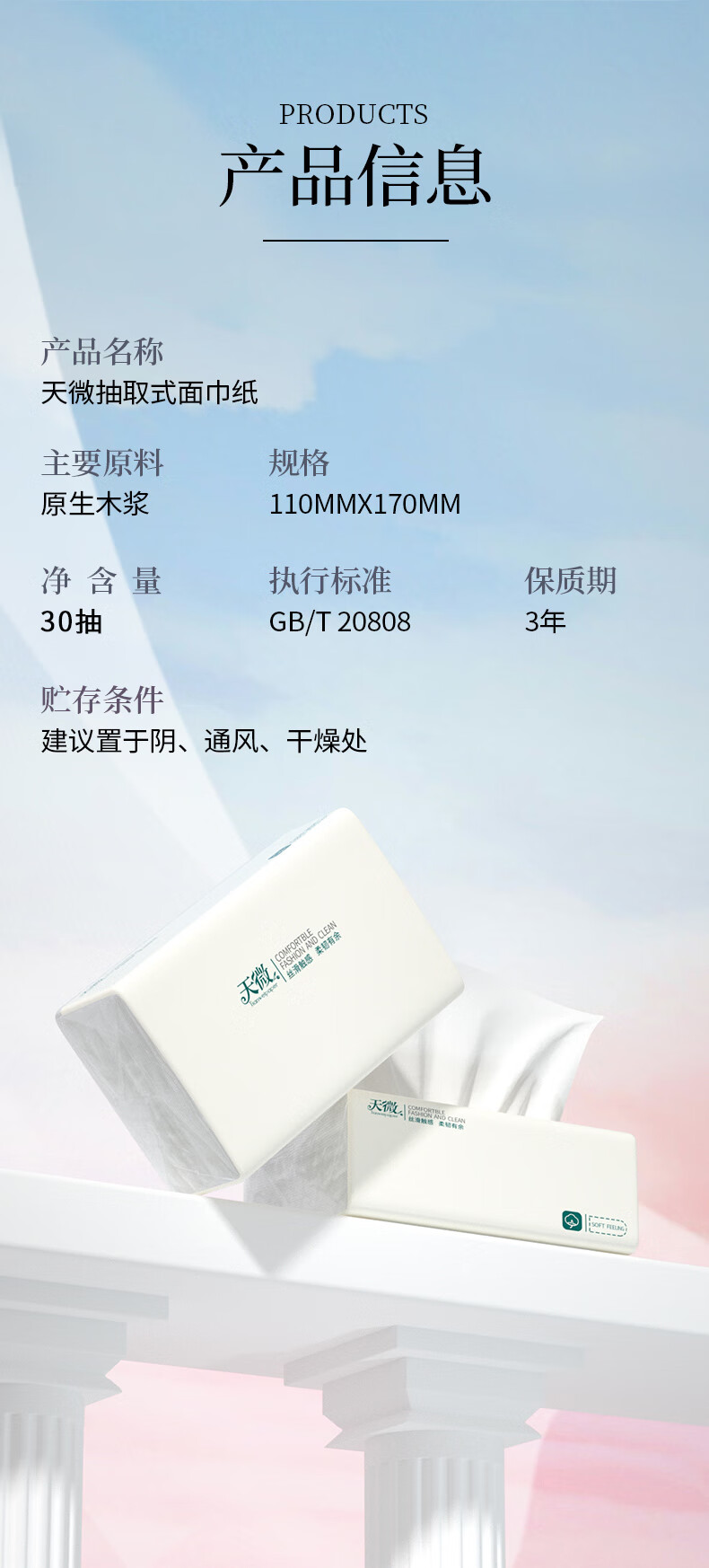 天微【精选好物】60包家用卫生纸纸巾抽纸餐巾纸面巾纸擦手纸工厂直销 2层 30抽*10包