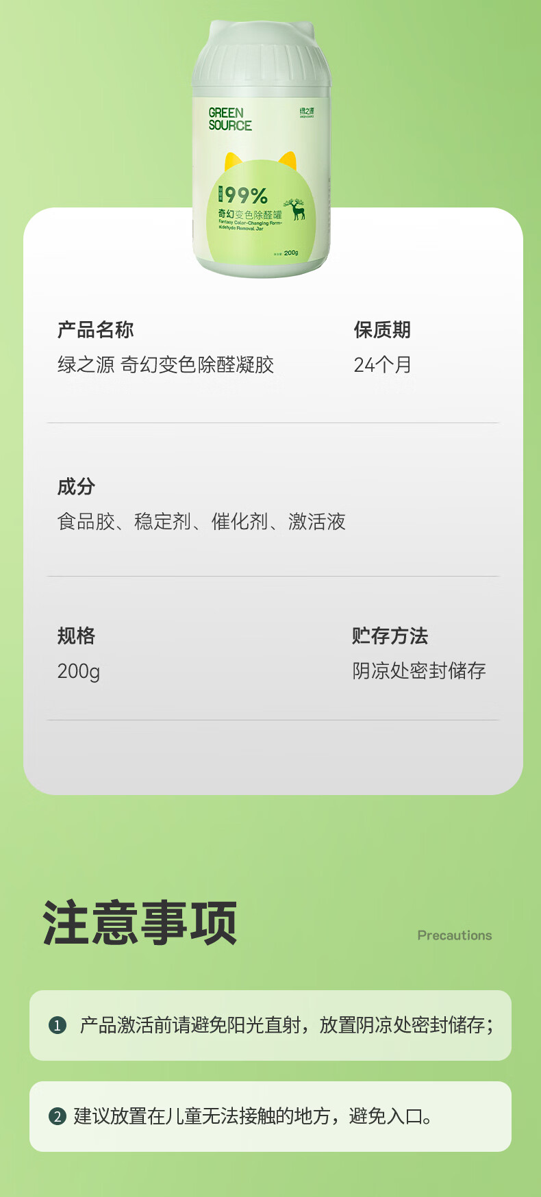 绿之源除甲醛变色凝胶果冻魔盒除醛罐新车新房装修急入住安心 2罐丨奇幻变色除醛罐丨净化30-40㎡ 330g 1盒