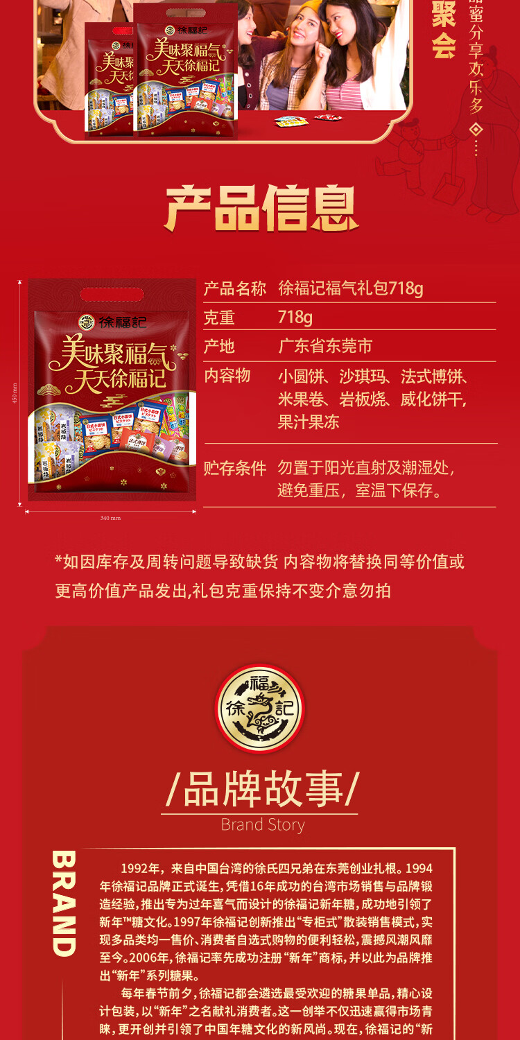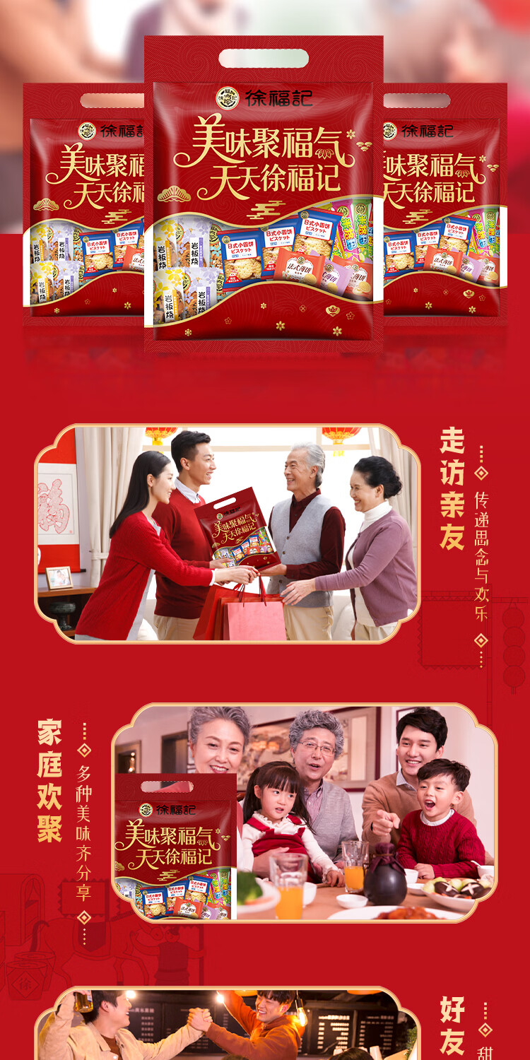 徐福记年货零食大礼包 饼干蛋糕休闲零食礼包 儿童零食 春节团购礼品 福气礼包718g*4
