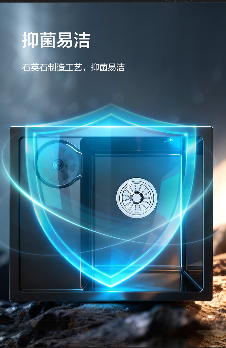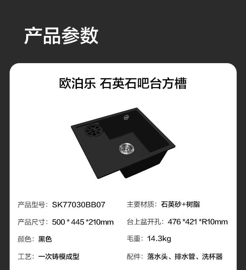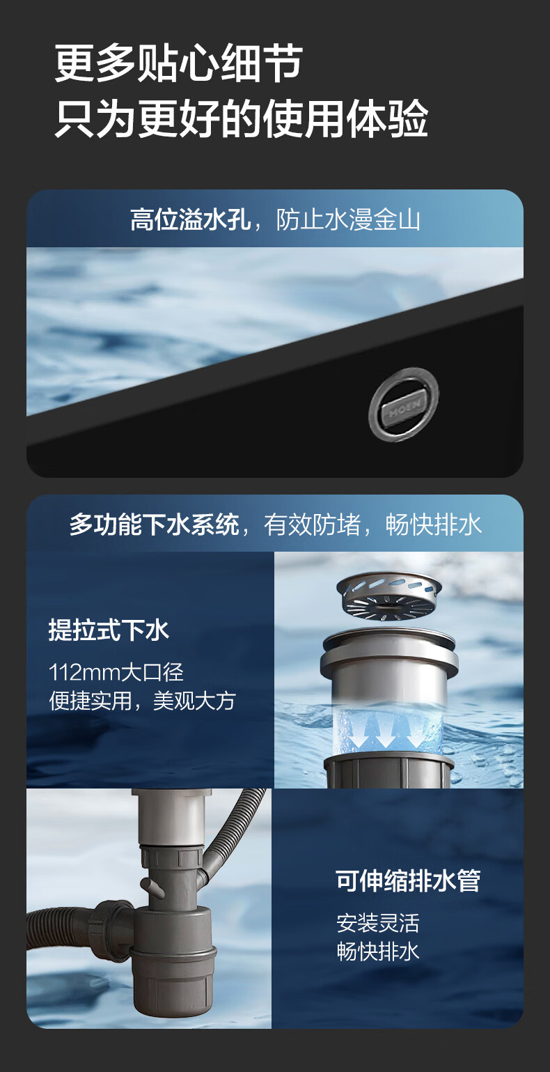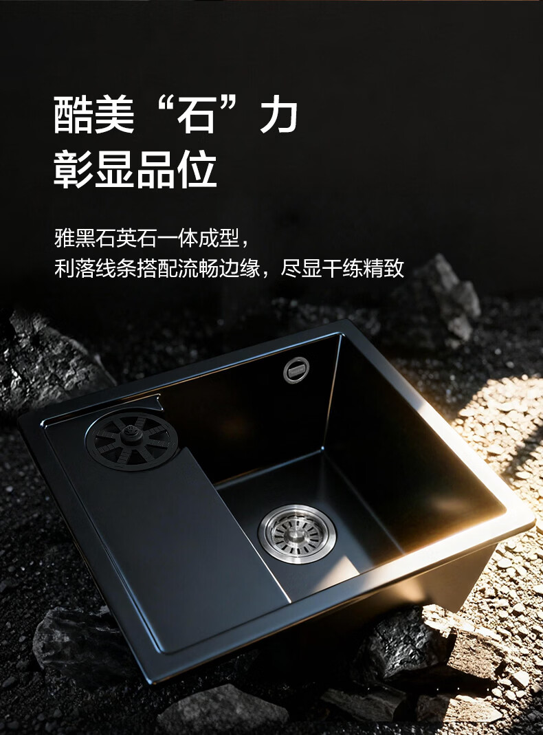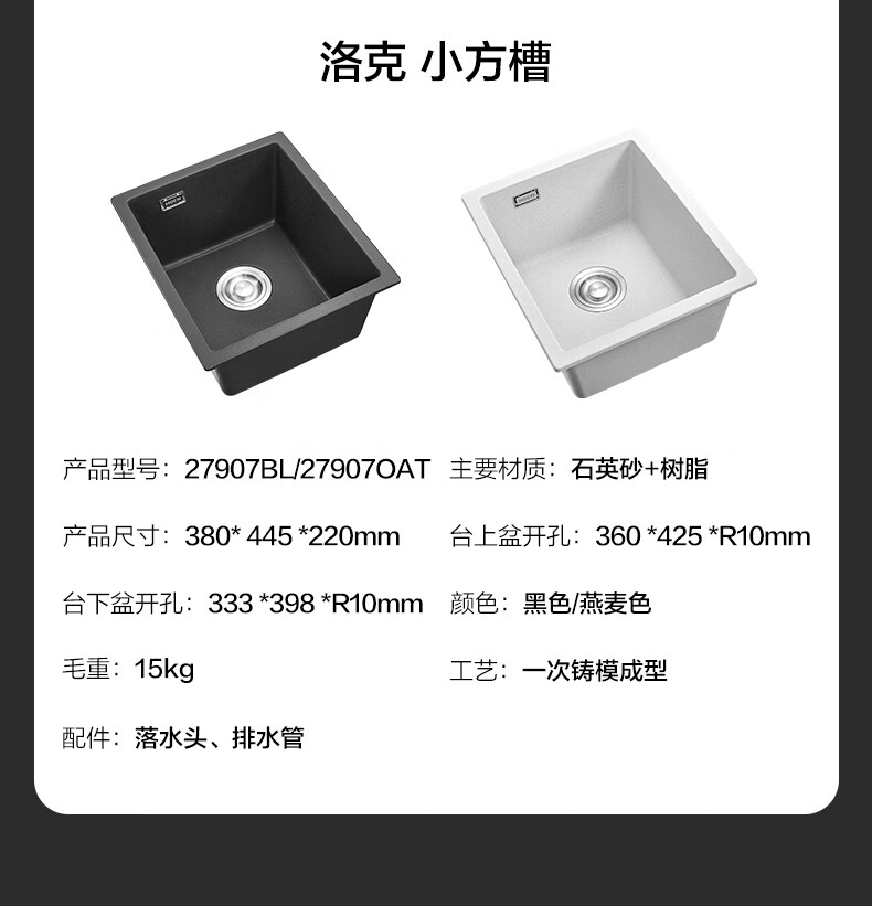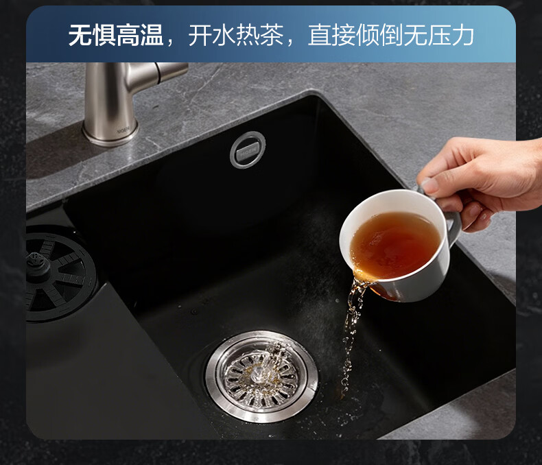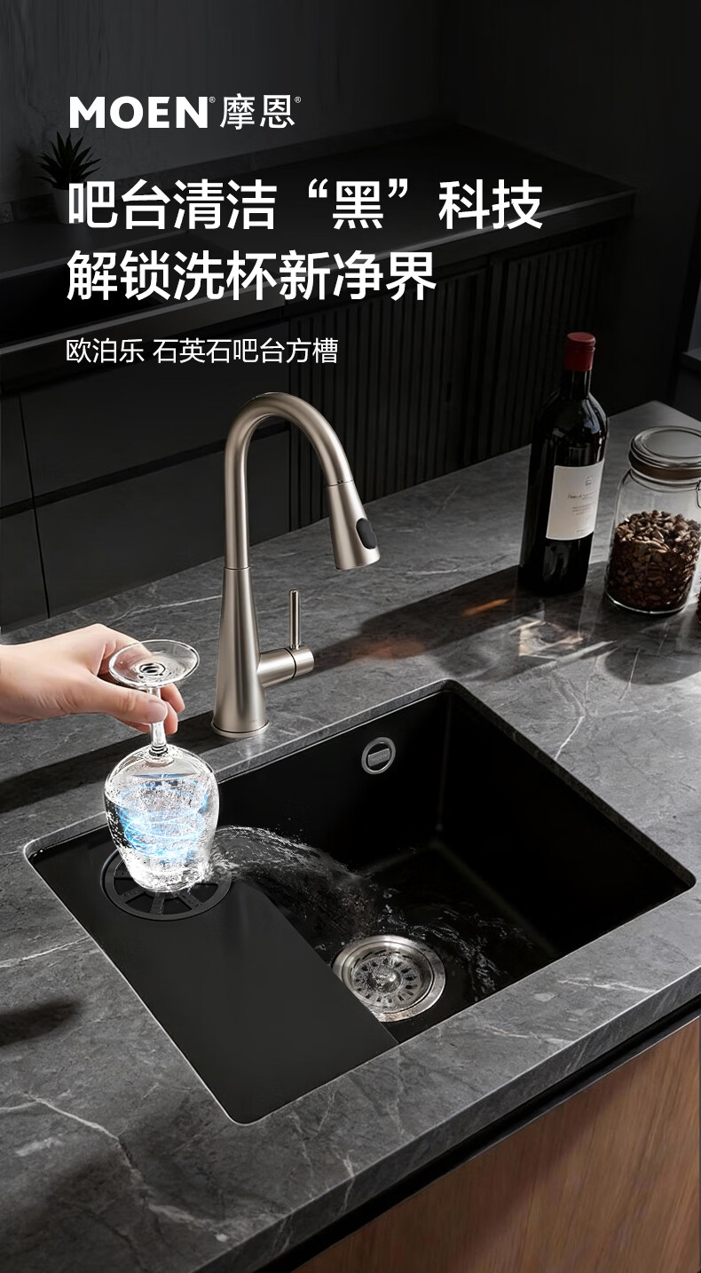 摩恩(MOEN)欧泊乐系列厨房水槽洗杯器石英石材质耐磨抗污有效抑菌单槽 洛克系列380*445*220花岗岩单槽(燕麦色)