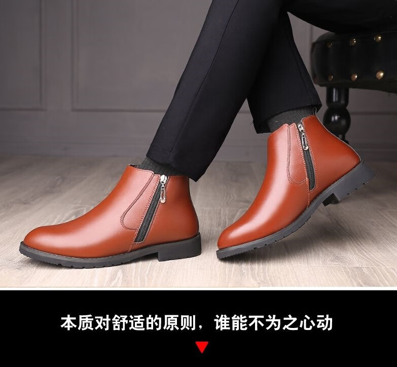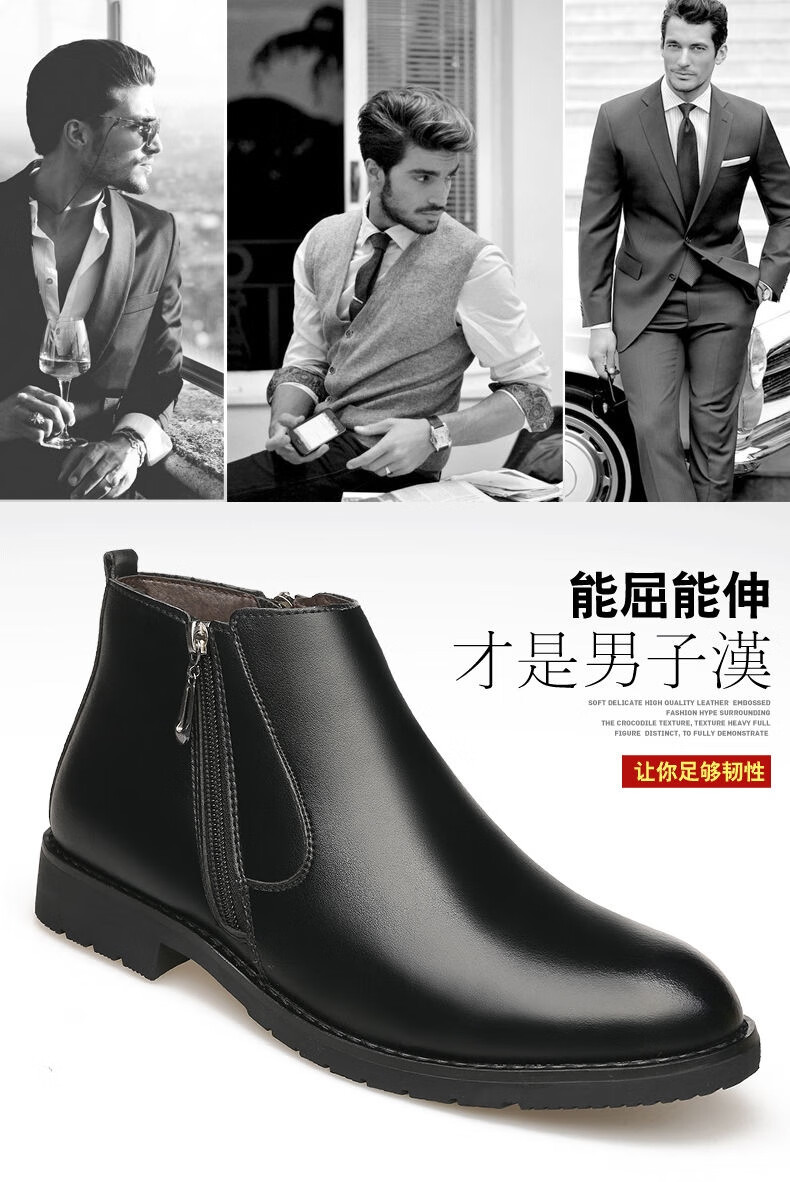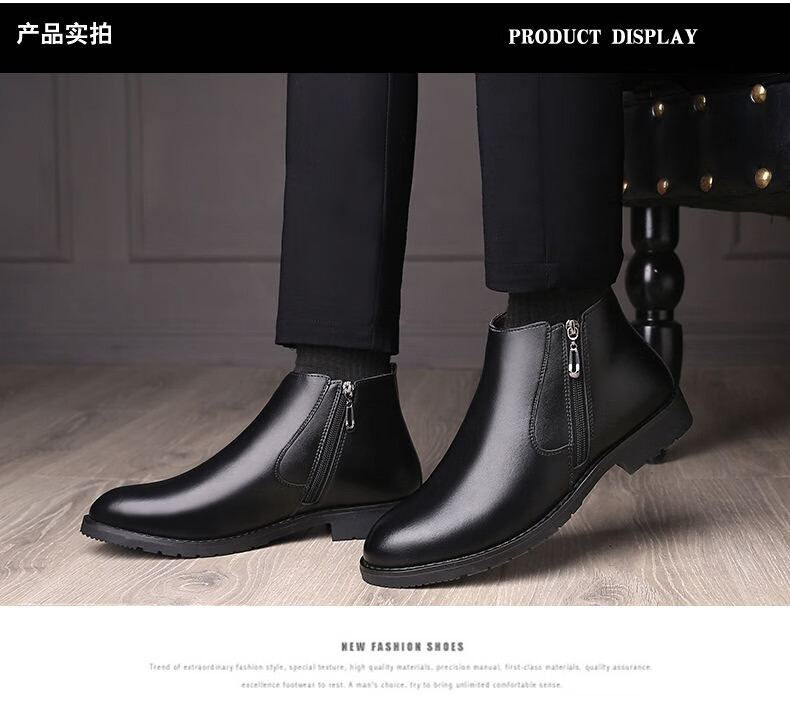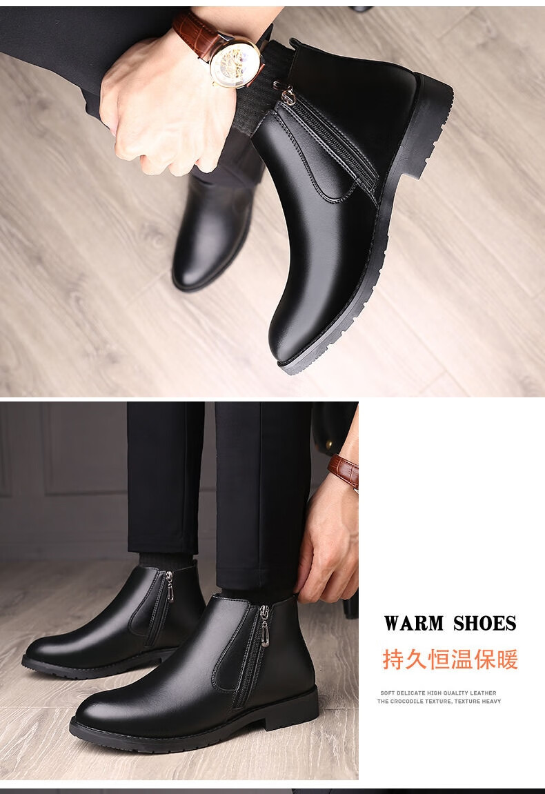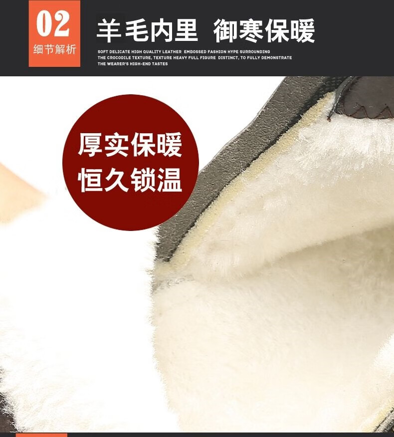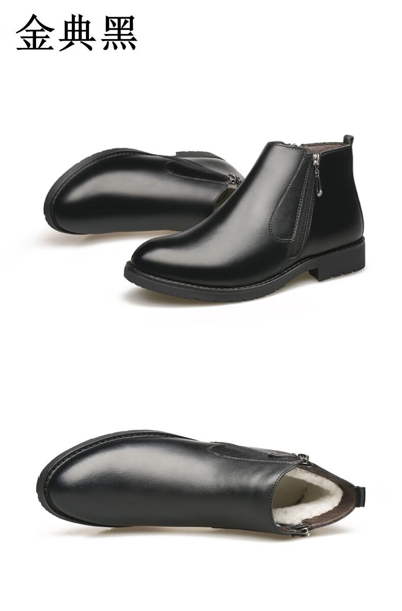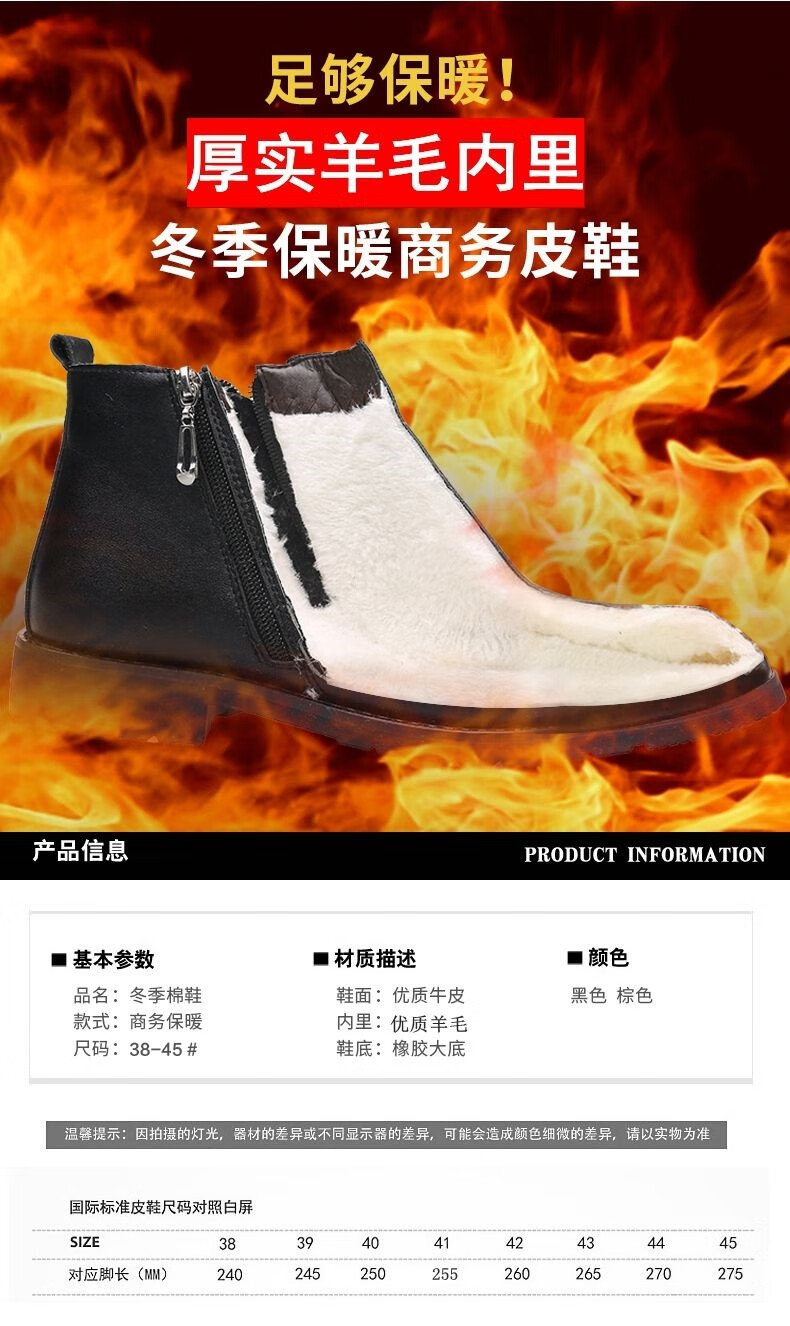 稻草人(MEXICAN)【真皮牛皮】冬季棉鞋男士真皮高帮马丁靴羊毛皮靴保暖防滑皮鞋男 9999黑色棉鞋真皮精品版 43