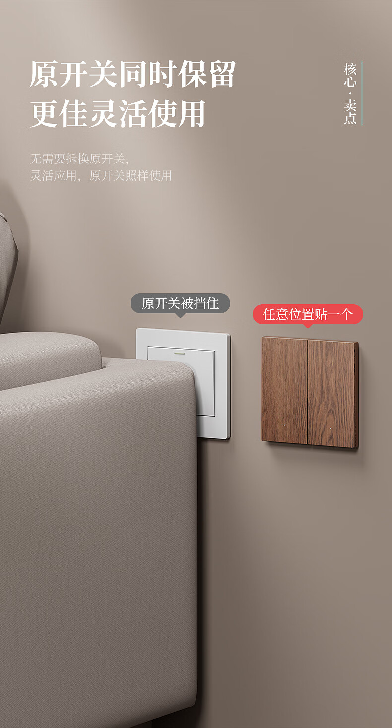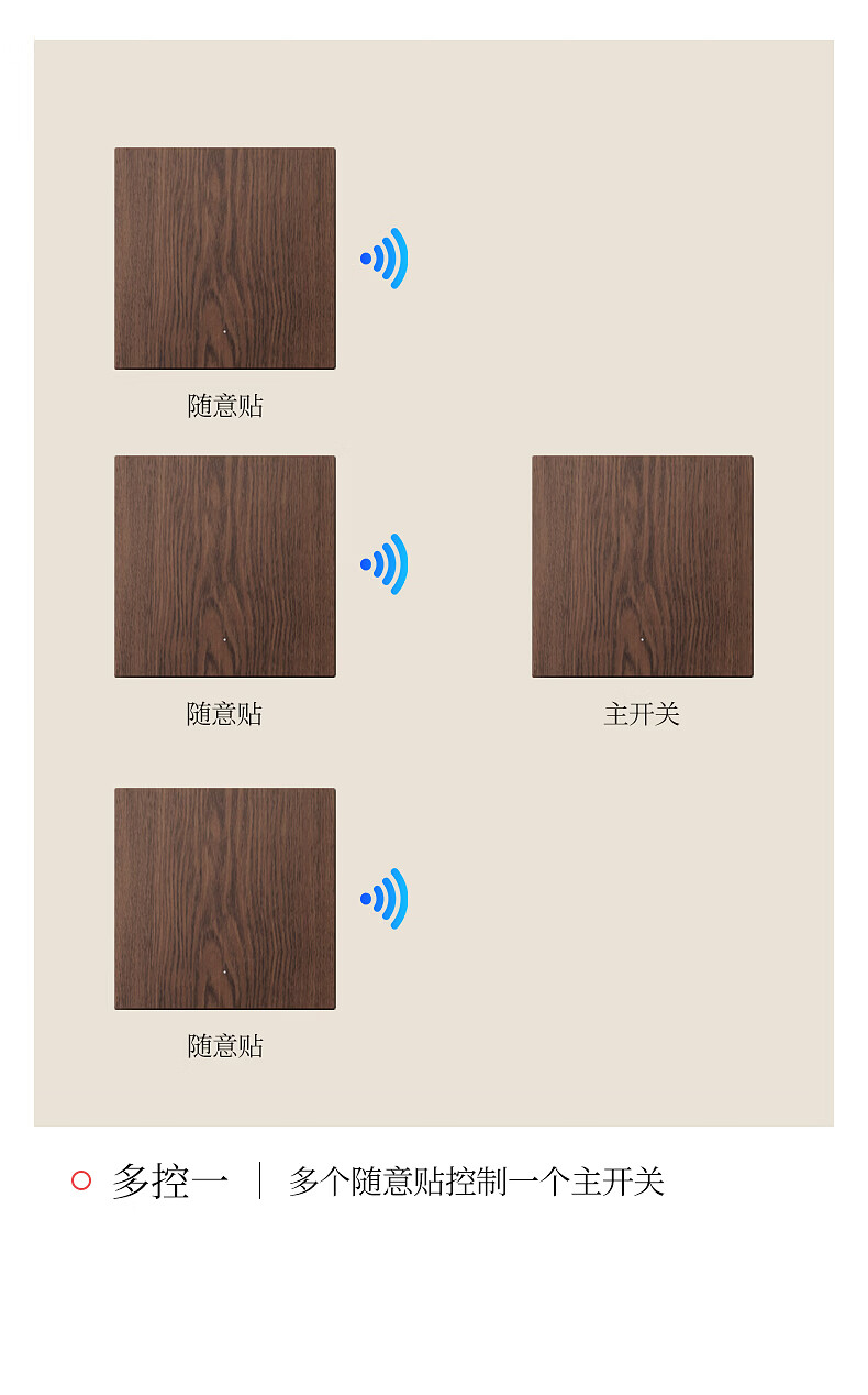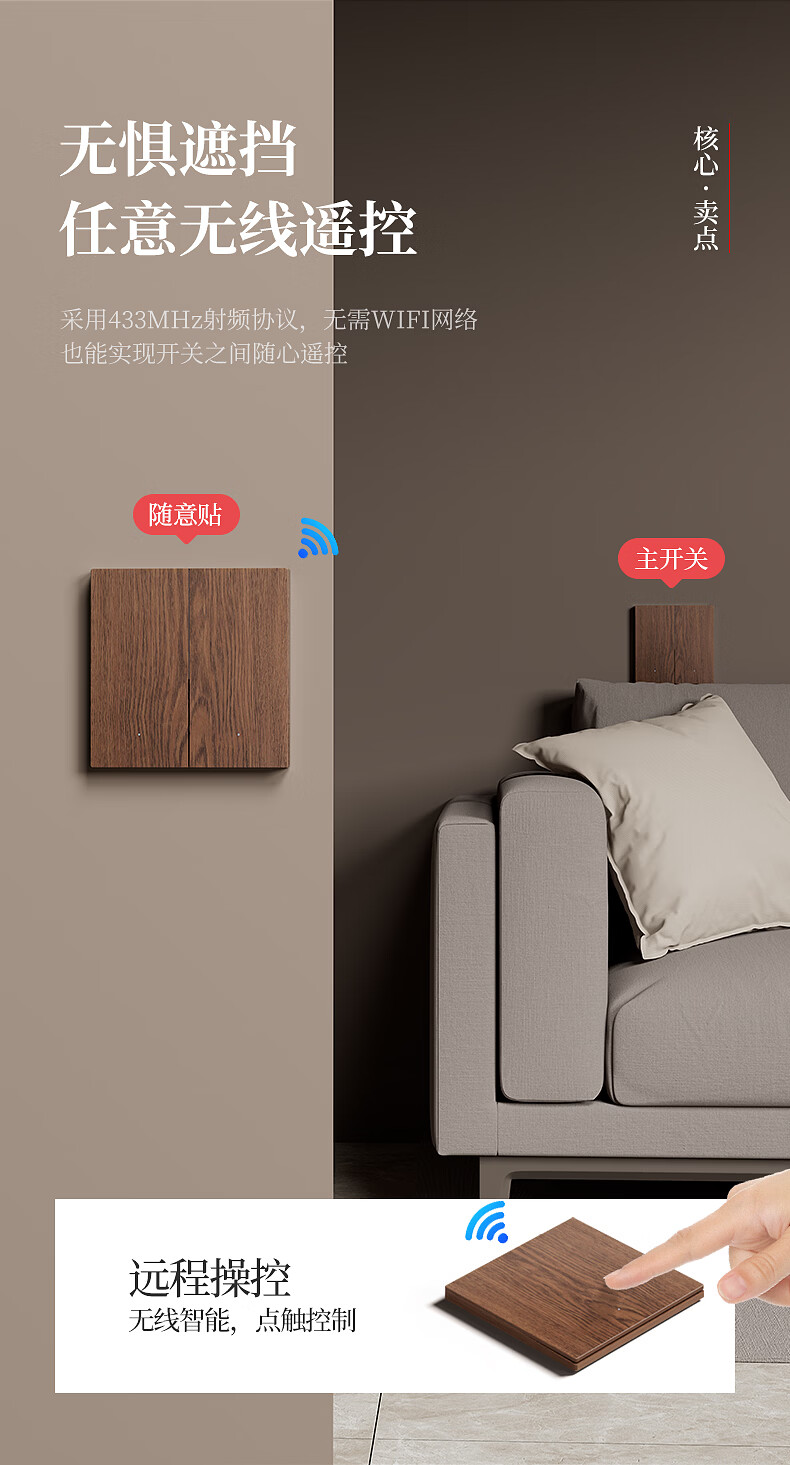 国际电工复古木纹无线遥控开关卧室客厅多控免布线远程控制灯具关灯神器 木纹一开主机*1+一开随意贴*1