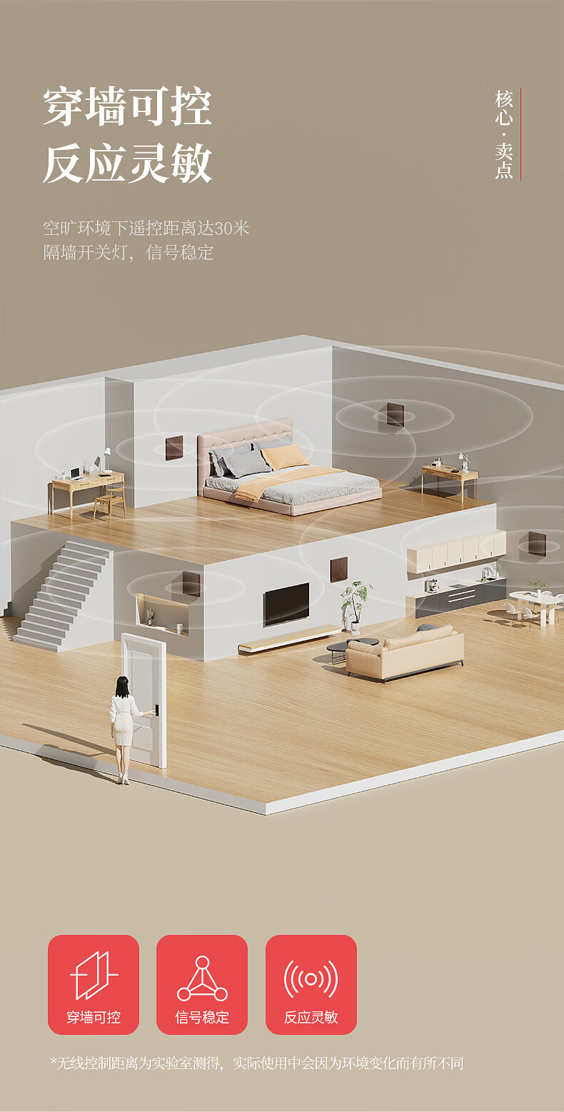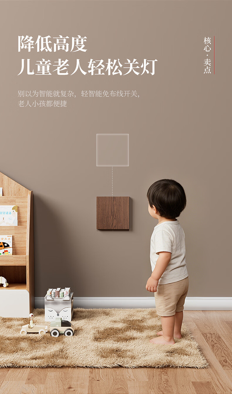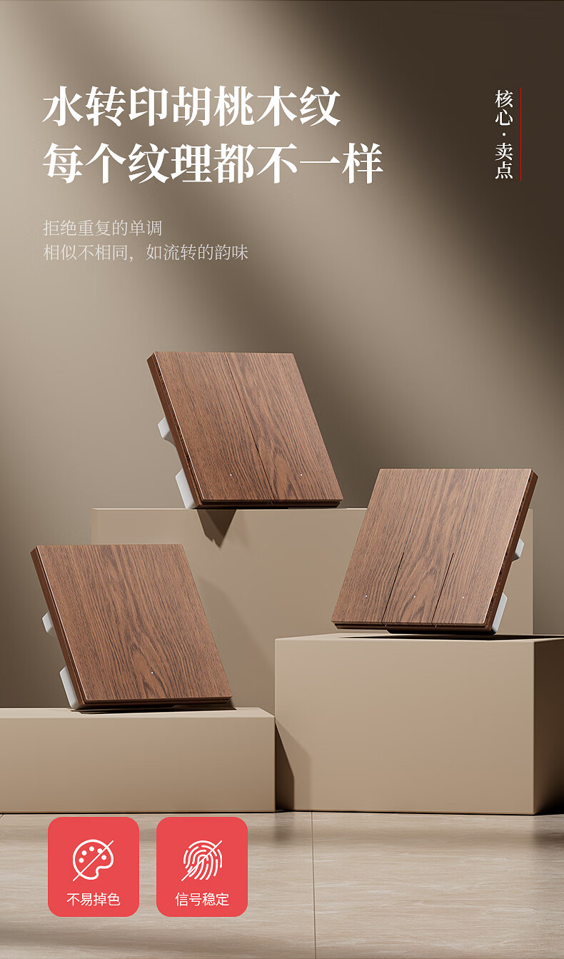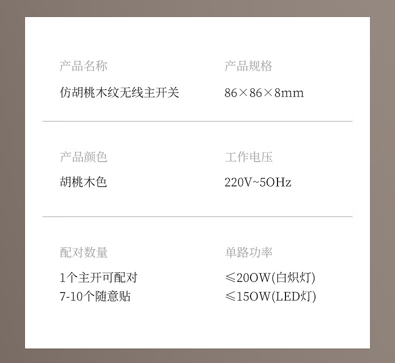 国际电工复古木纹无线遥控开关卧室客厅多控免布线远程控制灯具关灯神器 木纹一开主机*1+一开随意贴*1
