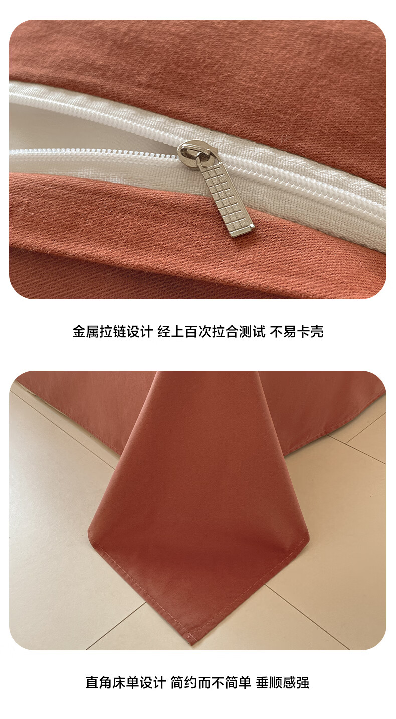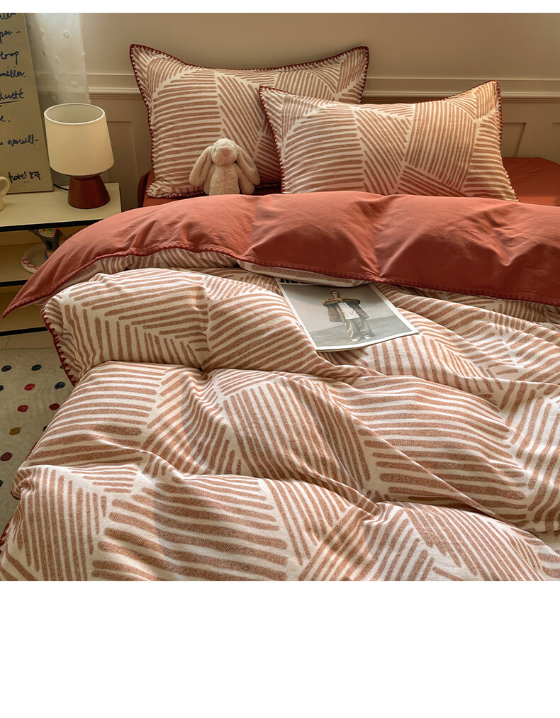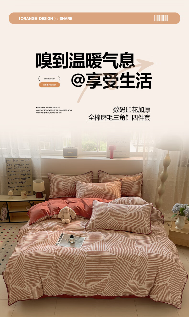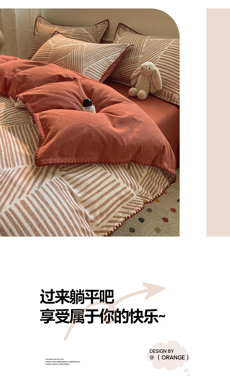 VJE加厚全棉磨毛床上四件套100%棉床单被套纯棉裸睡学生宿舍三件套 原野-桔 三件套1.2m 床单款 (被套150*200cm)