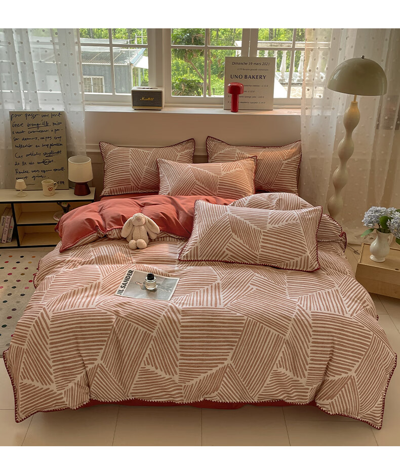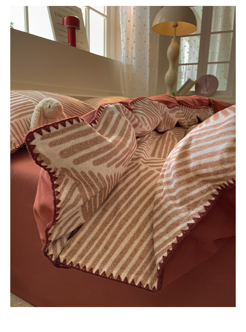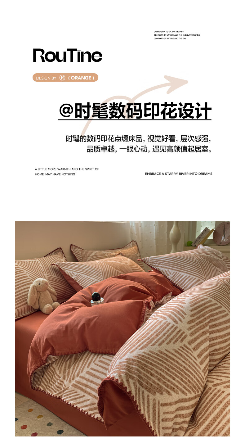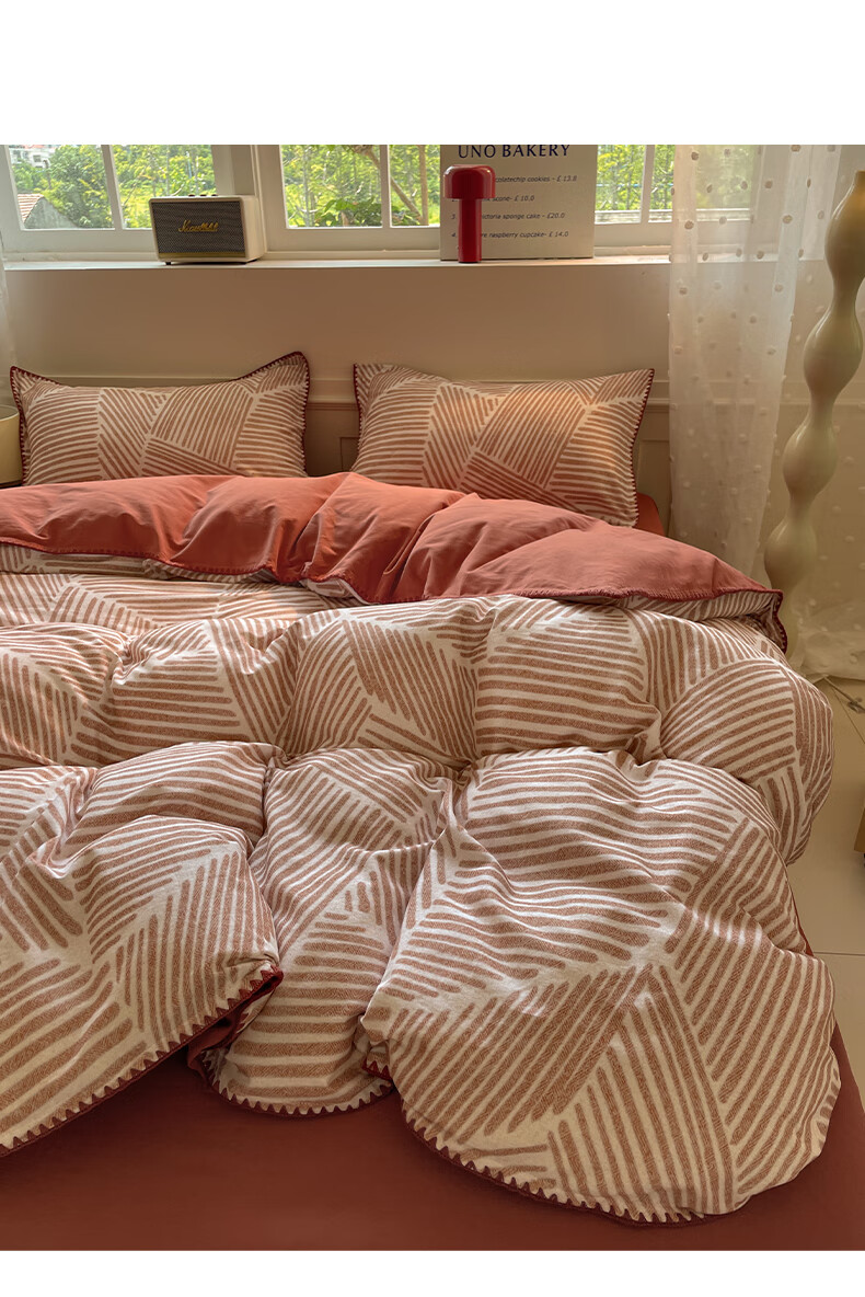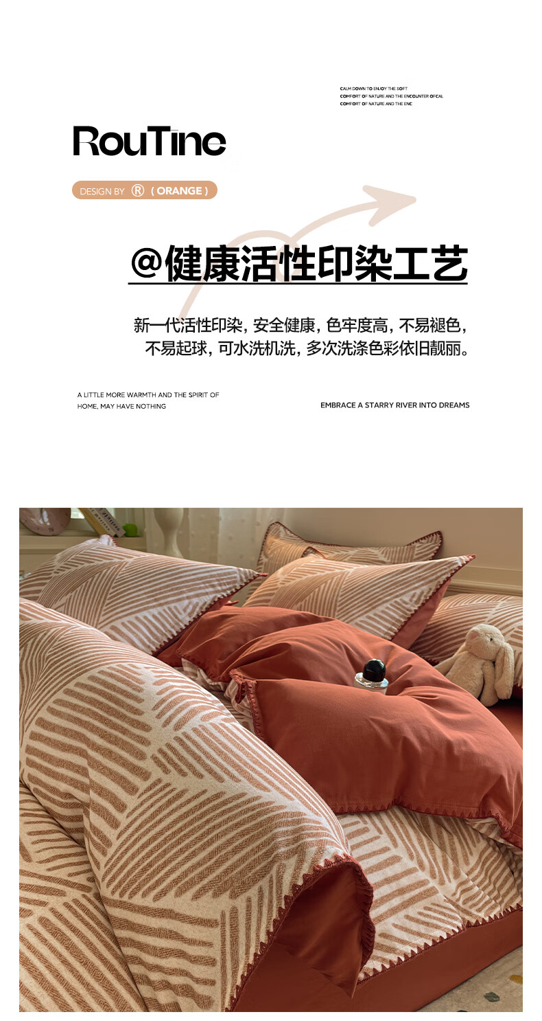 VJE加厚全棉磨毛床上四件套100%棉床单被套纯棉裸睡学生宿舍三件套 原野-桔 三件套1.2m 床单款 (被套150*200cm)