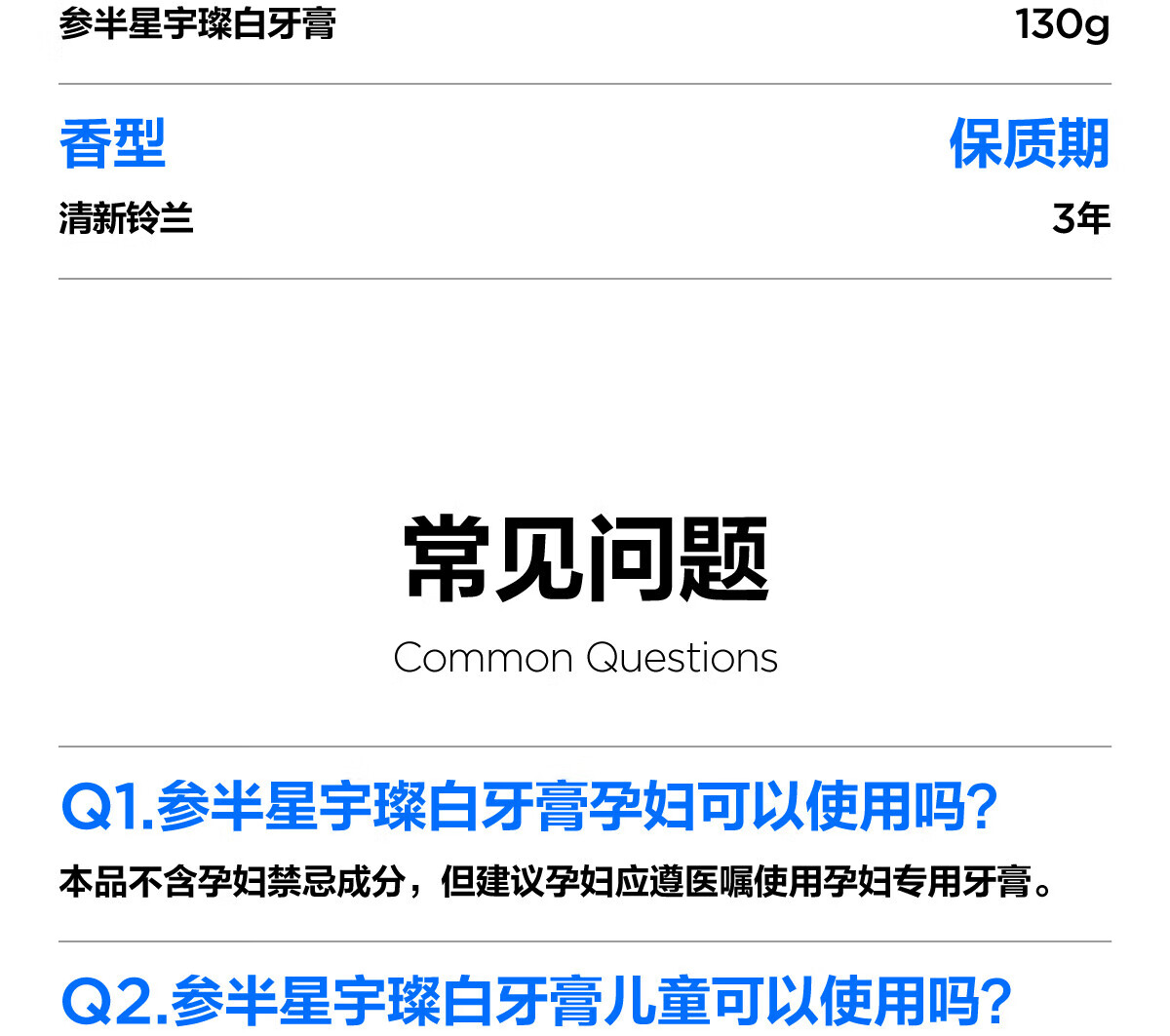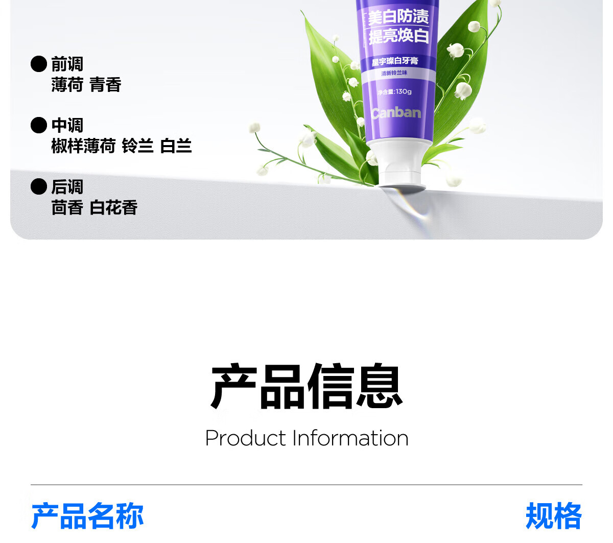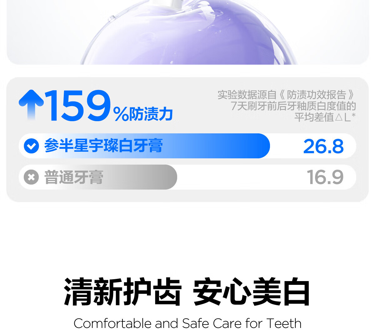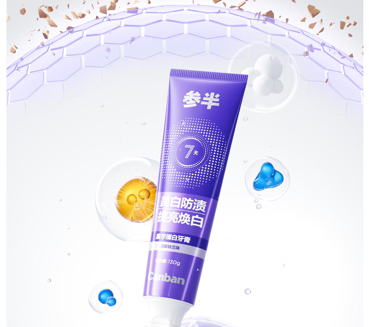 参半星宇璨白美白牙膏 牙齿亮白去烟渍去黄牙垢 清新铃兰味130g