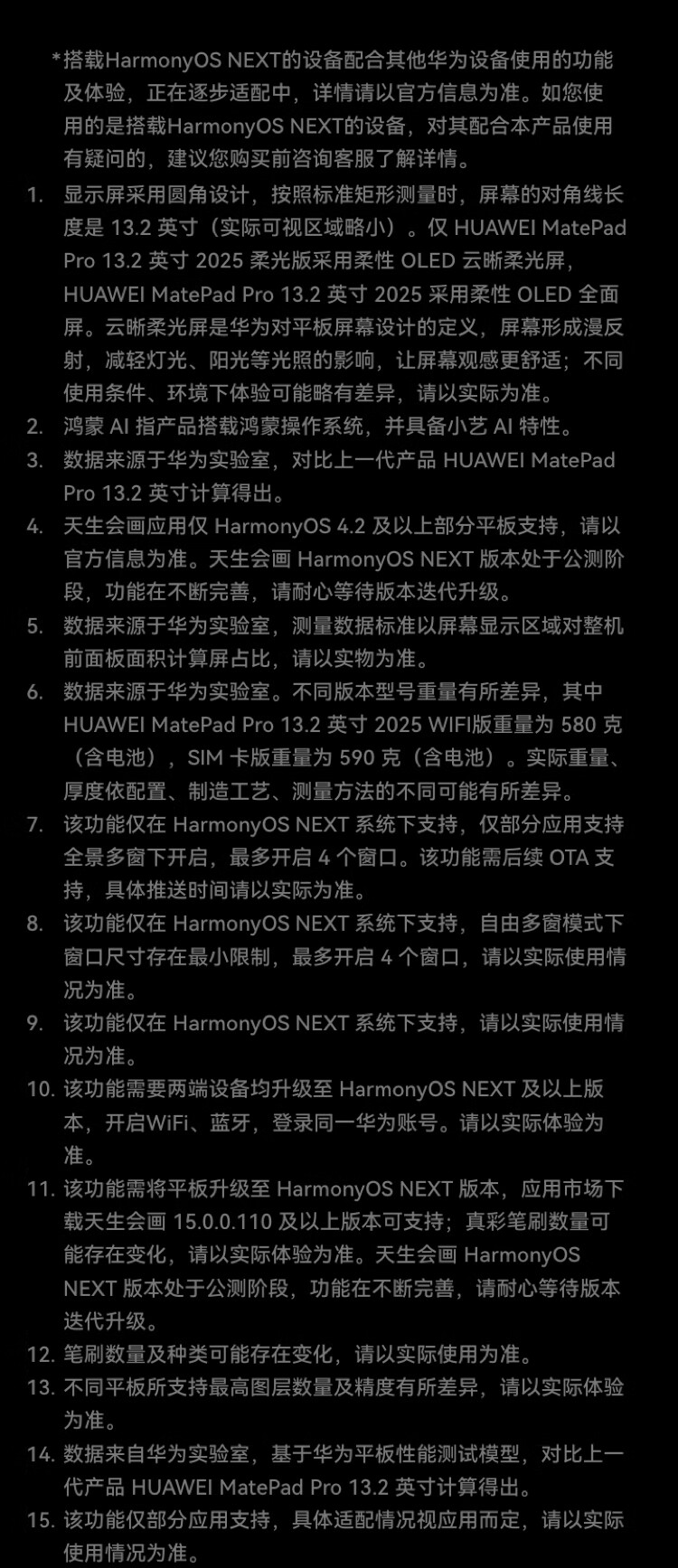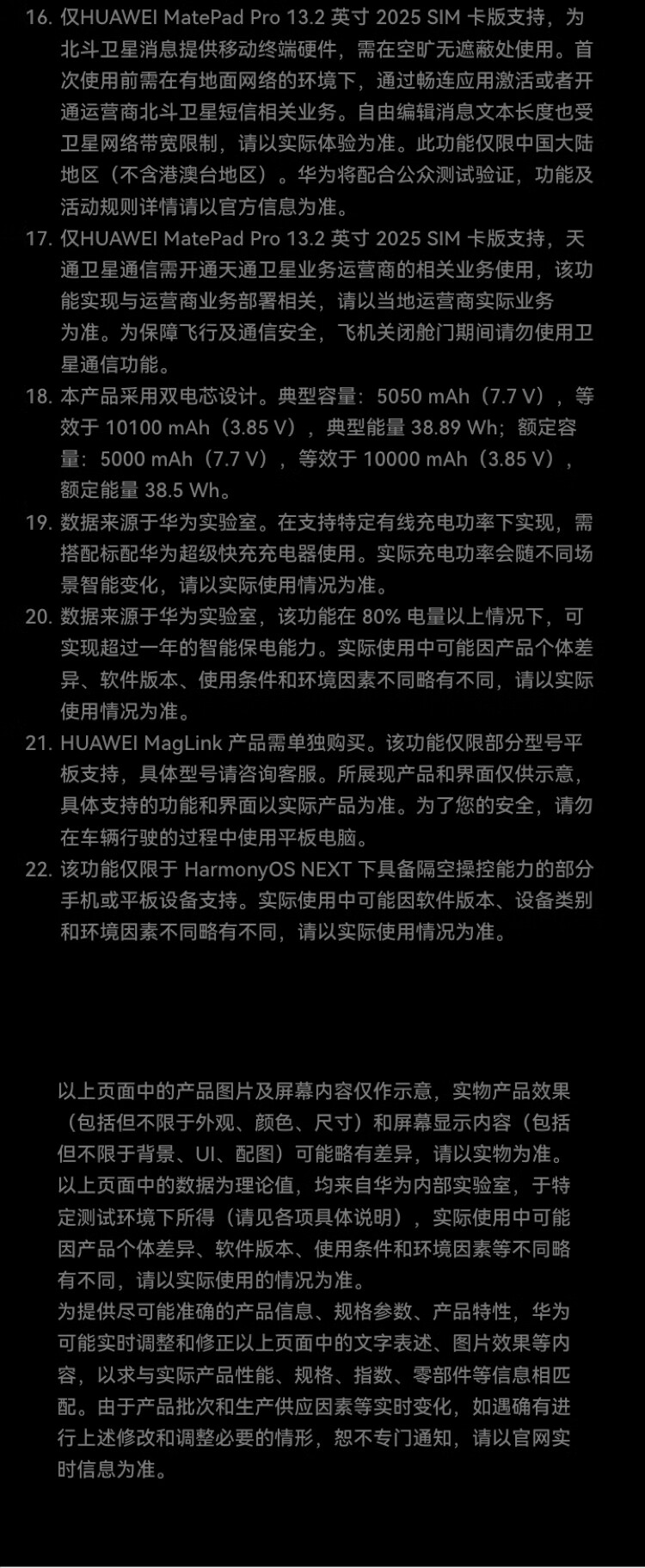 HUAWEI MatePad Pro 13.2英寸2025柔光版 鸿蒙操作系统 5 华为平板电脑2.8K OLED屏12+512GB WiFi飞天青