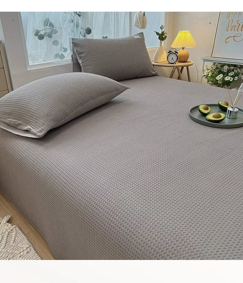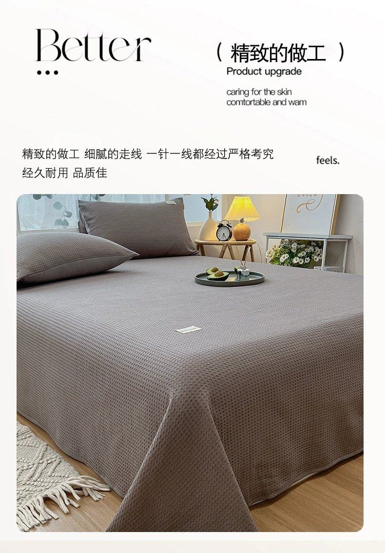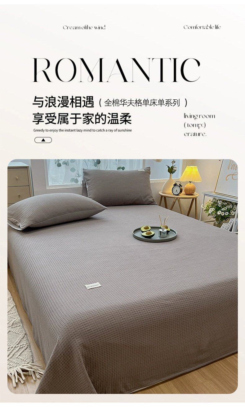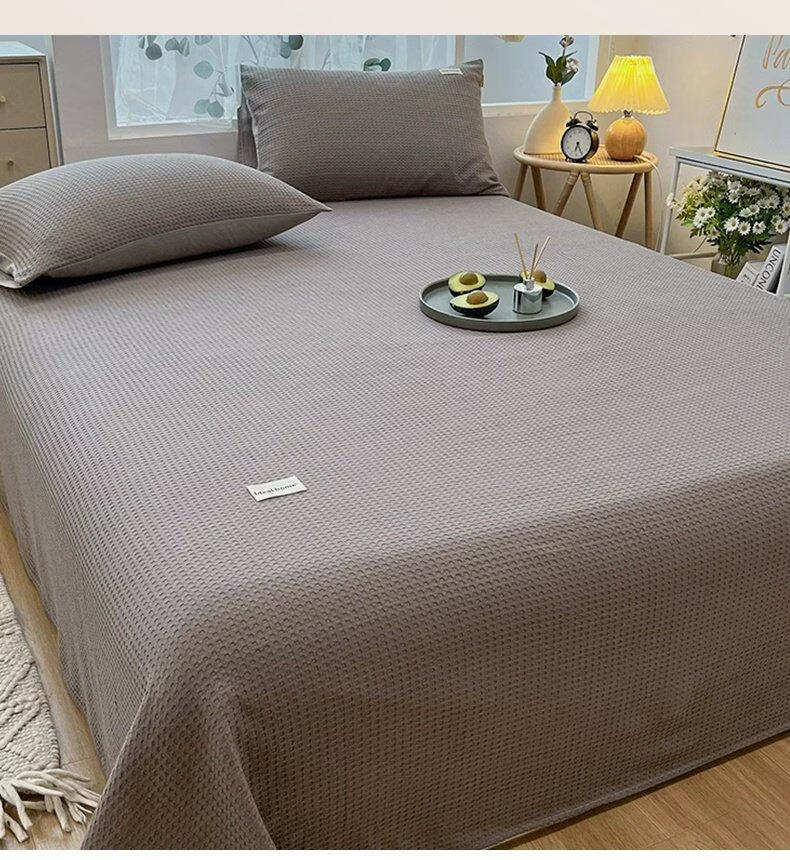 无印良品A类华夫格全棉床单单件100纯棉加厚宿舍单人被单家用裸睡双人床盖 珍珠灰 【贴肤舒适 亲肤裸睡】 200cm*235cm 单床单【适1.5m床】