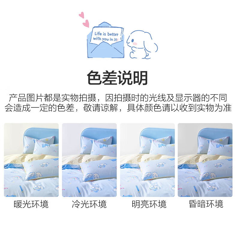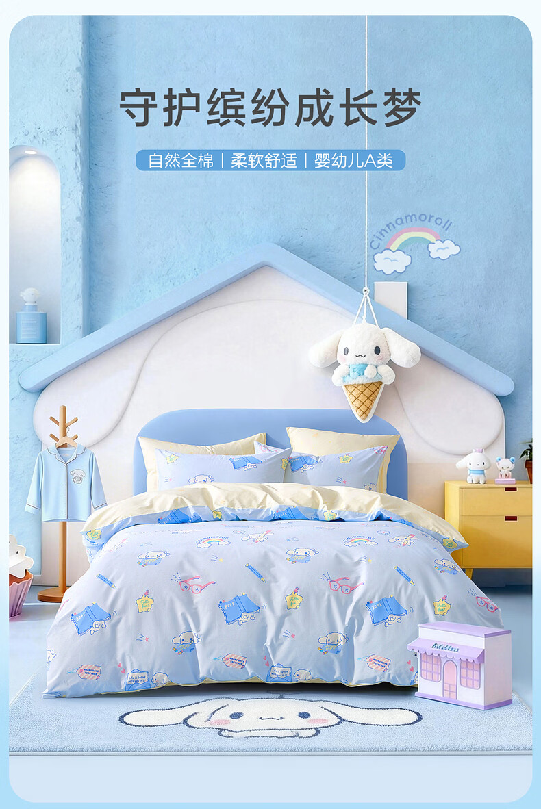 水星家纺四件套床上用品纯棉100%全棉婴幼儿A类儿童学生宿舍26年套件 夏日大耳狗 床单款 (被套150*210cm)