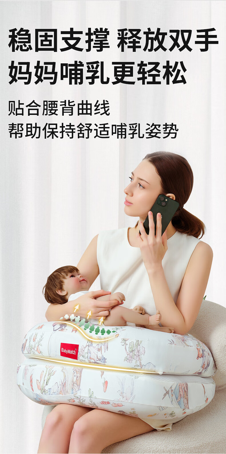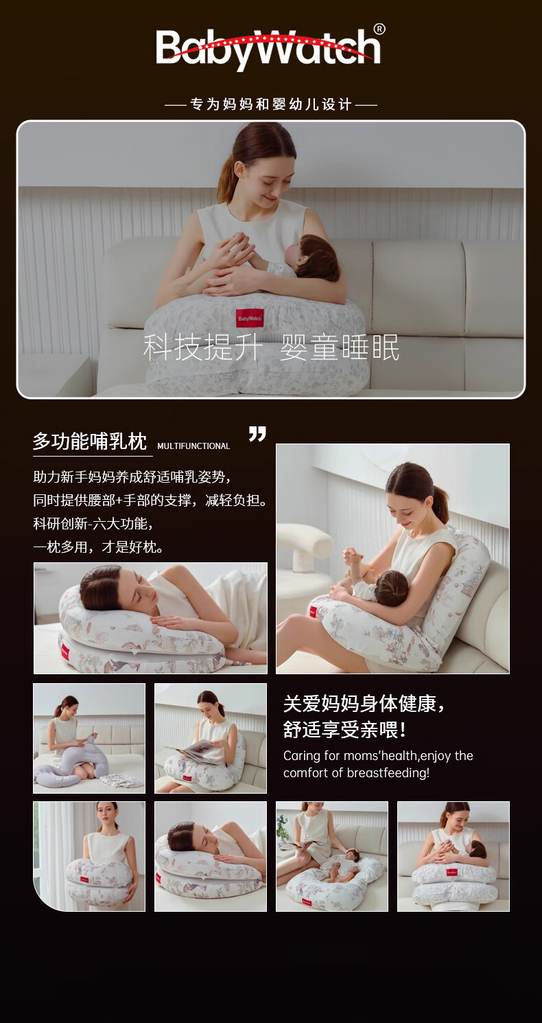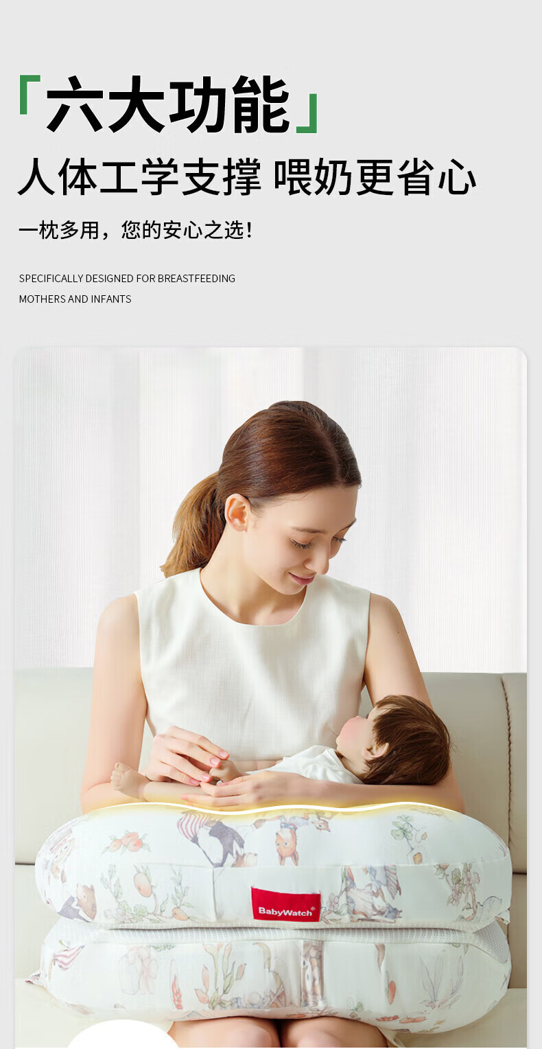 BabyWatch六合一多功能婴儿哺乳枕斜坡防吐奶溢奶新生儿喂奶枕头-秘密花园