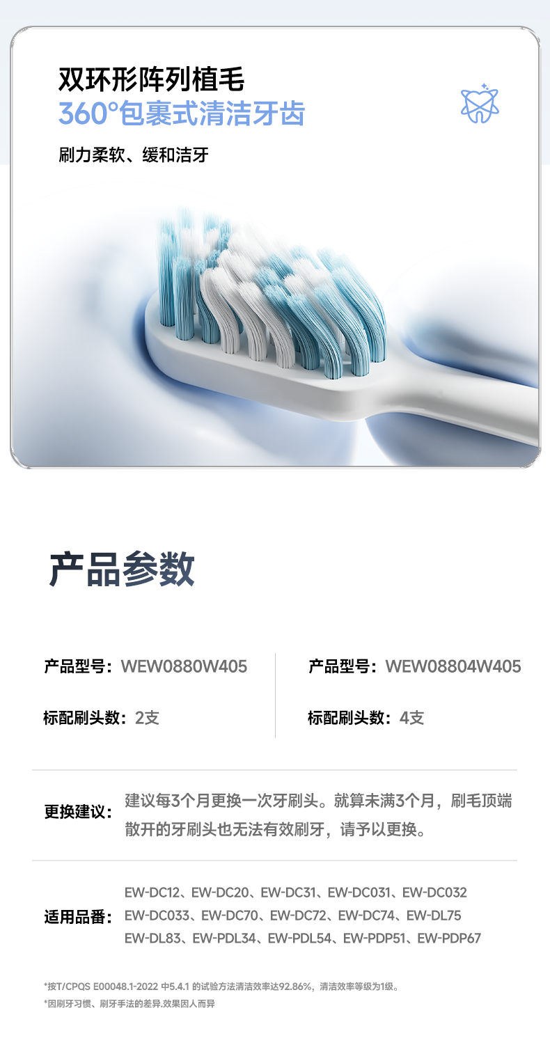松下(Panasonic)抗菌电动牙刷头WEW0880 2只装适用于DC75/DC50/DC40/PDP67/PDP51等大部分型号(详询客服)
