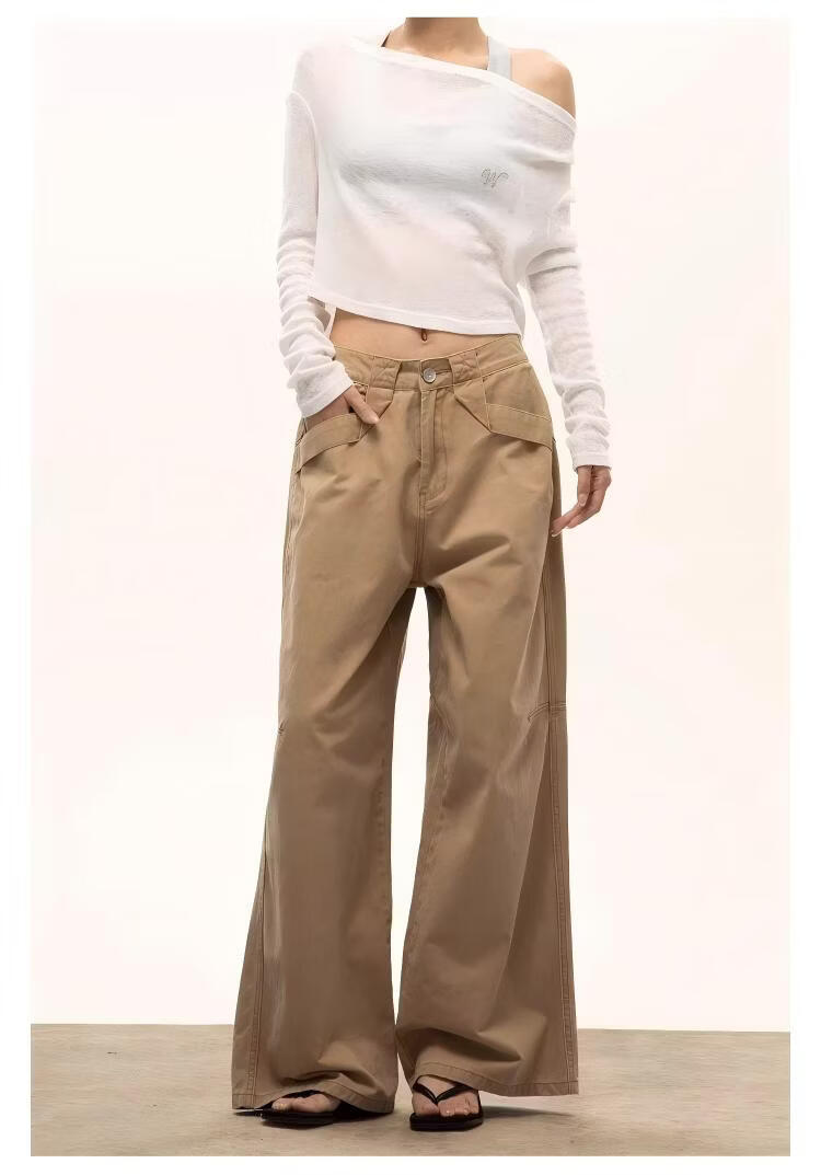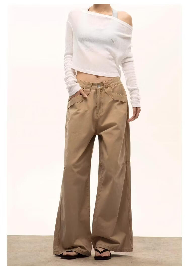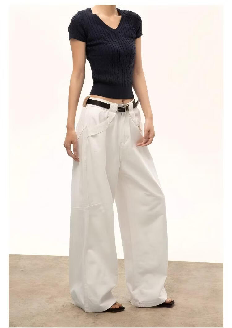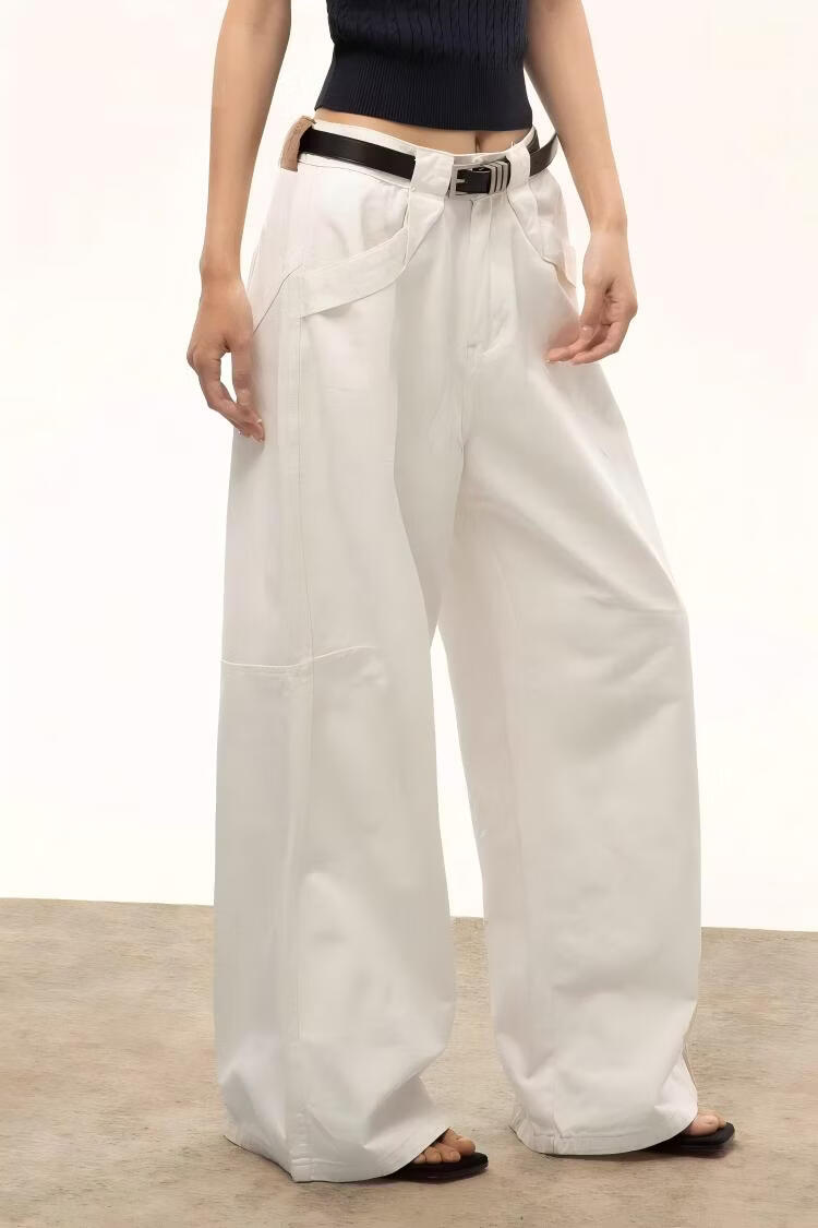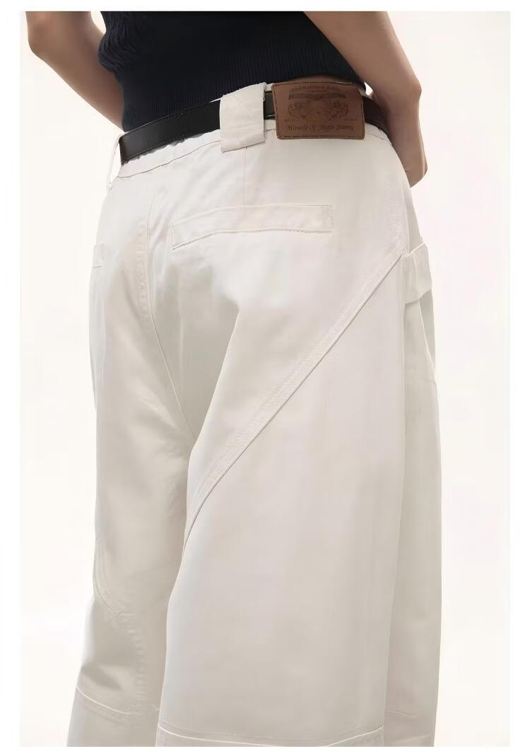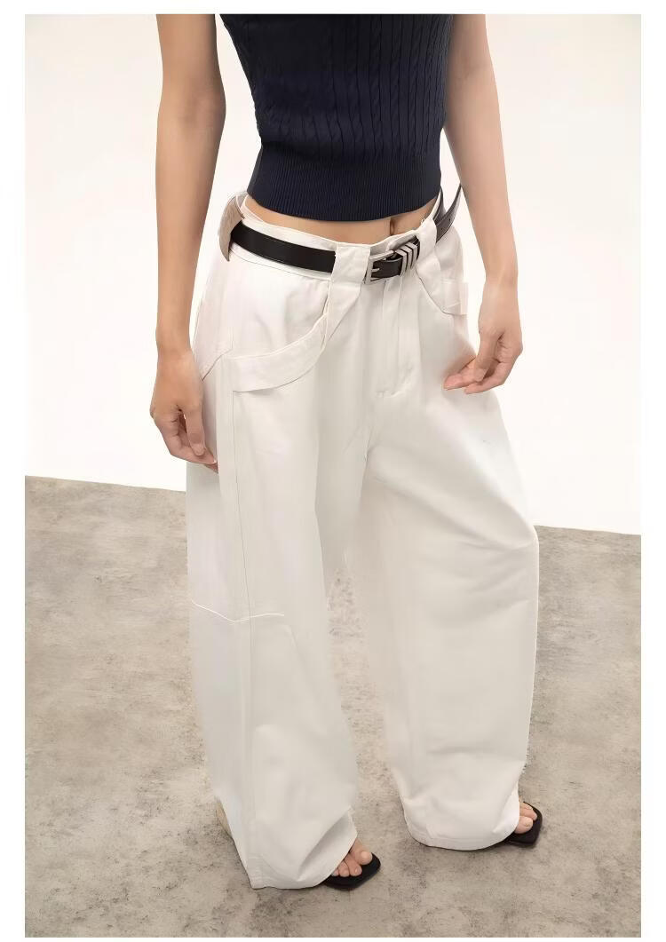 ICH MODE复古白色阔腿裤女2026春季款宽松休闲工装直筒裤 白色 M